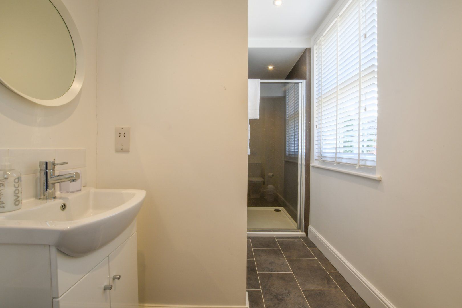 Over three floors. Three bedrooms: 1 x king-size with en-suite with bath, shower over, basin, heated towel rail and WC, 1 x twin with en-suite with walk-in shower, basin, heated towel rail and WC, 1 x second-floor king-size with en-suite with walk-in shower, basin, heated towel rail and WC. Open-plan living space with kitchen, dining area and sitting area. Cloakroom with basin and WC