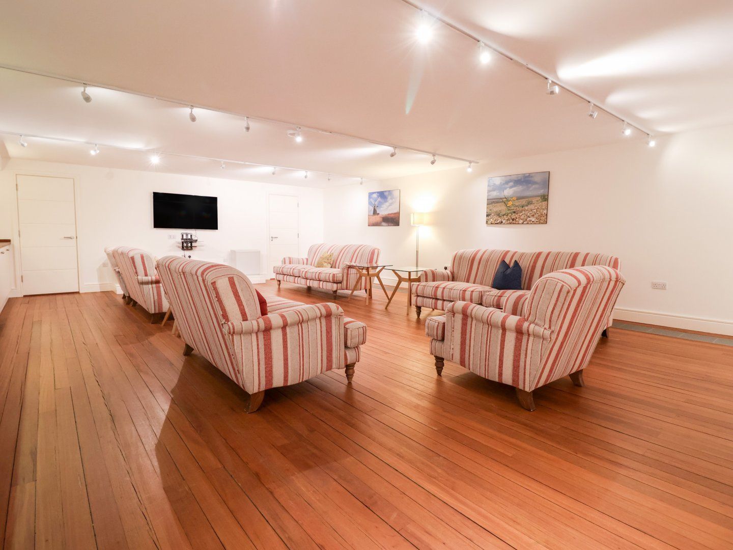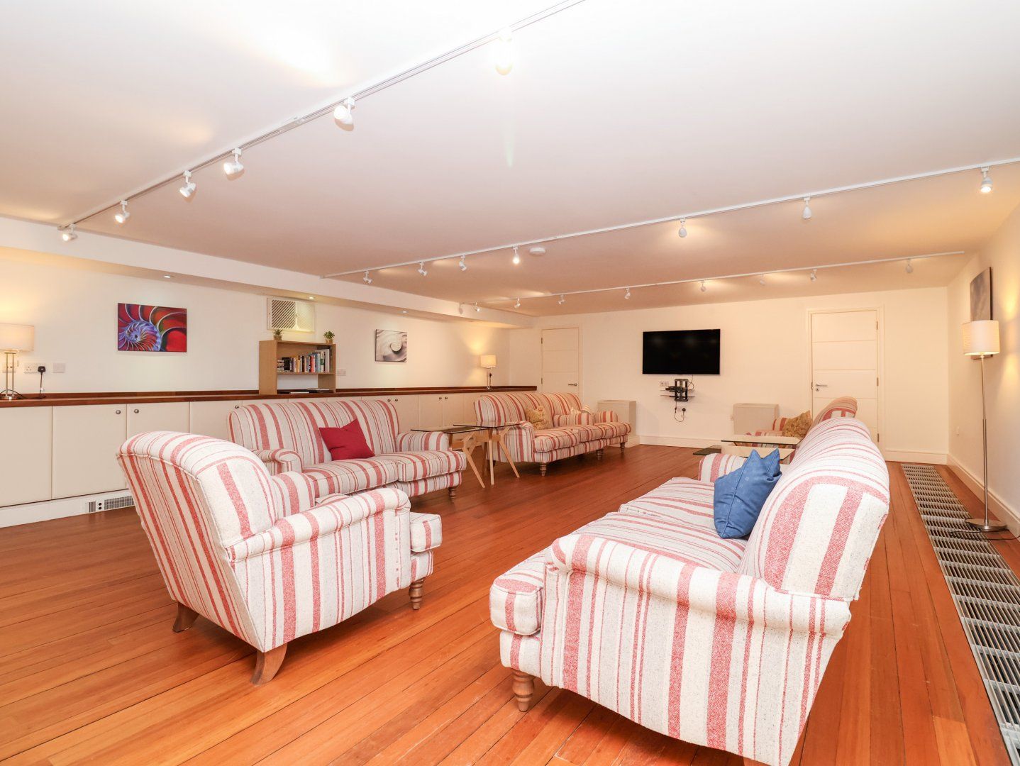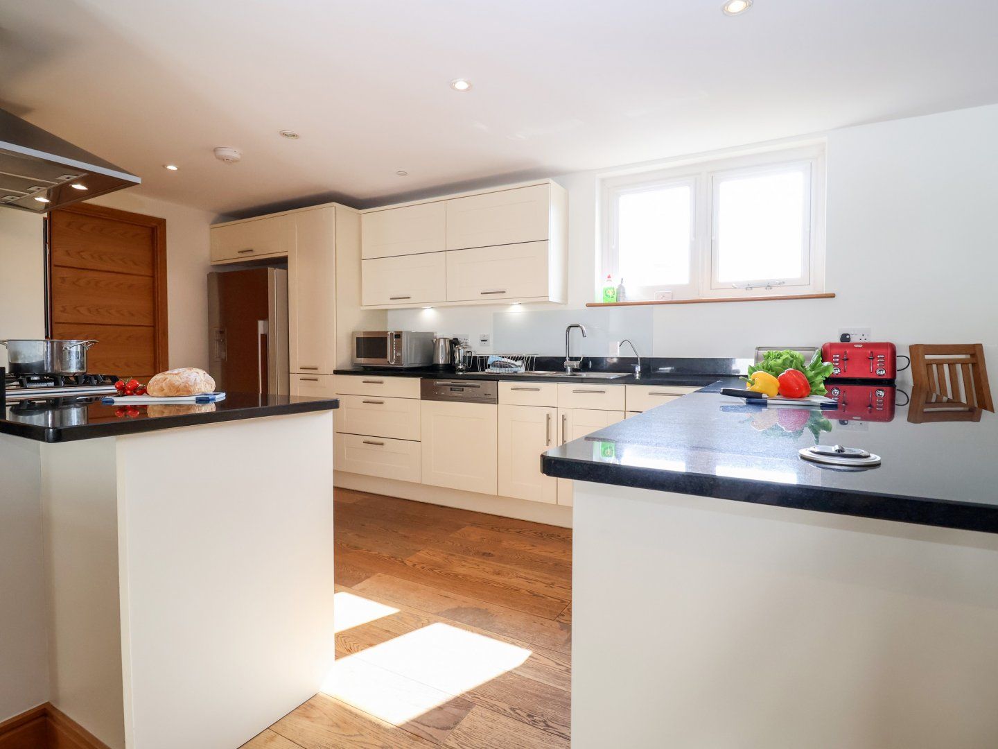 Accomodation Details Four bedrooms: 2 x king size bedrooms with en-suite shower rooms with shower, wash basin, towel rail and WC. 1 x twin with en-suite bathroom with bath with overhead shower, wash basin, heated towel rail and WC. 1 x twin with en-suite shower room with shower, wash basin, heated towel rail and WC. first floor open-plan living space with kitchen, dining area and sitting area. Utility. Cloakroom with basin and WC. Second floor sitting room. Sitting Room with games area. Utility Room. Balcony