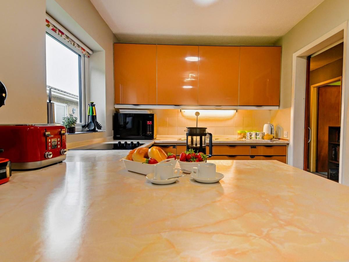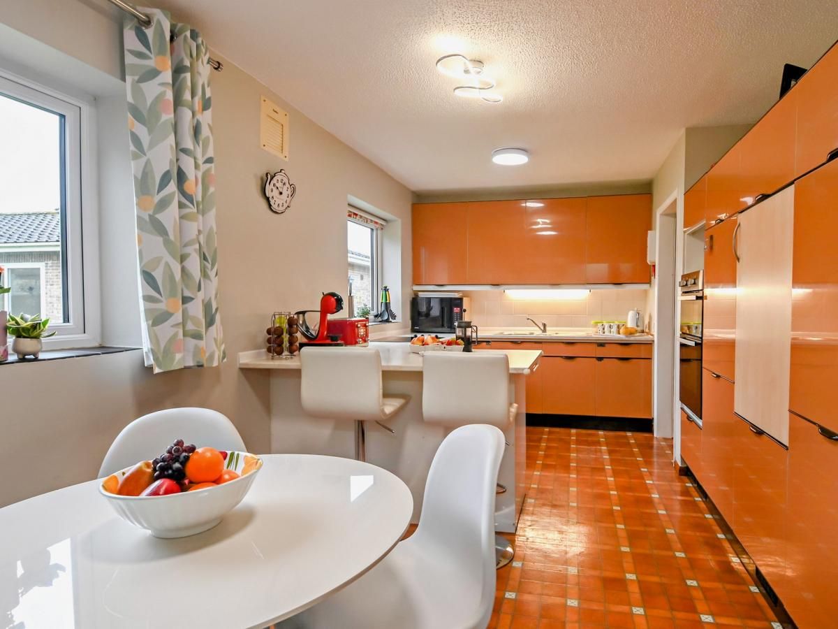 This welcoming home has a bright and colourful interior, with eclectic design and décor throughout. The lounge/diner has large windows which flood the room with light, and plenty of comfortable seating provides space for all guests to kick back and relax together.
