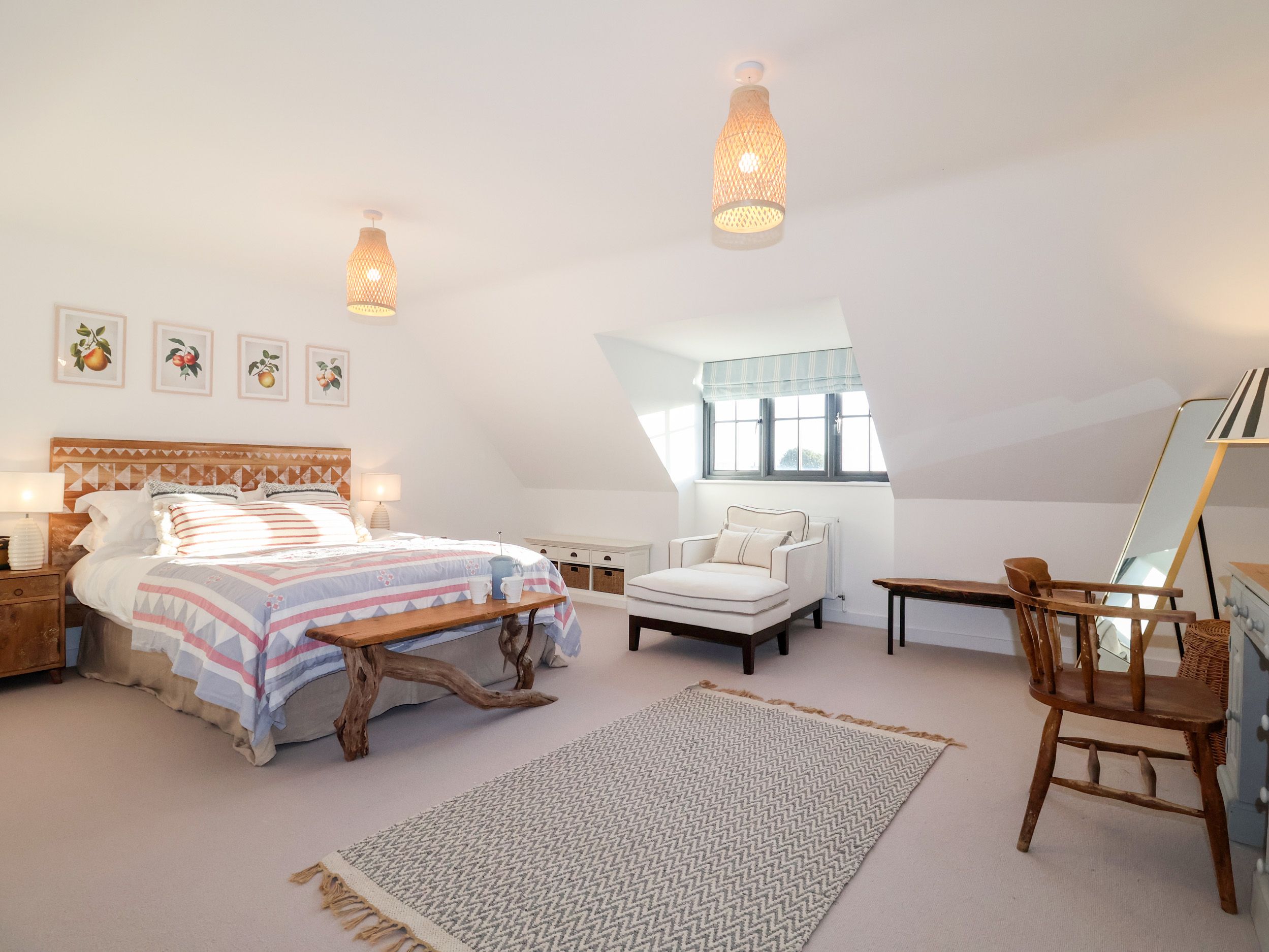 Accomodation Details Three bedrooms: 1 x super-king-size, 1 double with en-suite with walk-in shower, basin and WC, 1 x twin. Bathroom with bath with overhead shower. Kitchen, sitting/dining room.