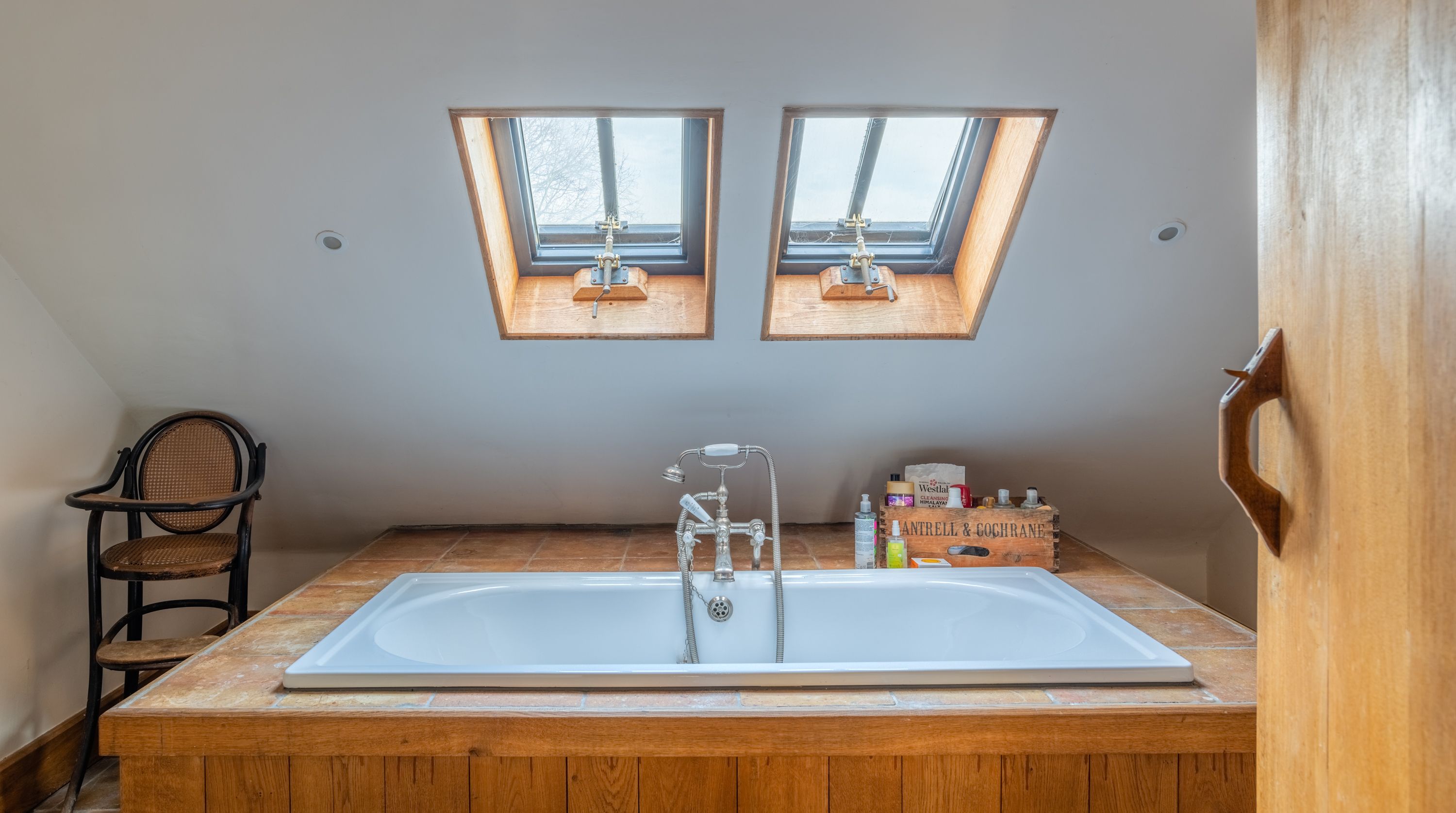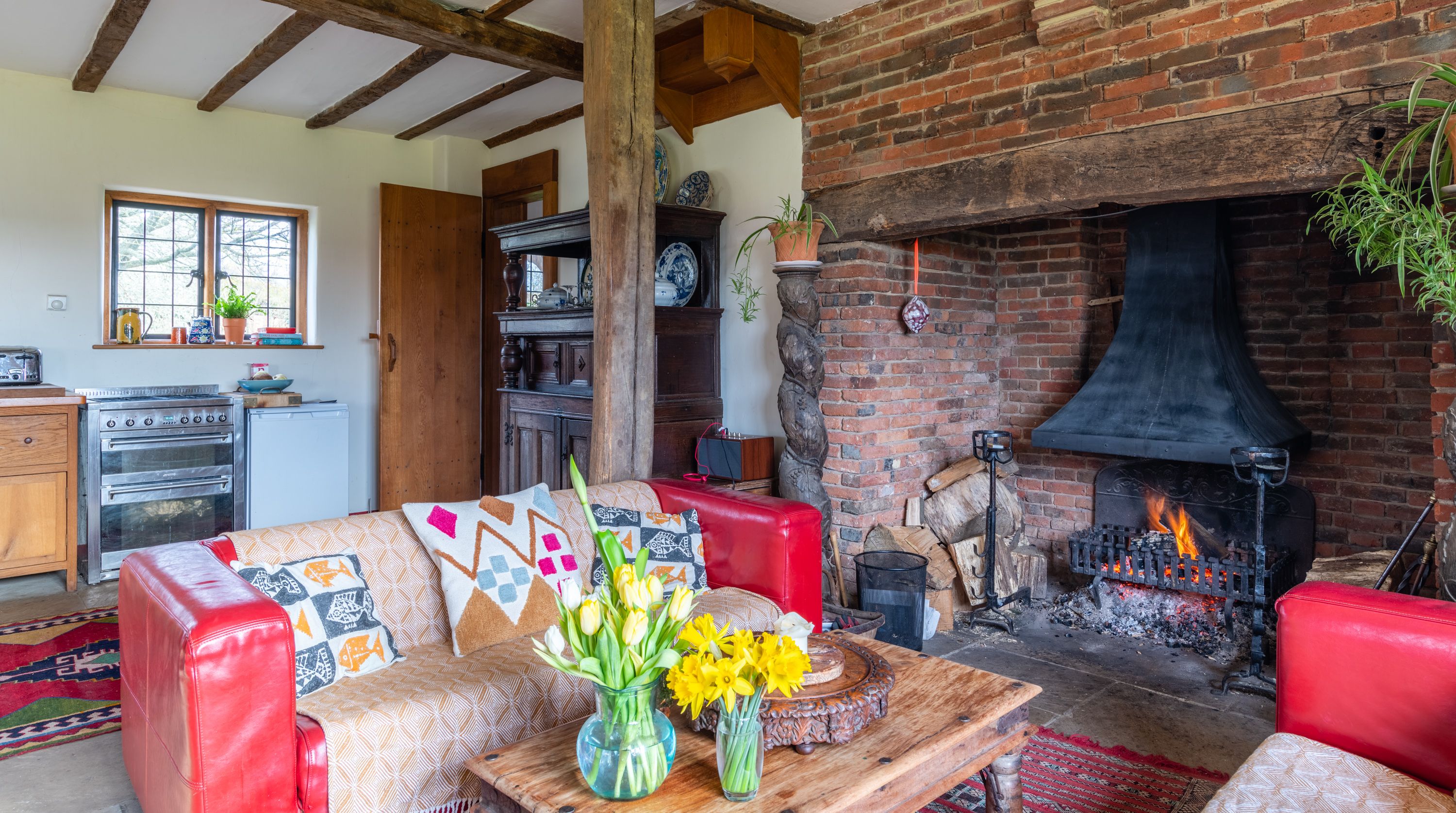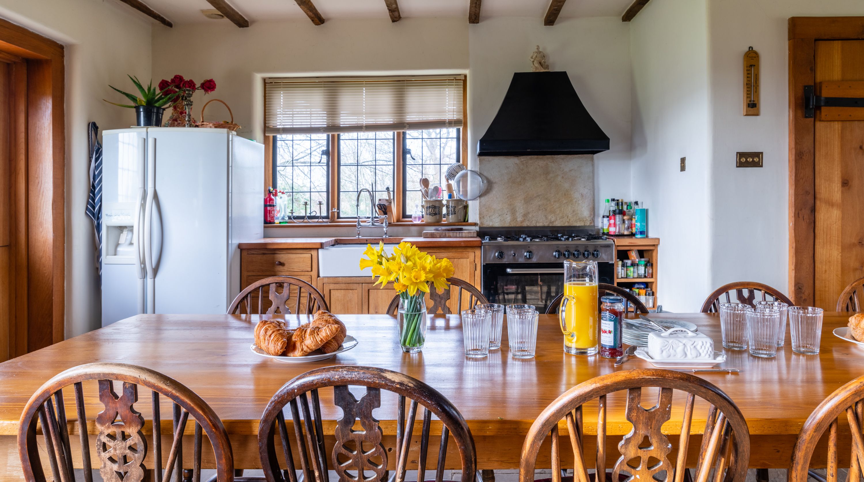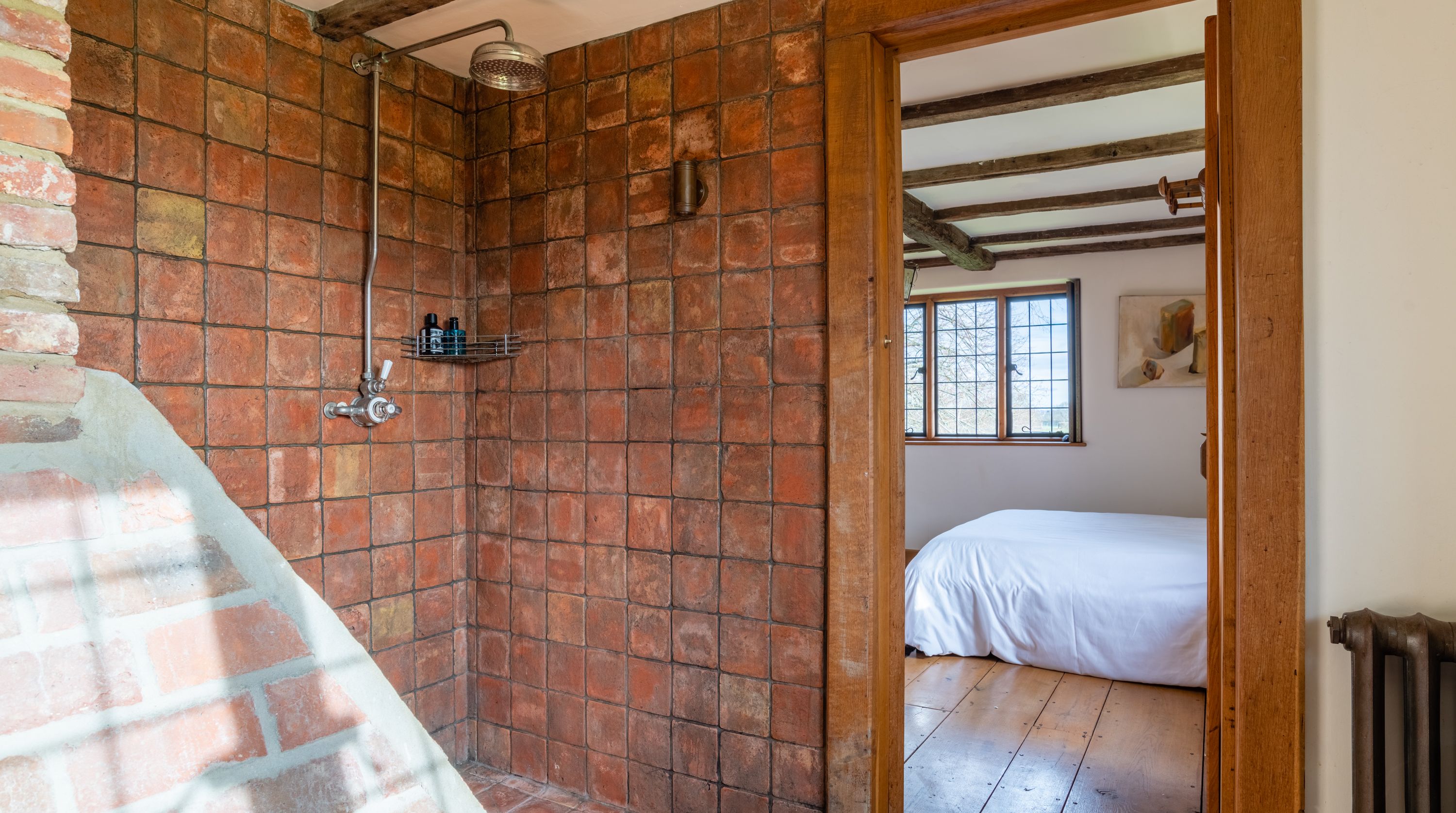 The interior feels particularly rustic too, from the wooden ceiling beams and the plethora of exposed brickwork to the inglenook fireplace. That being said, there are all the modern comforts you could want here. Above the fireplace, a projection screen comes down for movie nights, while there are also tubs in all the bathrooms so you can start the day off at a super-slow pace.