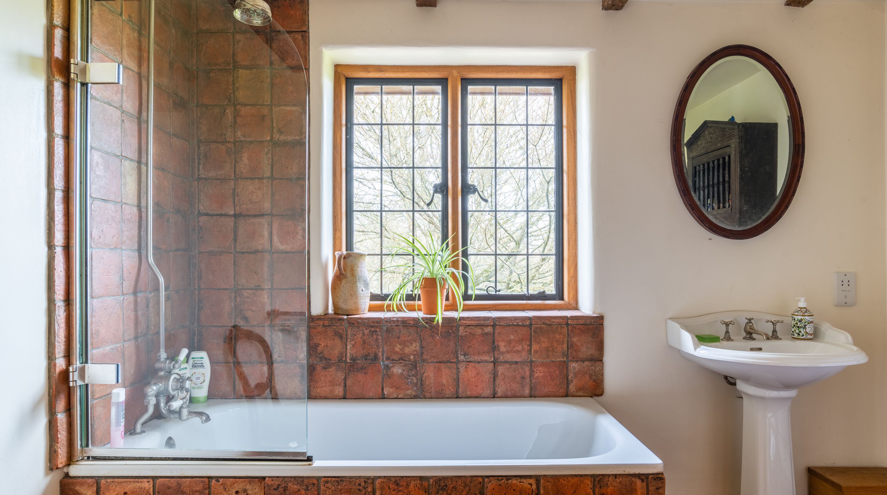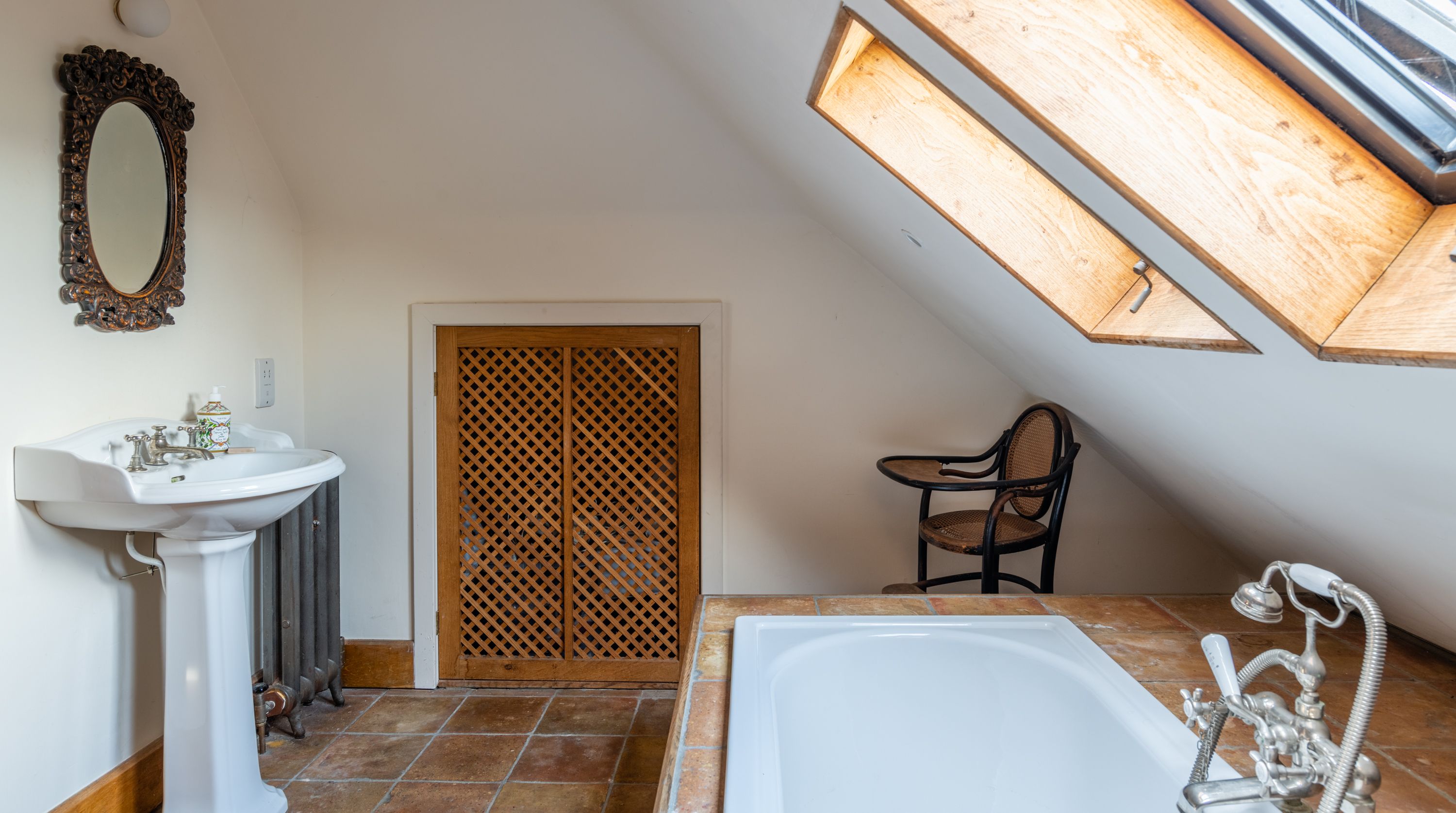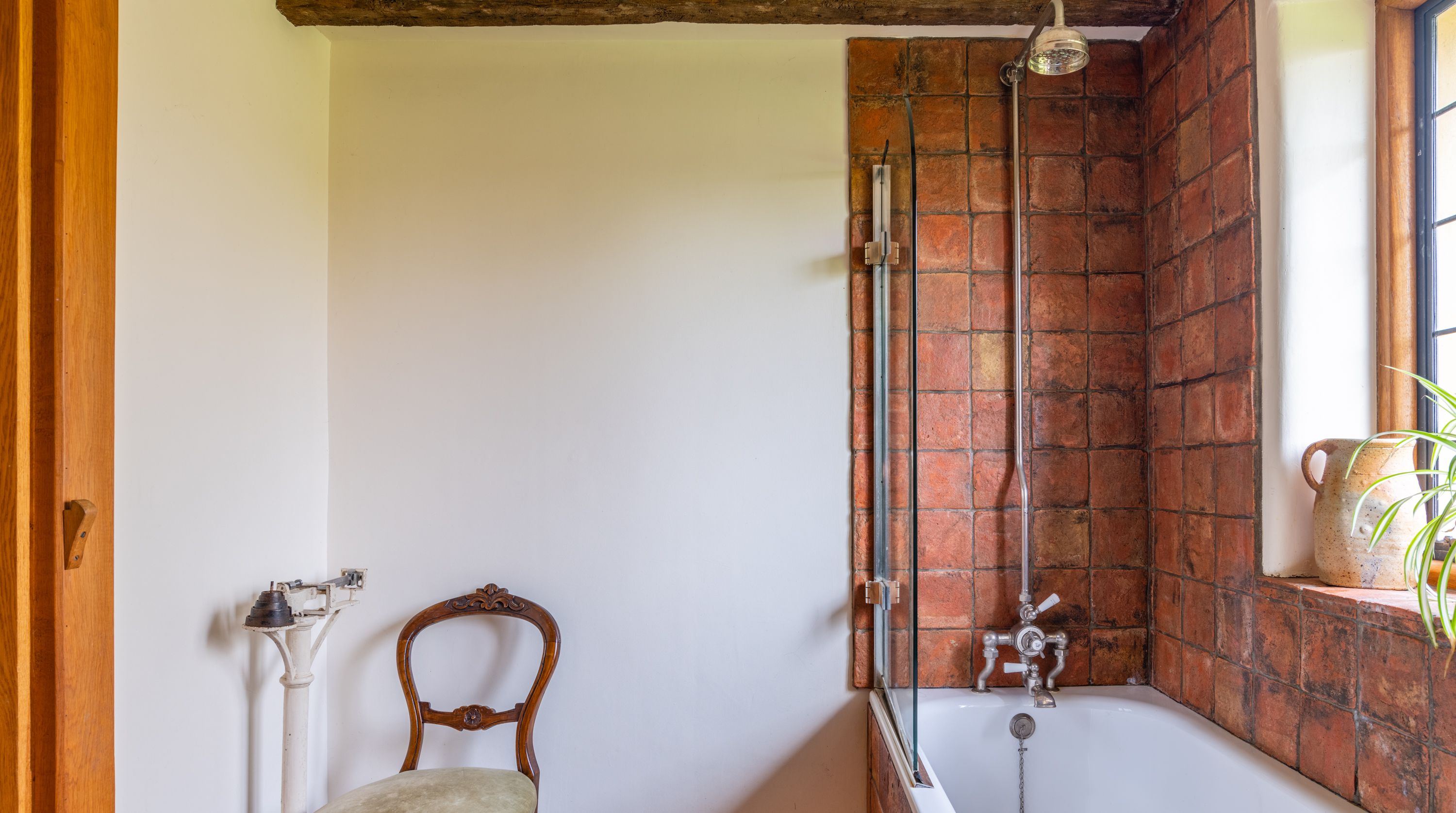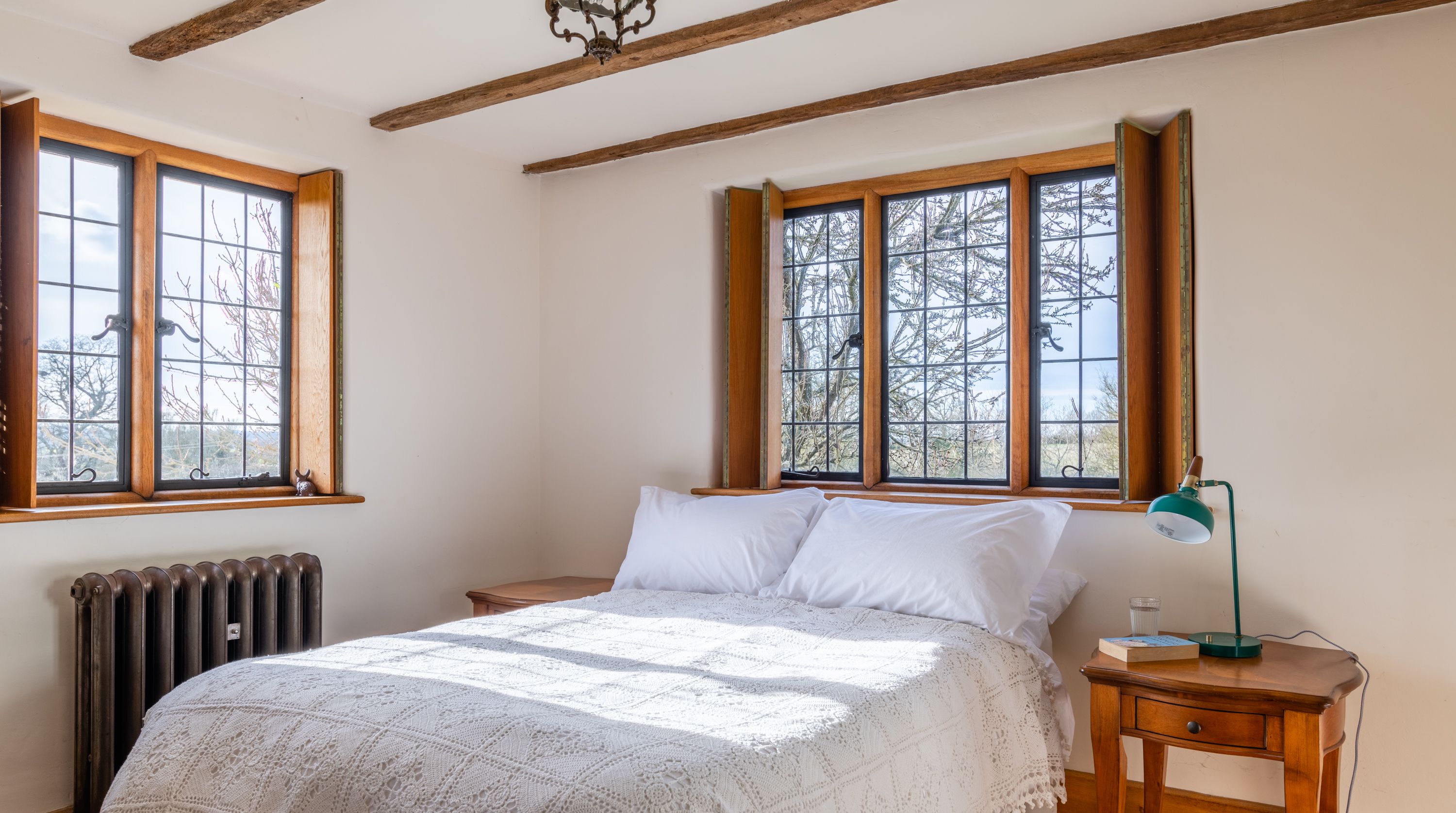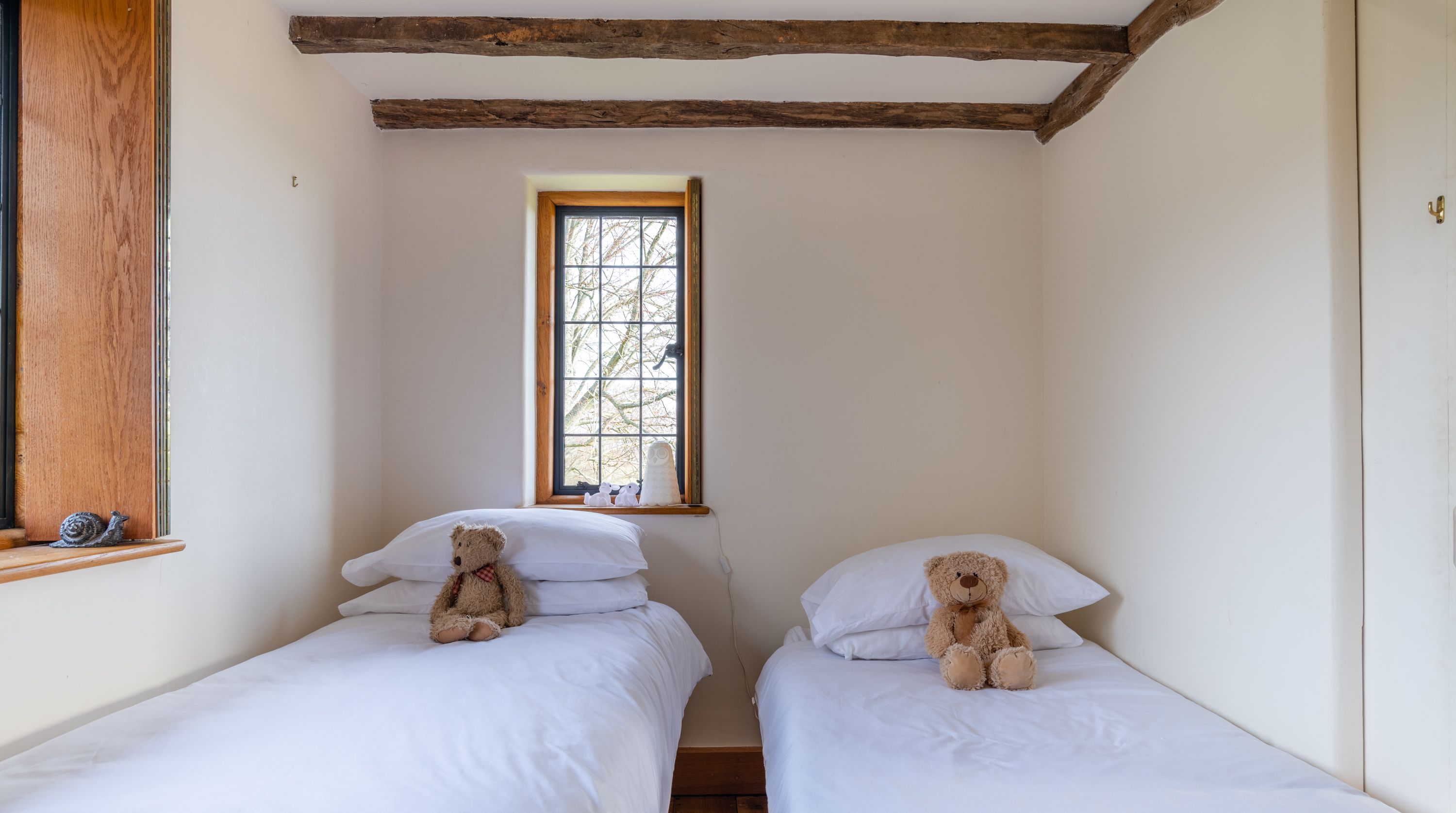 The interior feels particularly rustic too, from the wooden ceiling beams and the plethora of exposed brickwork to the inglenook fireplace. That being said, there are all the modern comforts you could want here. Above the fireplace, a projection screen comes down for movie nights, while there are also tubs in all the bathrooms so you can start the day off at a super-slow pace.