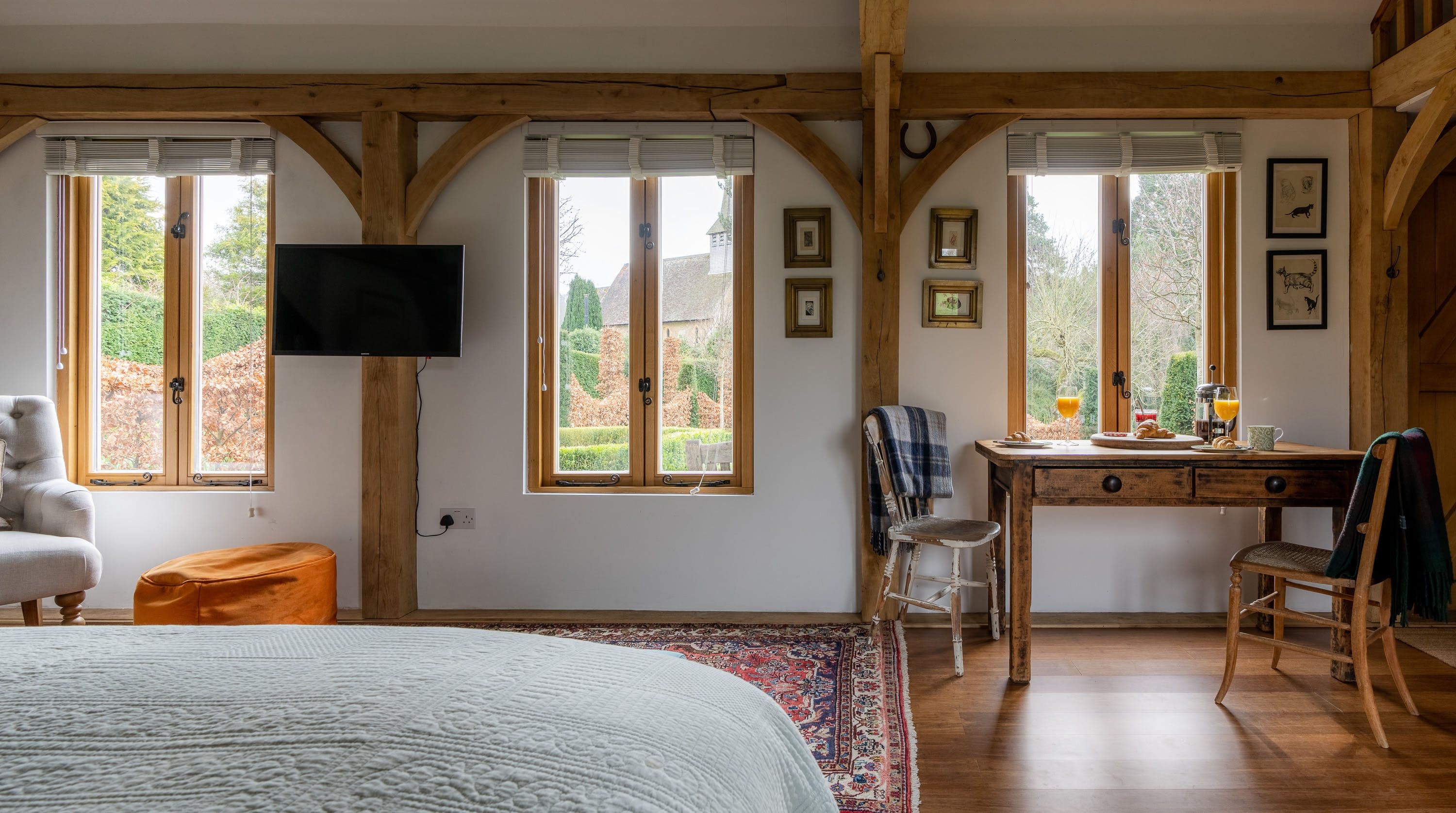 Afternoons call for sunny spells on your home’s private outdoor loungers or ramping up the action with a game of croquet on the shared lawn. Lunchtime invites picnics in the grounds’ thirteen-acre meadow, while dinnertime is the perfect excuse to indulge in a hearty feast at The White Horse – one of the region’s best gastro-pubs – just a two-minute stroll away.