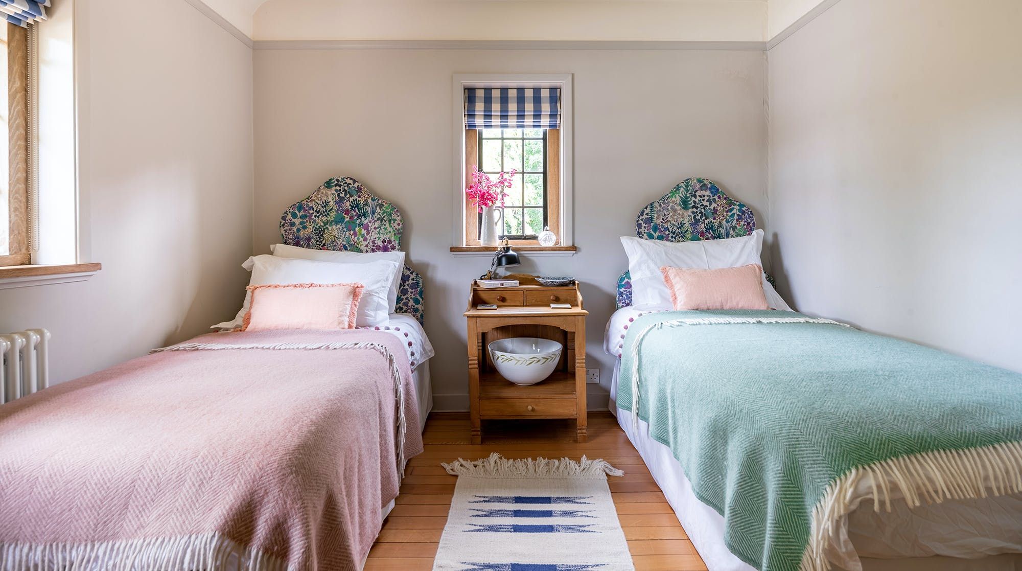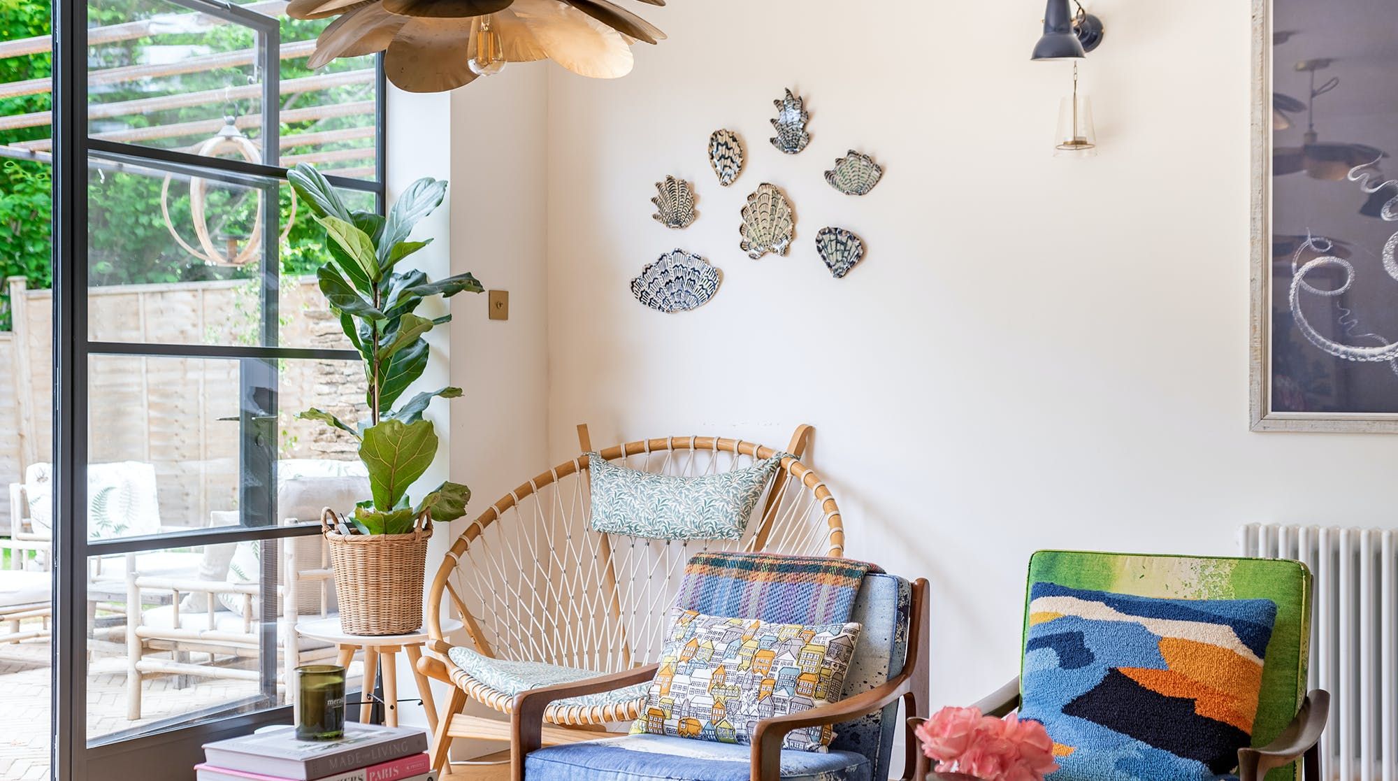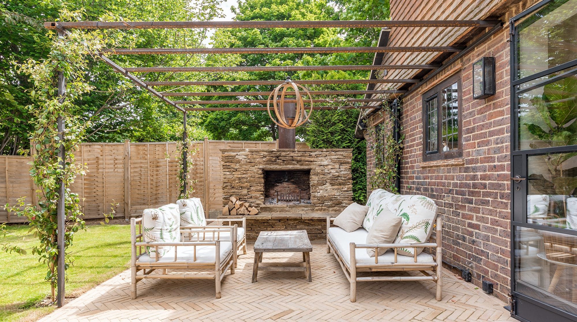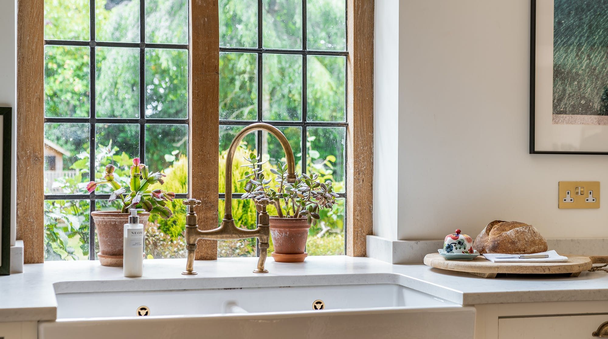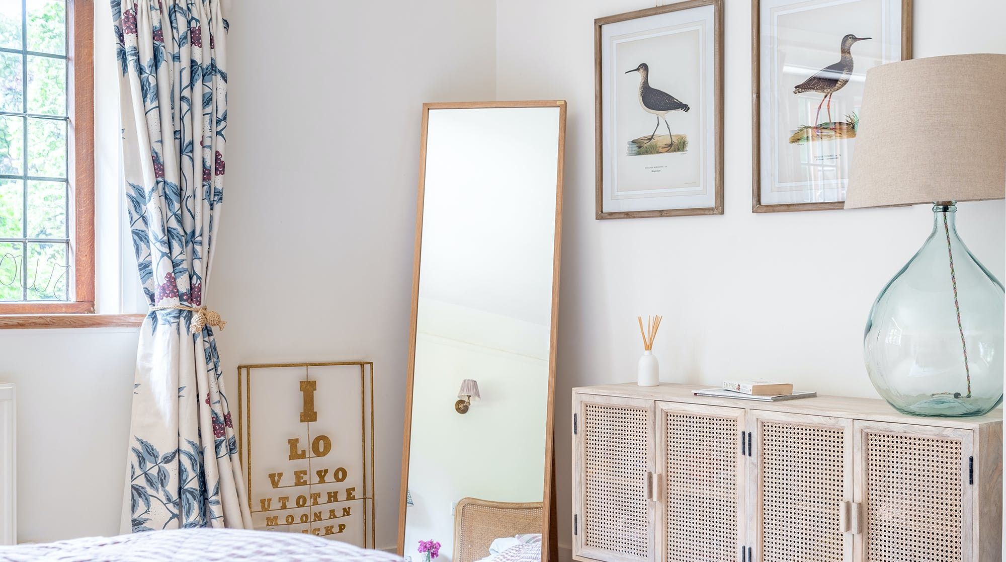 A masterclass in colour theory, the interior exudes an artisan ambience with its vibrant aesthetic, art-clad walls and eclectic array of stylish decor and vintage touches. Crittall doors usher in floods of sunlight while offering perpetual glimpses of the leafy exterior, and we love the open-plan living space. With its free-flowing layout and contemporary comforts, including an equipped farmhouse-style kitchen, it's primed for relaxation. Here, floor-to-ceiling sliding doors reveal the patio. After a restful night's sleep in the sumptuous bedrooms, step outside and sip your morning coffee here, awakening from your slumber to birdsong and the symphonic rustling of leaves.