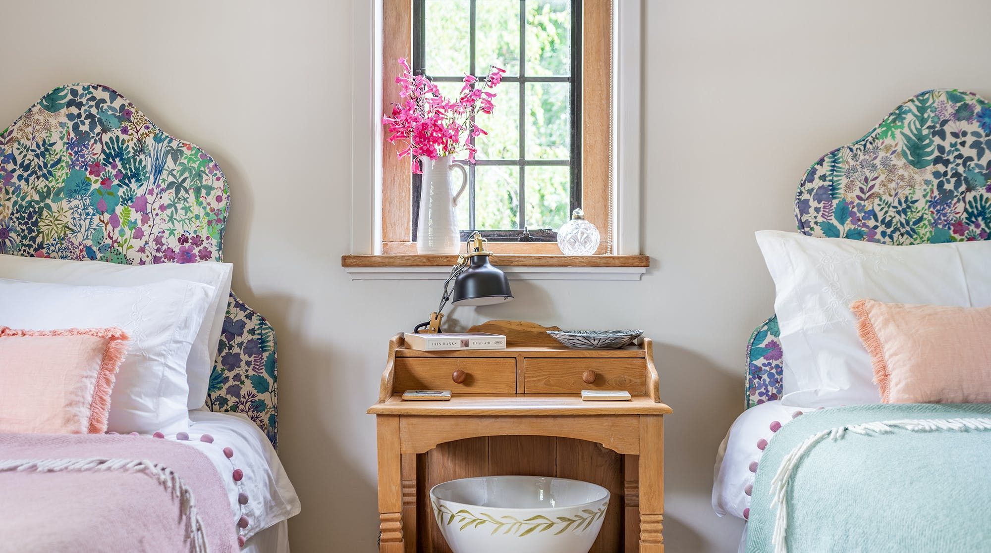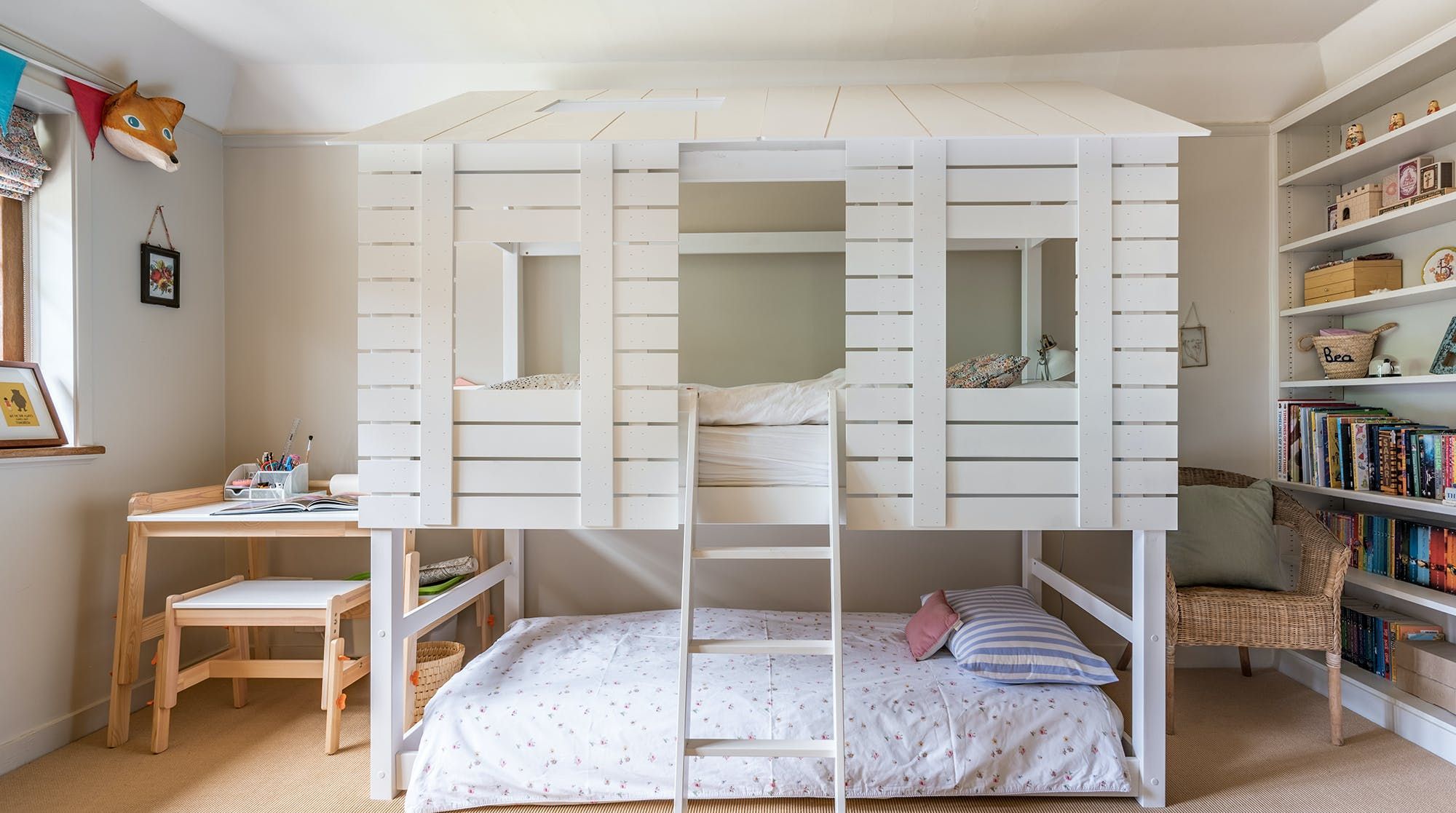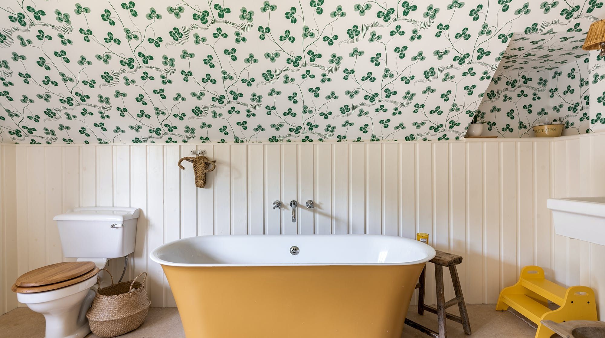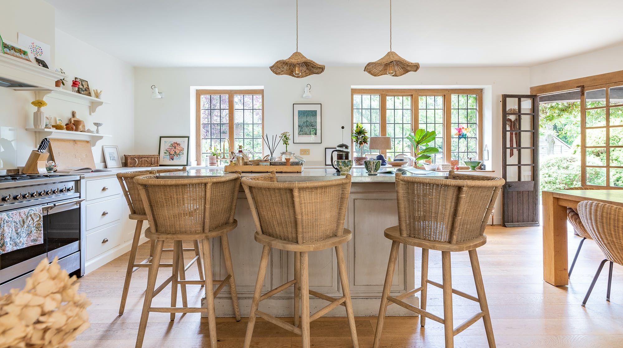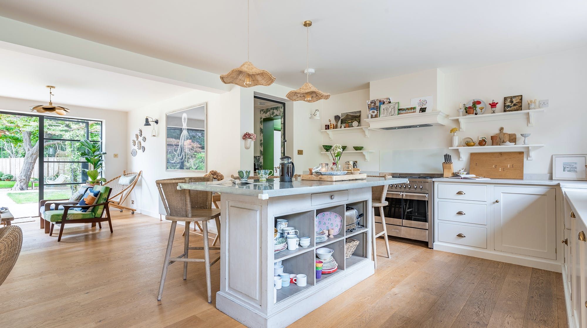 A masterclass in colour theory, the interior exudes an artisan ambience with its vibrant aesthetic, art-clad walls and eclectic array of stylish decor and vintage touches. Crittall doors usher in floods of sunlight while offering perpetual glimpses of the leafy exterior, and we love the open-plan living space. With its free-flowing layout and contemporary comforts, including an equipped farmhouse-style kitchen, it's primed for relaxation. Here, floor-to-ceiling sliding doors reveal the patio. After a restful night's sleep in the sumptuous bedrooms, step outside and sip your morning coffee here, awakening from your slumber to birdsong and the symphonic rustling of leaves.