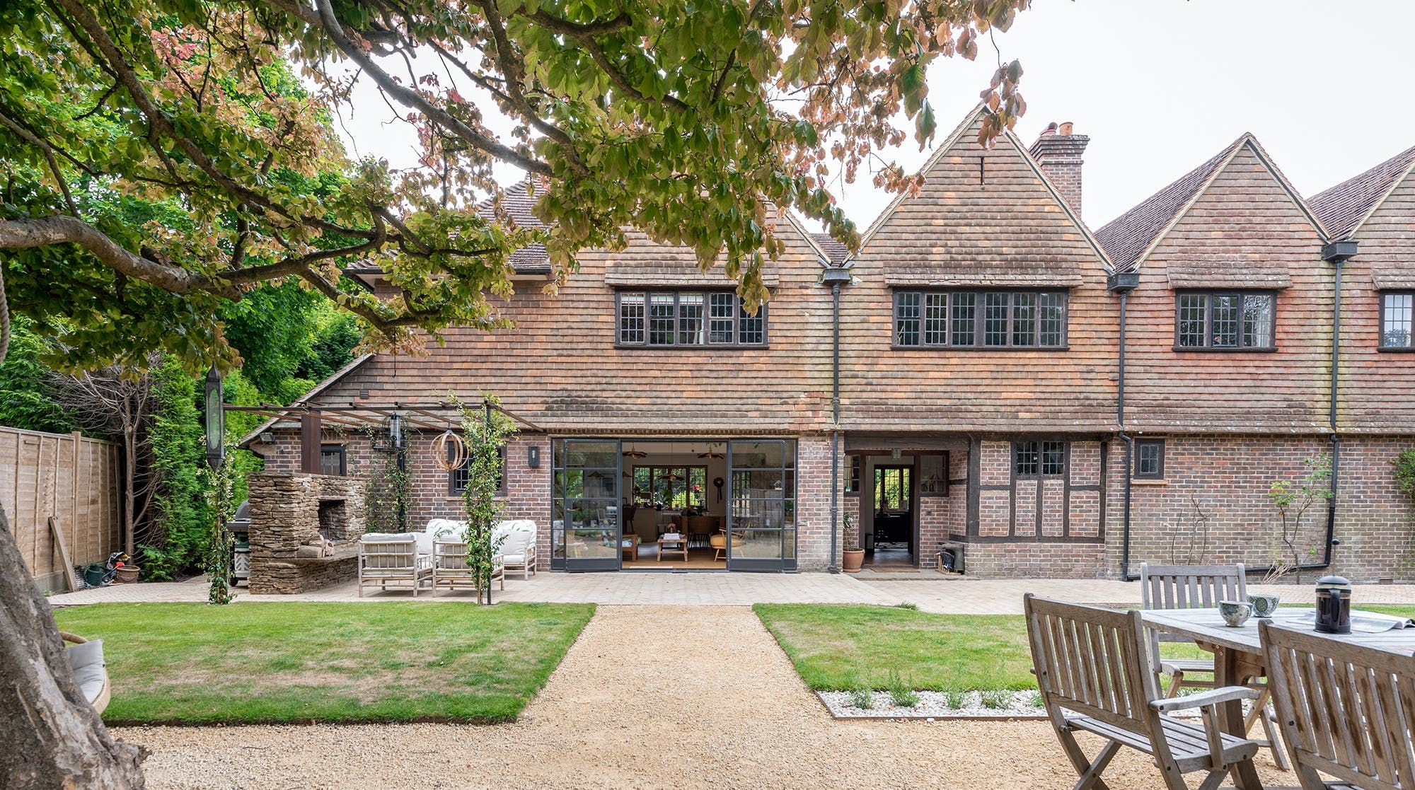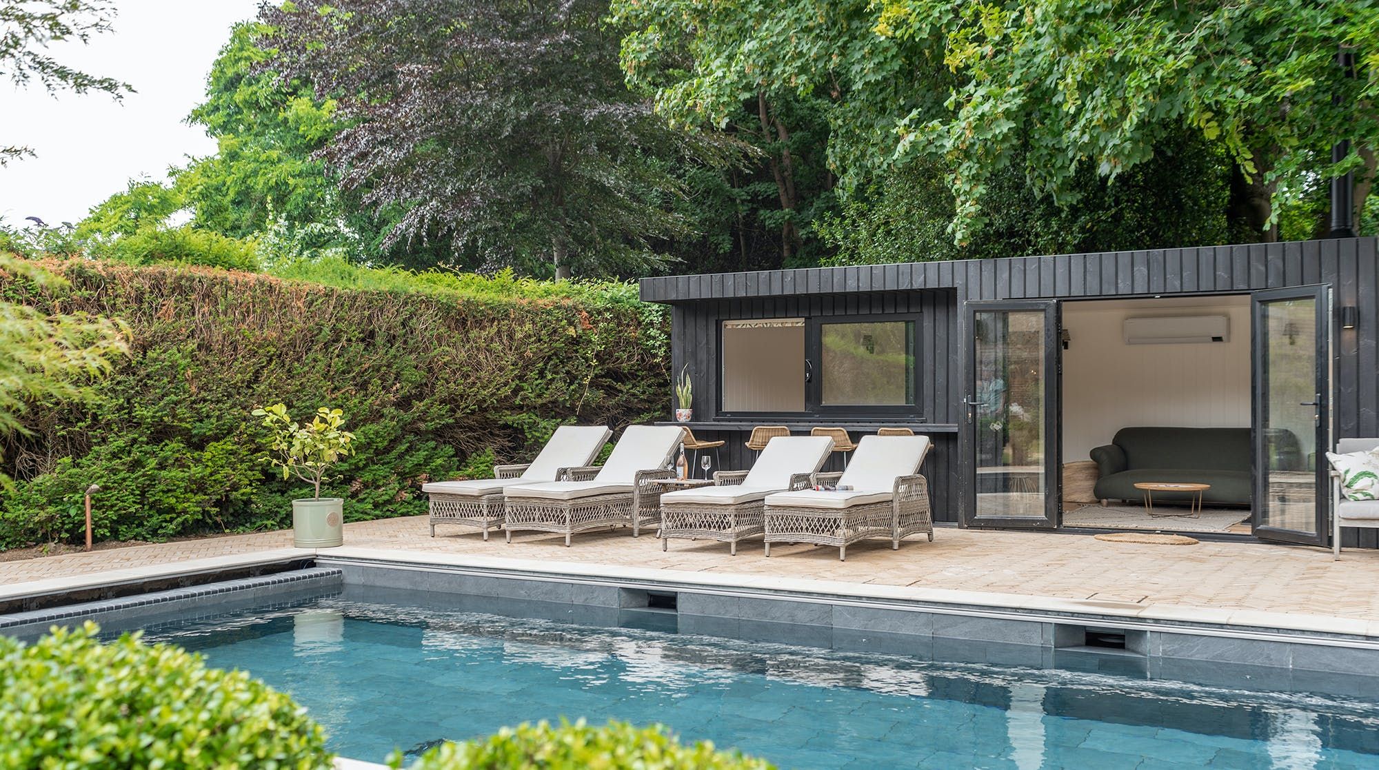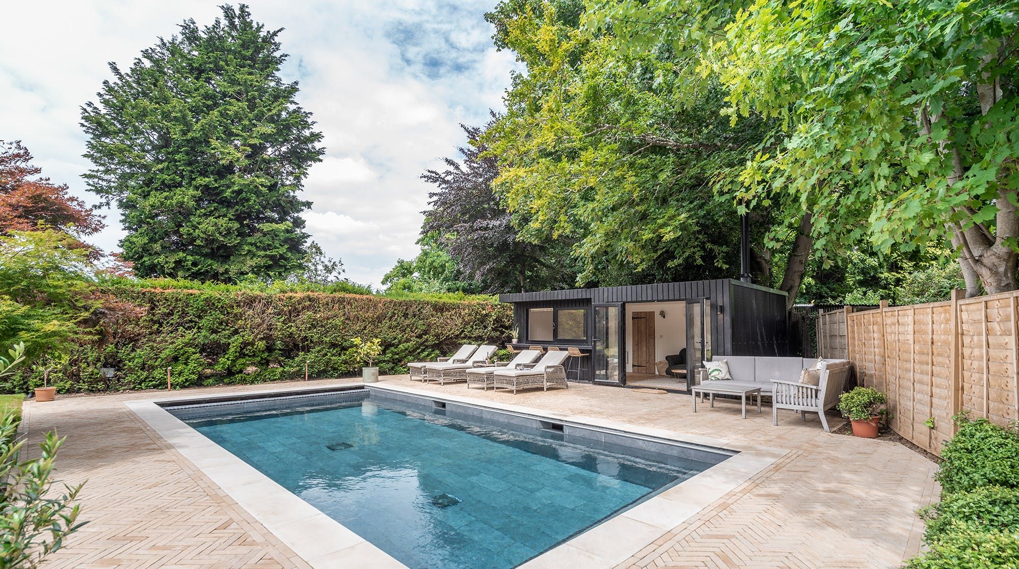 This home's beautifully equipped half acre of grounds beckons you to unwind in the splendour of your surroundings. The lush garden is nestled in a cocoon of dense foliage and pruned-to-perfection hedgerows, promising privacy. We especially love the swimming pool. Bordered by plush sun-loungers and a summerhouse, it's a lovely space for relaxing come rain or shine. After a day of adventure or simply lounging poolside, fire up the rustic barbecue for a delicious alfresco feast before a night of board games beside the crackling fireplace.