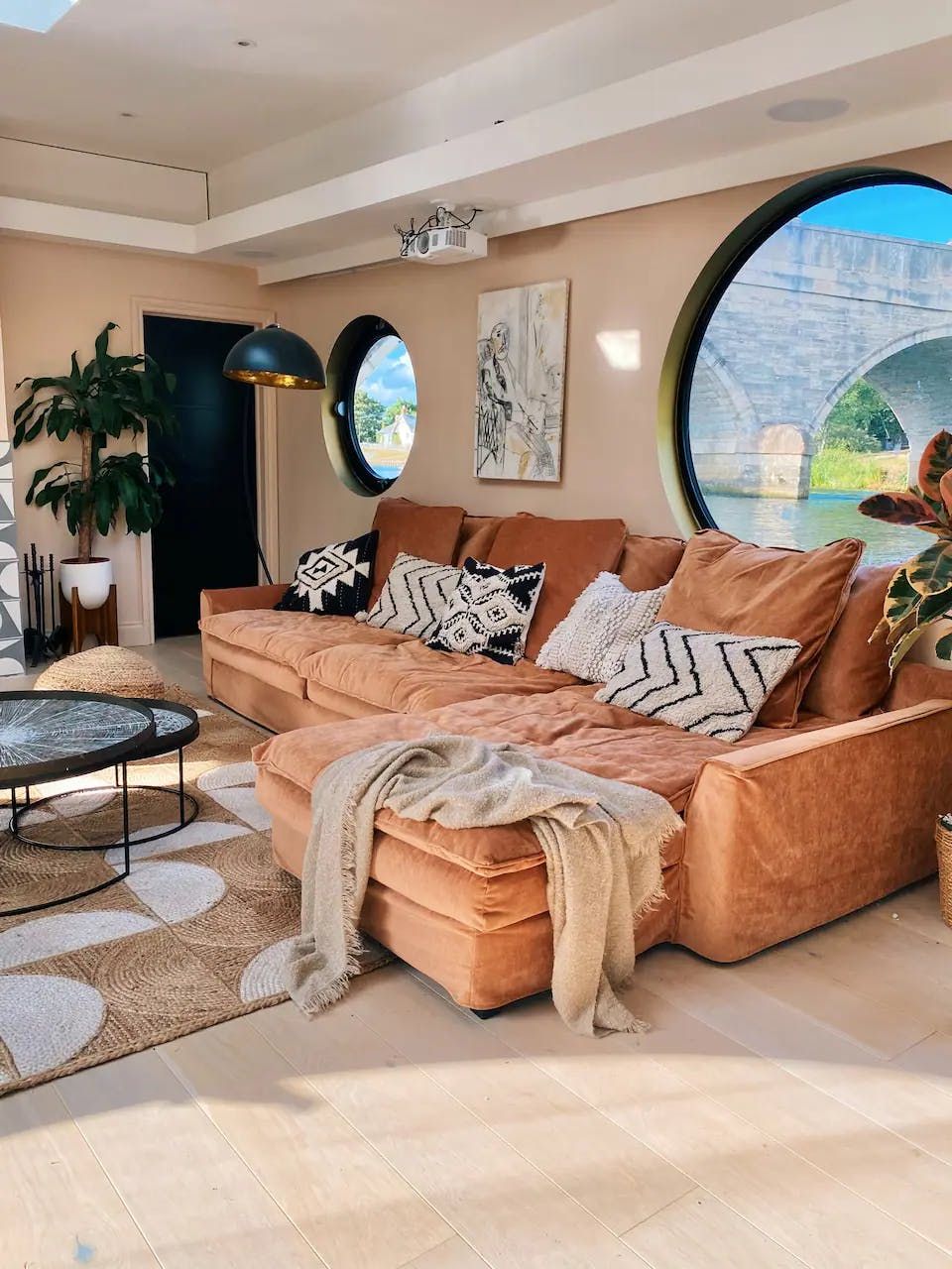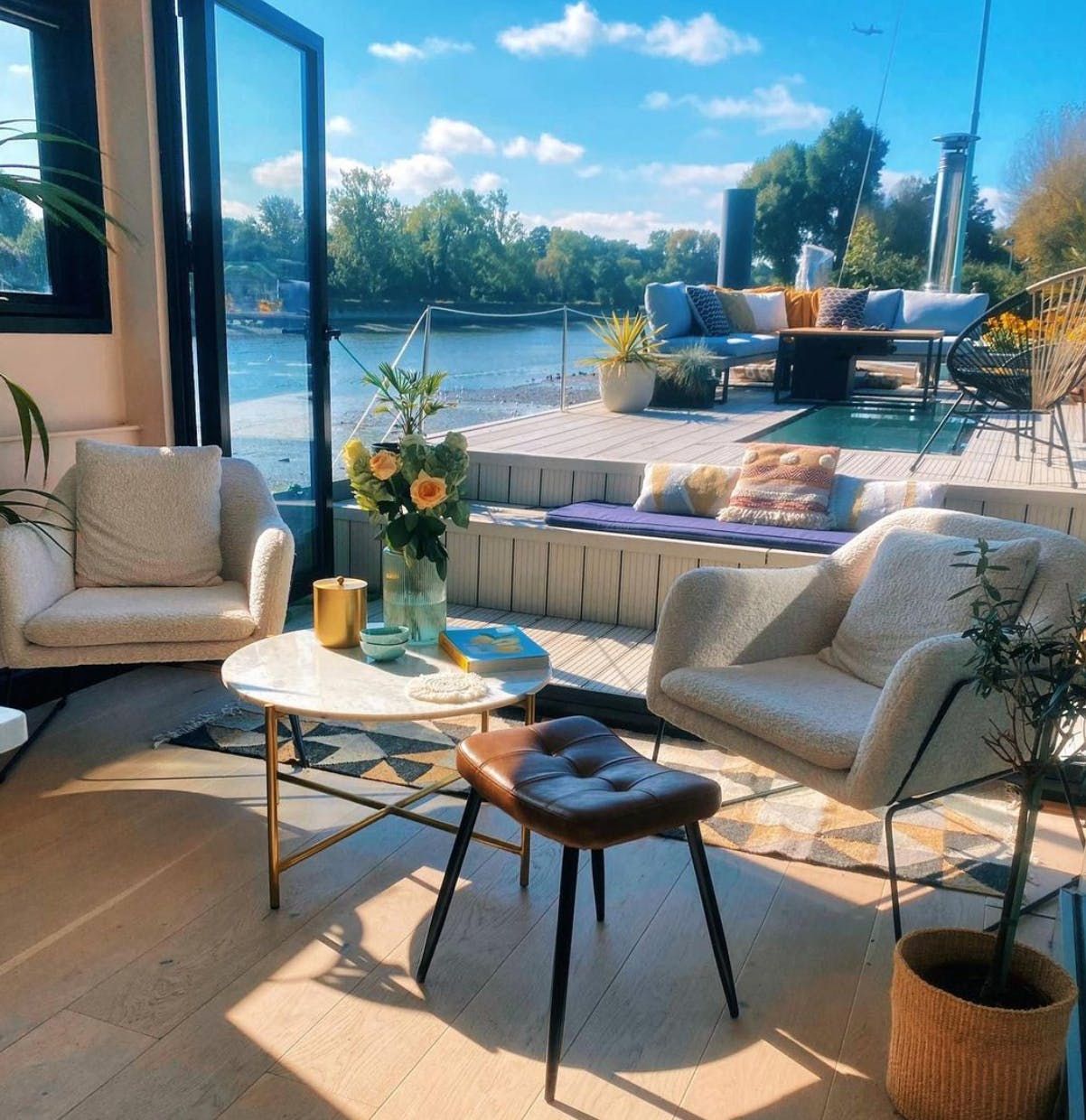 Stepping onto this design-led houseboat, you’ll soon see why it was featured on Channel 4’s ‘George Clarke's Amazing Spaces.’ Deceptively large and carefully styled, you’d hardly know you were on a houseboat at all – if it weren’t for the river just outside. The furnished deck is a definite highlight, equipped with outdoor seating and a fire pit. But thanks to bi-fold doors and enormous porthole windows, the indoors blends seamlessly with its surroundings. A skylight keeps things bright even on the lower level, and luxurious extras like a spa tub, underfloor heating and Alexa-controlled blinds and lighting ensure all comforts are provided. While you could easily while away all day taking in the river views, ramp up the action with a visit to Thorpe Park (within walking distance) or take part in some water sports on nearby Thorpe Lake.