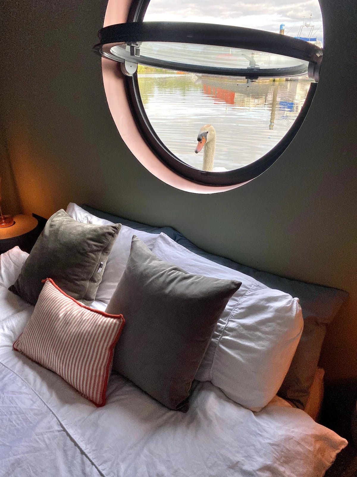 *Please note that swans are known to approach the large porthole windows