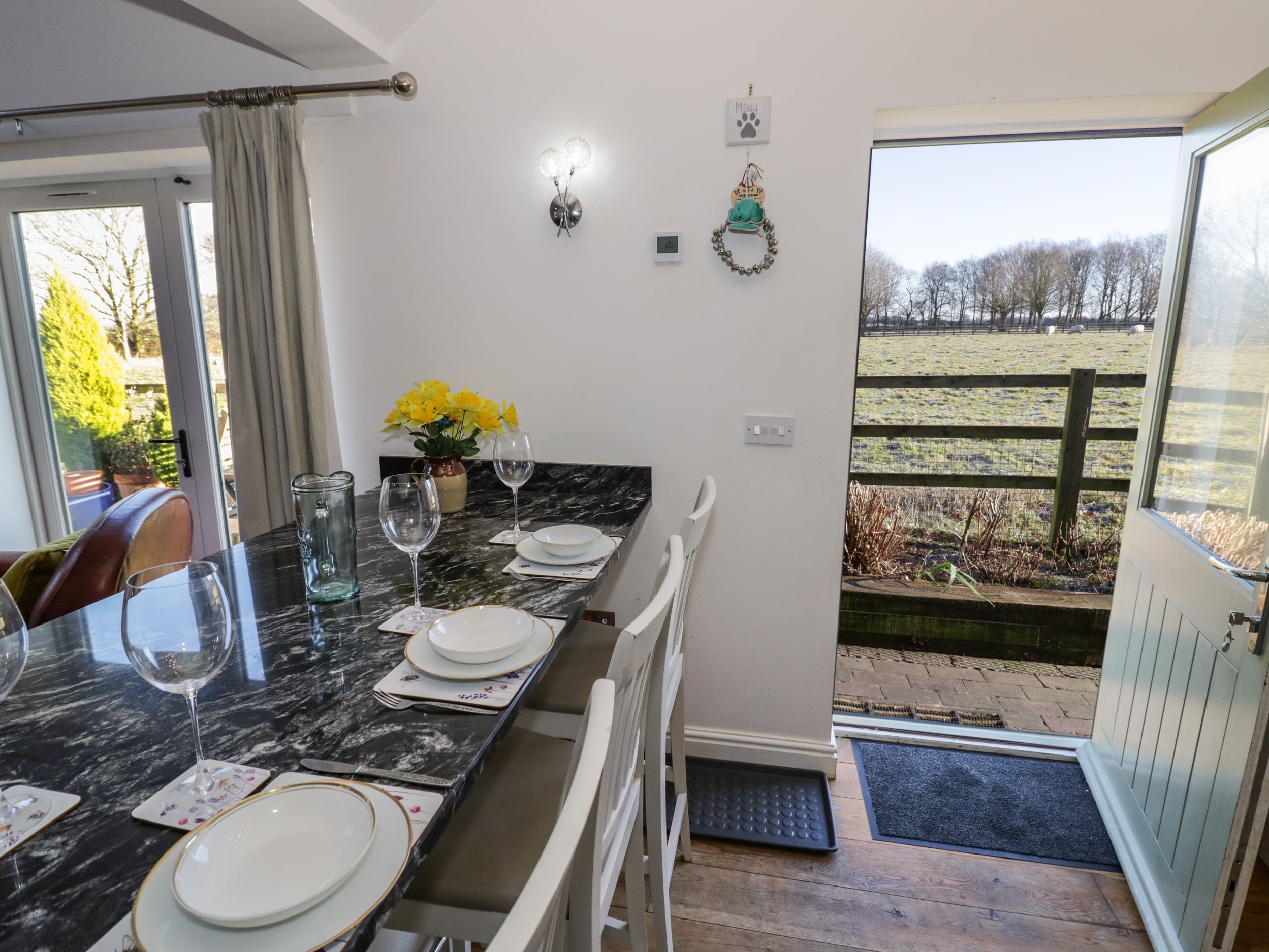Oil central heating with woodburner and underfloor heating. Electric oven and hob, microwave, fridge/freezer, washer, dishwasher, TV with Freeview, DVD, CD/Radio, iPod dock, WIFI, selection of books, games and DVDs. Fuel, power and starter pack for fire inc. in rent. Bed linen and towels inc. in rent. Off road parking for 2 cars. Enclosed outdoor area with patio, furniture. Two well-behaved dogs welcome. Sorry, no smoking. Shop and pub in local village of Barford within 2 mile distance. Note: Property may be unsuitable for people with mobility issues as there are 2 steps up the entrance