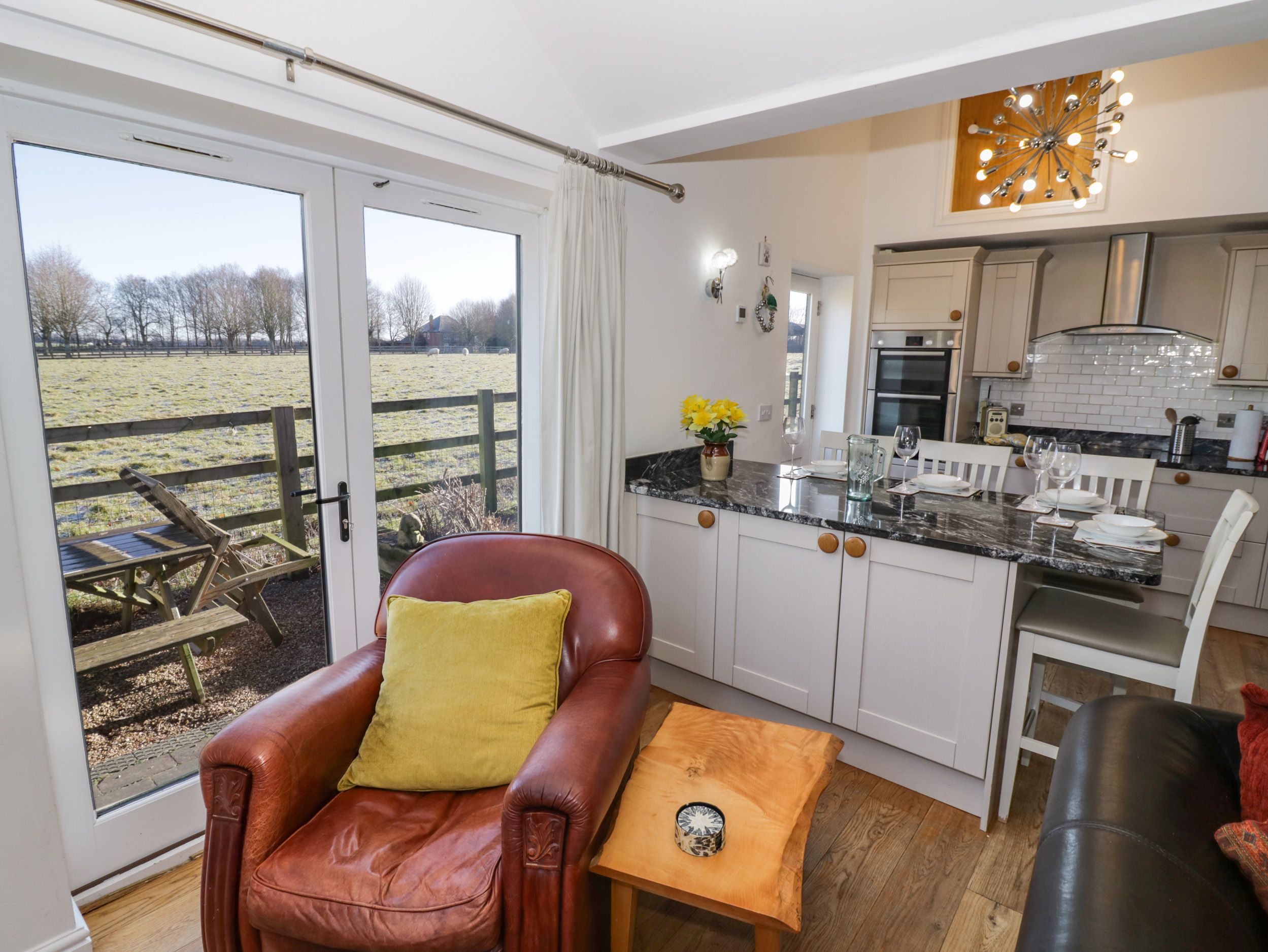 The Retreat is situated near the village of Kenilworth in Warwickshire. Hosting two bedrooms; a king-size and a double, as well as a family shower room, this property can sleep up to four people. Inside, you will also find an open plan sitting, kitchen and dining area with a wood burner and breakfast bar. To the outside, is off road parking for two cars and a patio with furniture and hot tub. Resting in a desirable setting and close to charming attractions, The Retreat is a lovely accommodation in a cosy part of England.
