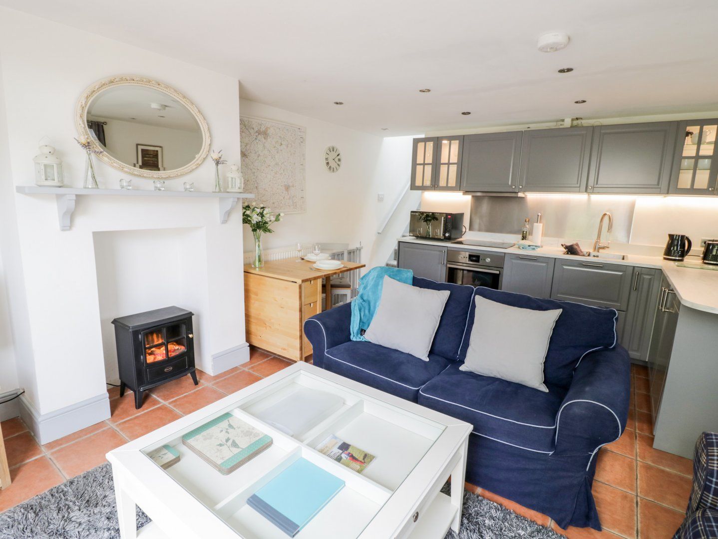 One king-size double bedroom. Bathroom with freestanding bath, walk-in shower, basin and WC. Open plan living area with kitchen, dining area and sitting area with electric woodburner-effect stove