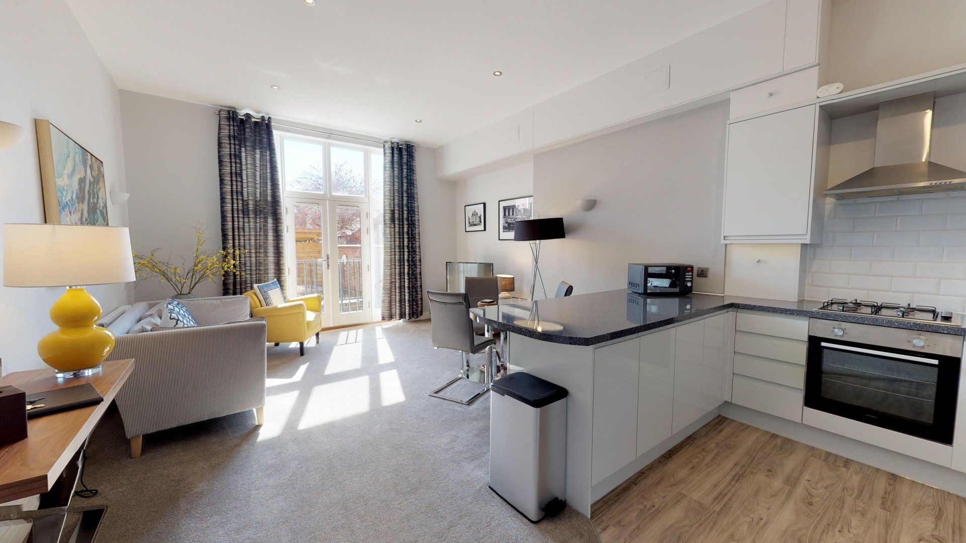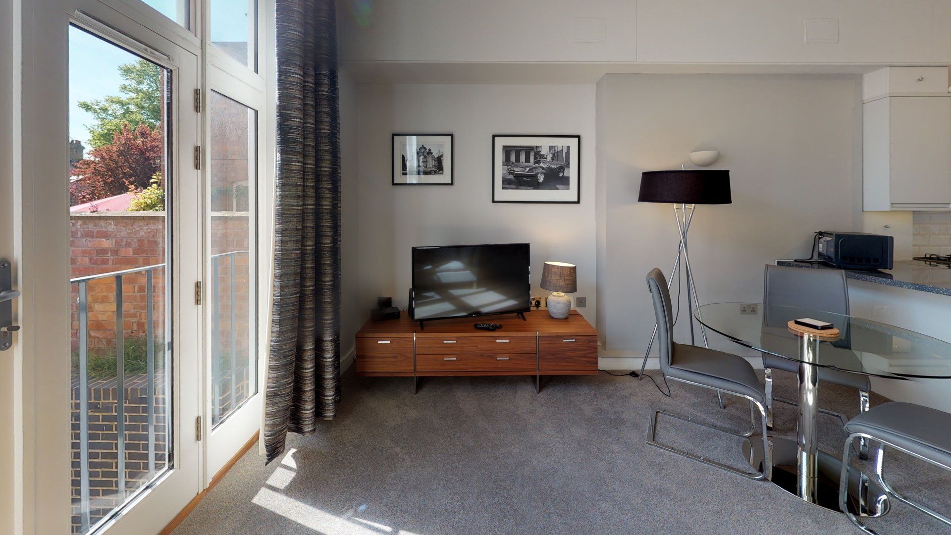 Just a few minutes' walk from the heart of Leamington Spa, you'll find this lovely apartment on a side street. Admire this spa town's Regency architecture or stroll along the River Leam. Further afield, Warwick Castle is 6 kilometres away, while Stratford-Upon-Avon, the birthplace of William Shakespeare, is 15 kilometres from this home. Housed in a period building, we love the character features, such as the bay windows in the bedroom, while the open plan living space has French doors and a Juliet balcony.