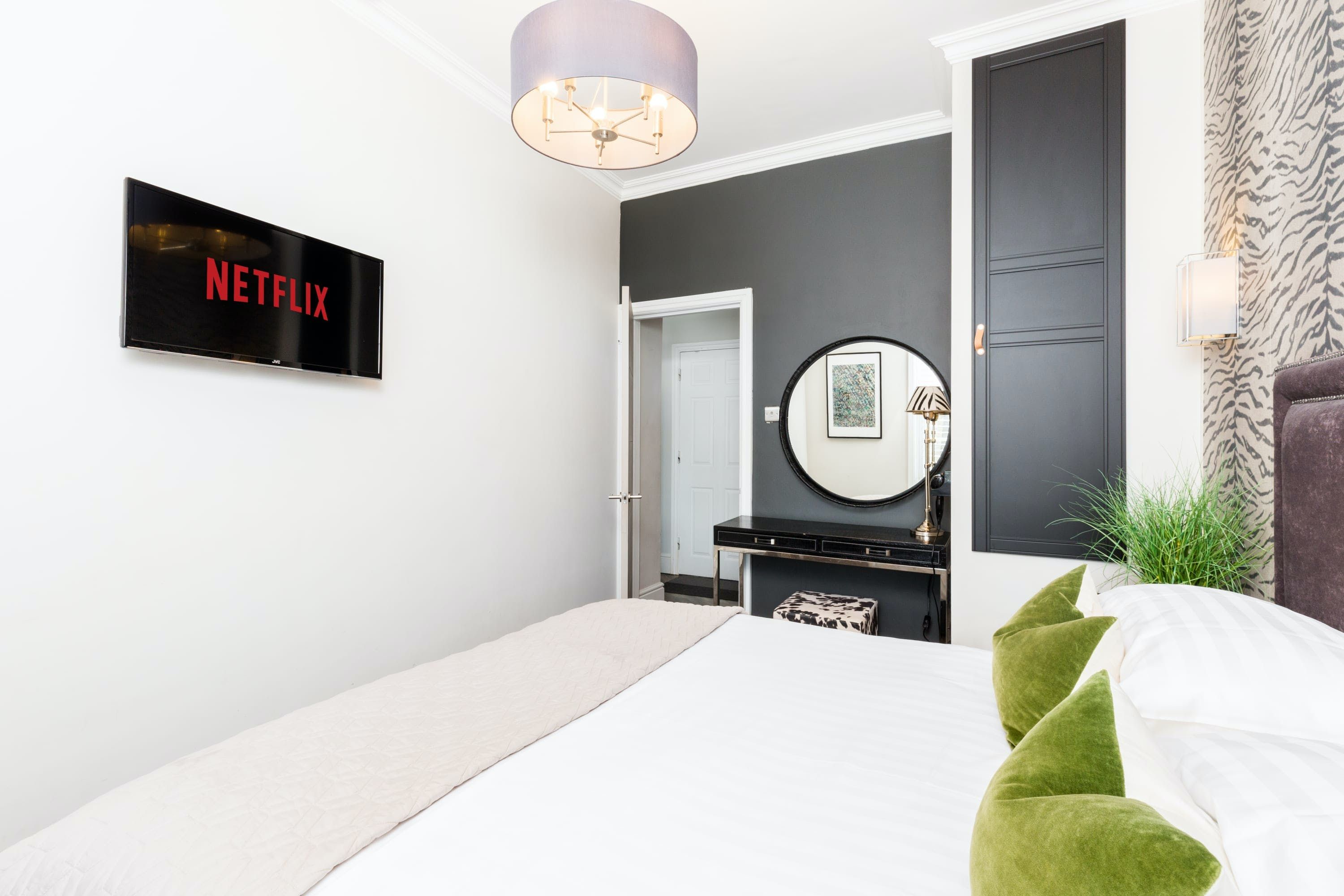 The location of this apartment is ideal for a stay in Royal Leamington Spa. It’s set in a handsome Regency building just a ten-minute walk from the town centre, where you’ll find plenty of cafes, bars and independent shops to explore. The train station is also close by, making day trips to nearby Warwick or Stratford-upon-Avon easy. When you’re not out and about, the apartment offers a calm base. You’ll need to climb a couple of staircases to get up to the front door, but when you’re inside it’ll be your chic pad with everything you need for a comfortable stay.