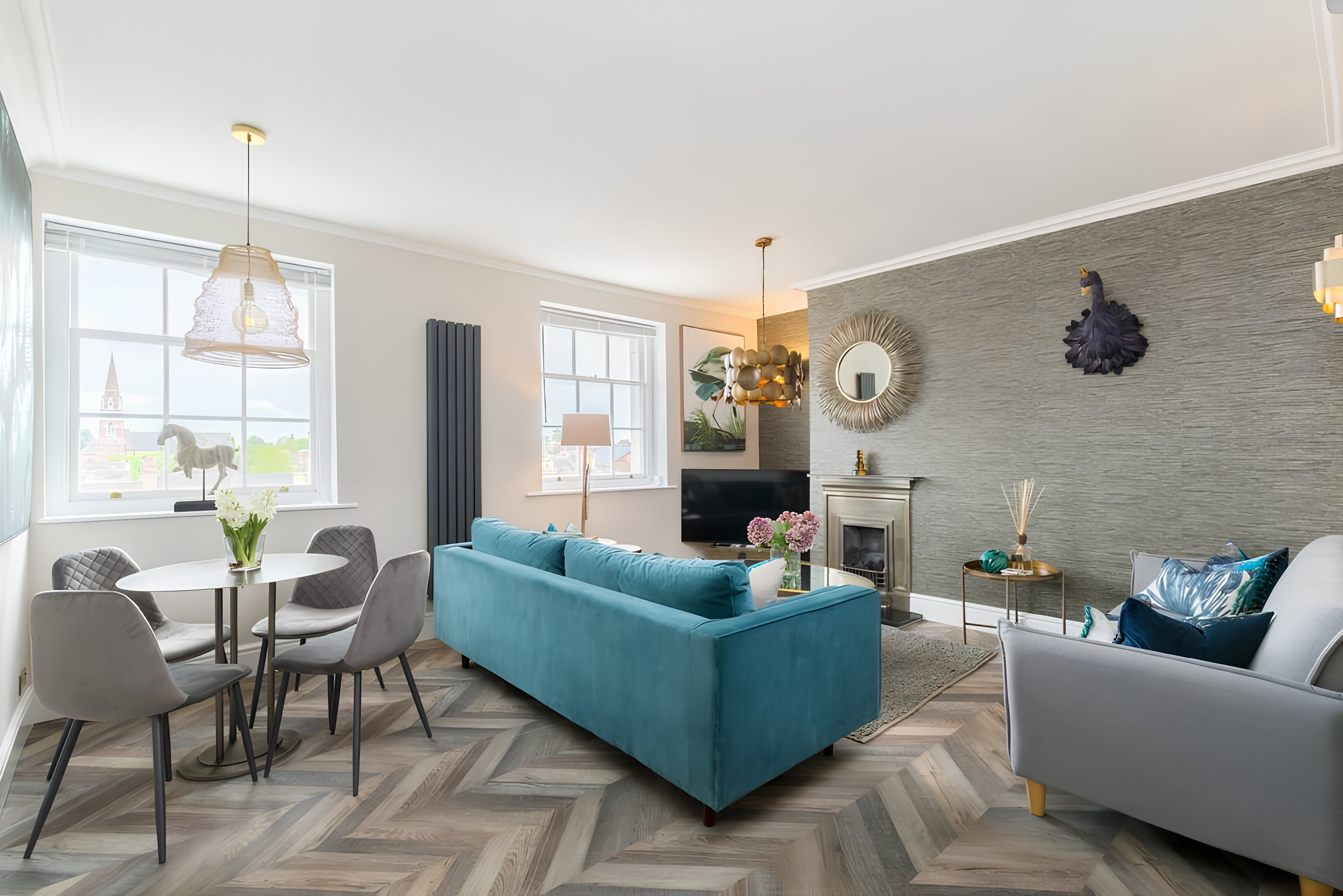 Stylish and colourful, this apartment, housed in a Regency building, is a great find. Once you’ve climbed the stairs to the third floor, your reward is a luxurious and comfortable living space to relax in – this room also has a sofa bed, should you need it. And with free parking on the premises, you can explore everything that Warwickshire has to offer, including Stratford-upon-Avon. Another bonus of this home’s location is that it’s just a ten-minute walk to the centre of Leamington Spa, where you’ll find plenty of shops, cafes and restaurants.