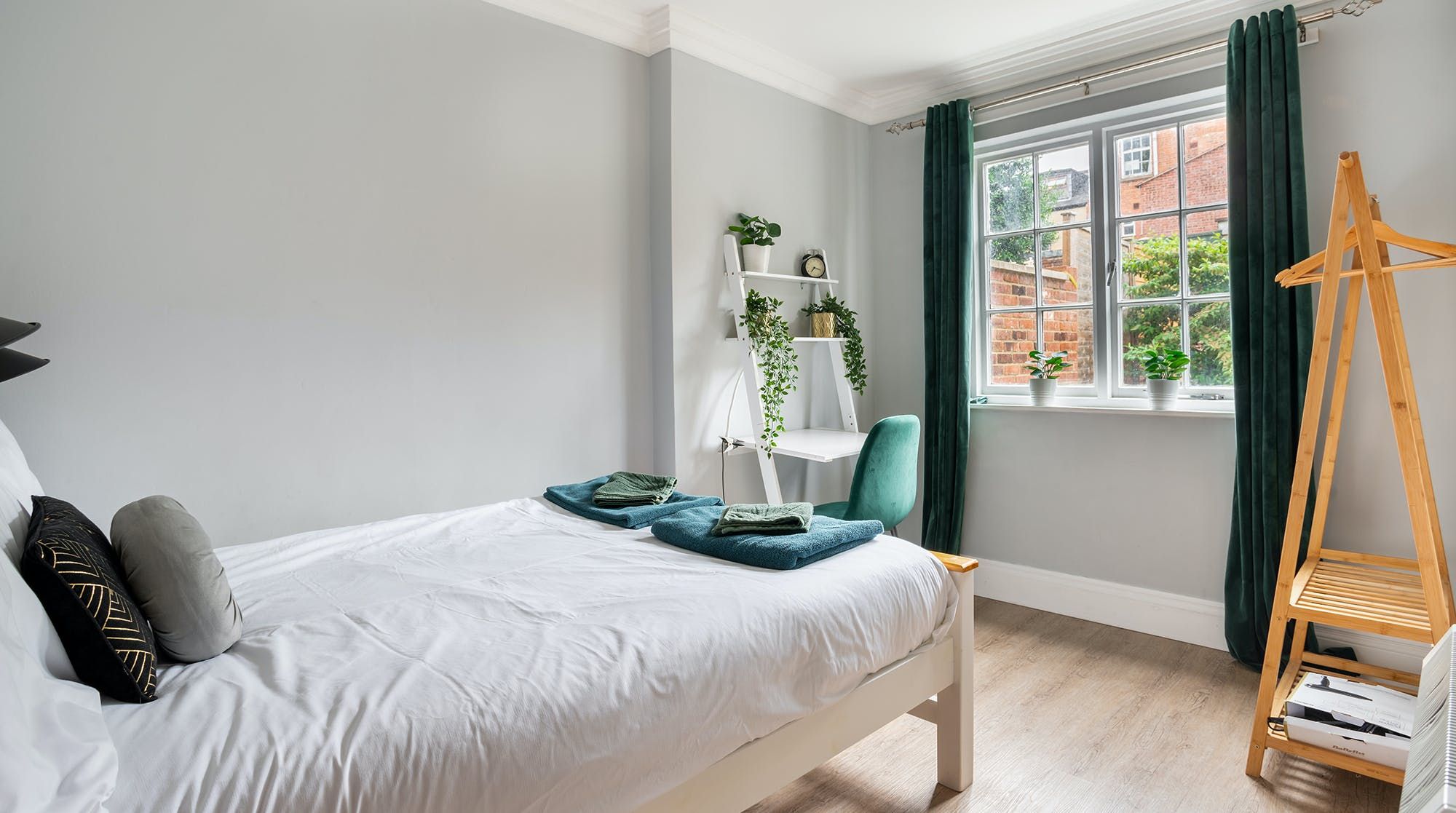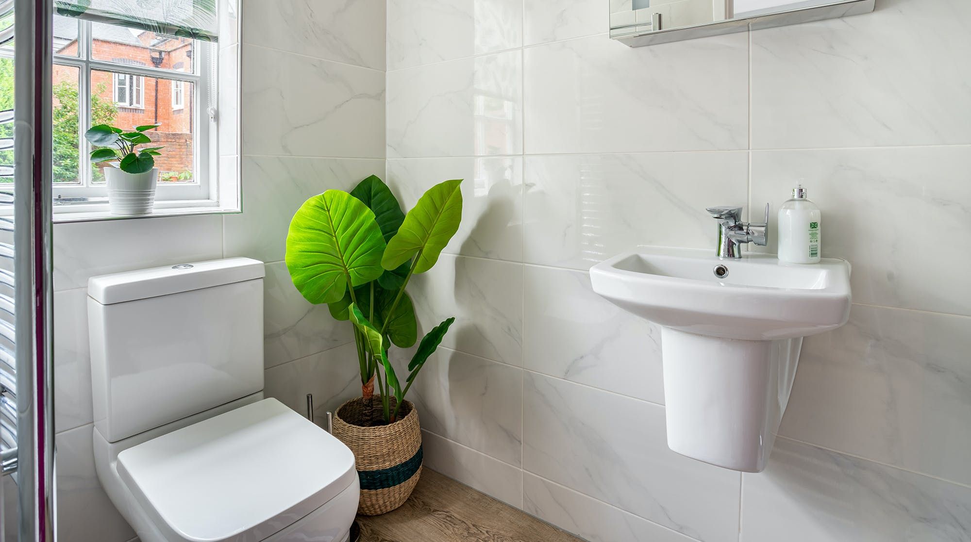 Marrying sophisticated Regency style with contemporary aesthetics, this classy pad is the perfect base to explore Leamington Spa and its surrounding area. Relax in the chic living room, equipped with a velvet button-back sofa, boutique-style furnishings and a vast sash window looking out to the elegant townhouse-flanked street.