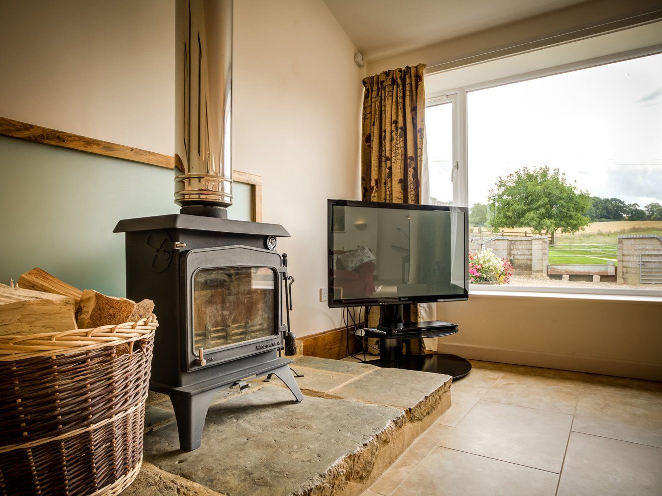 Holiday home Wytons Piece is a ground floor, holiday cottage located in Ascott, Warwickshire. It is set within the open farmland overlooking the rolling hills of the Northern Cotswolds. The property opens up to an open-plan living room with a dining area and a wood burning stove, as well as a fitted kitchen with a breakfast bar. There are two king-size bedrooms, one with an en suite shower room and WC, and one twin bedroom. There is also a separate bathroom and WC. To the rear of the property there is a terrace and garden area with furniture provided. Off road parking is available. Wytons Piece is the perfect property for remote holidays.