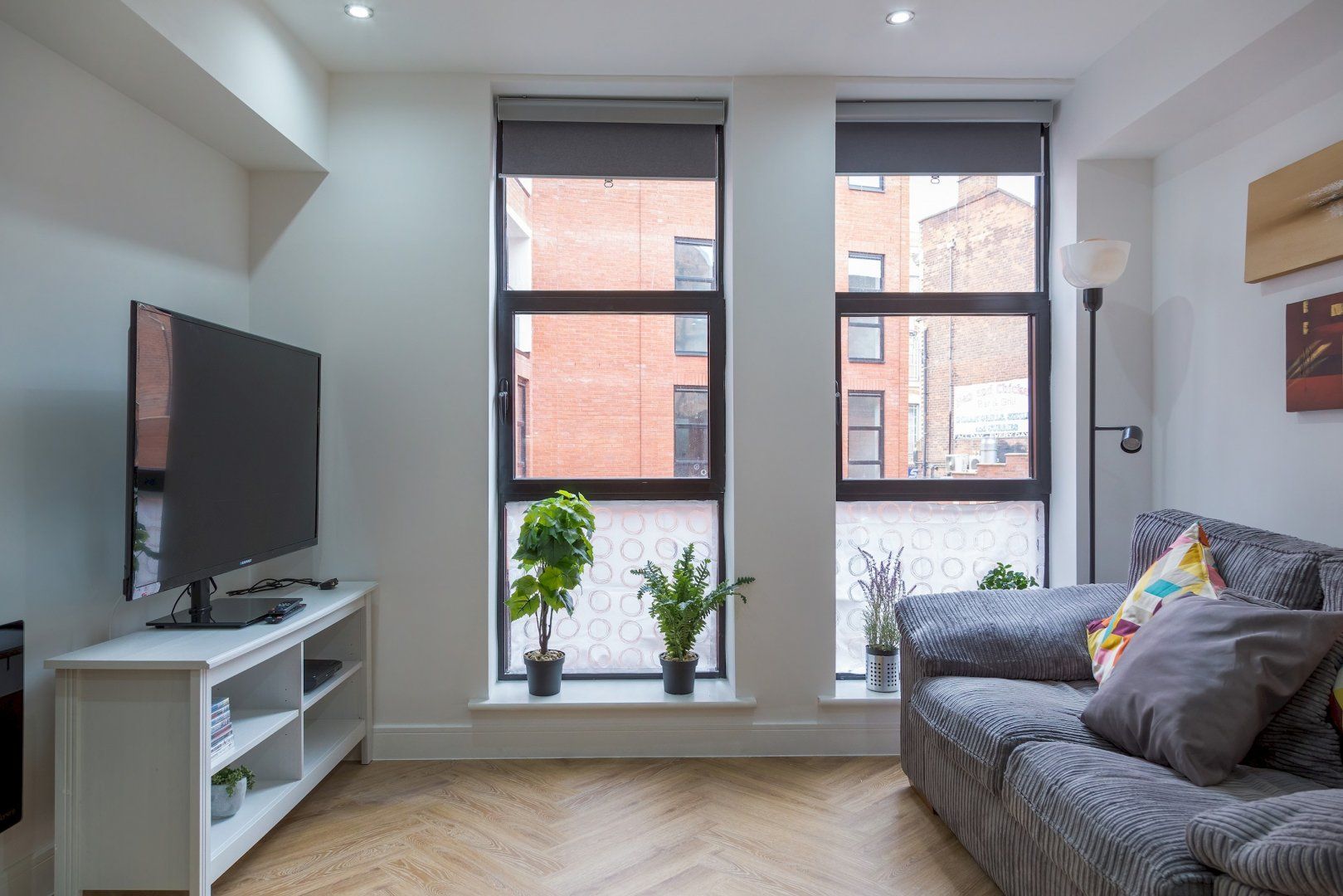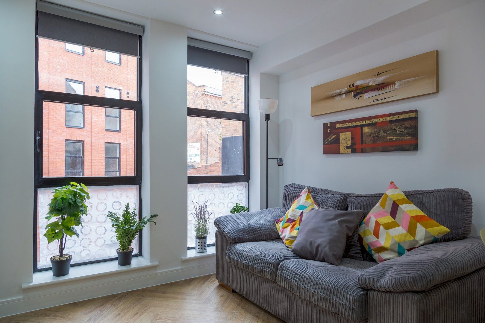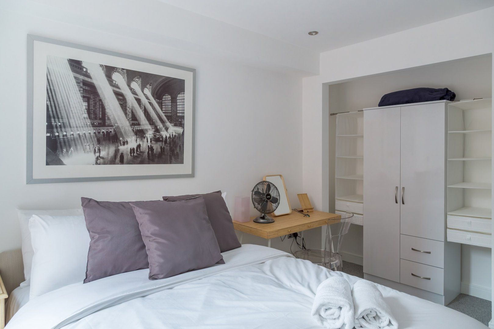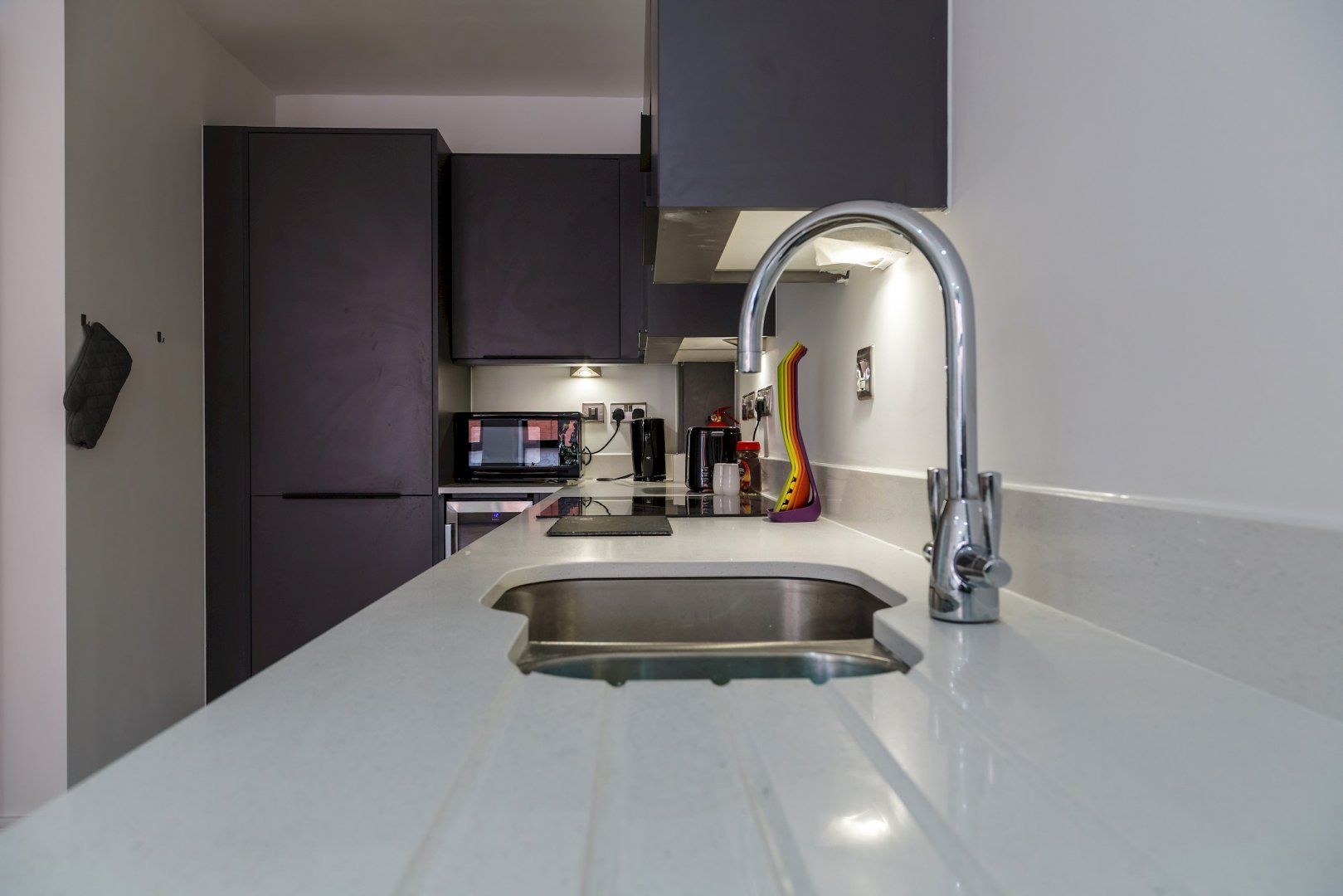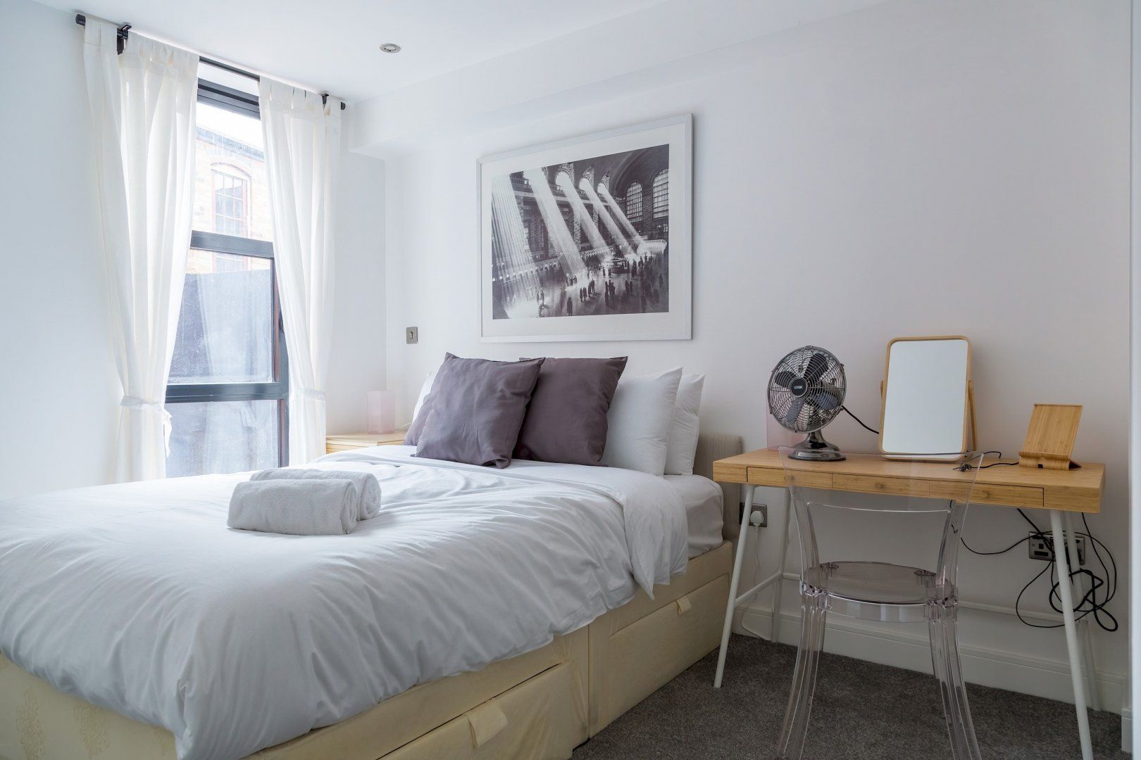 Set centrally in Birmingham’s famous Jewellery Quarter, this open-plan apartment is a practical base for a short city break. Situated nearby Georges Park and the canal – there’s plenty of greenery within walking distance. If hustle and bustle is more your thing, the city centre and Bullring can easily be reached by bus or car. If you find yourself visiting for work – the dedicated workspace makes things easy. While the welcome addition of a wine cooler makes for perfectly chilled after-work drinks.