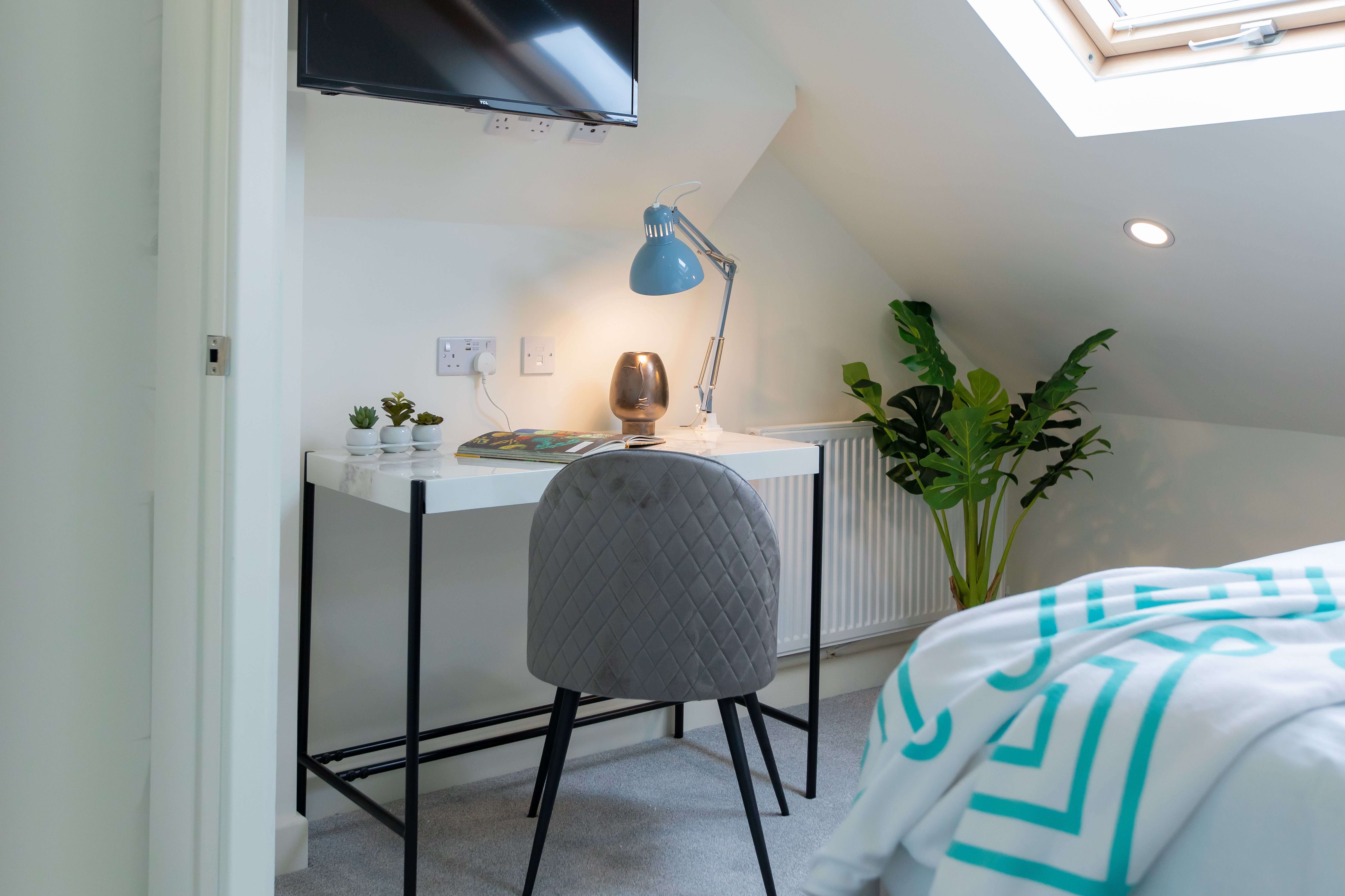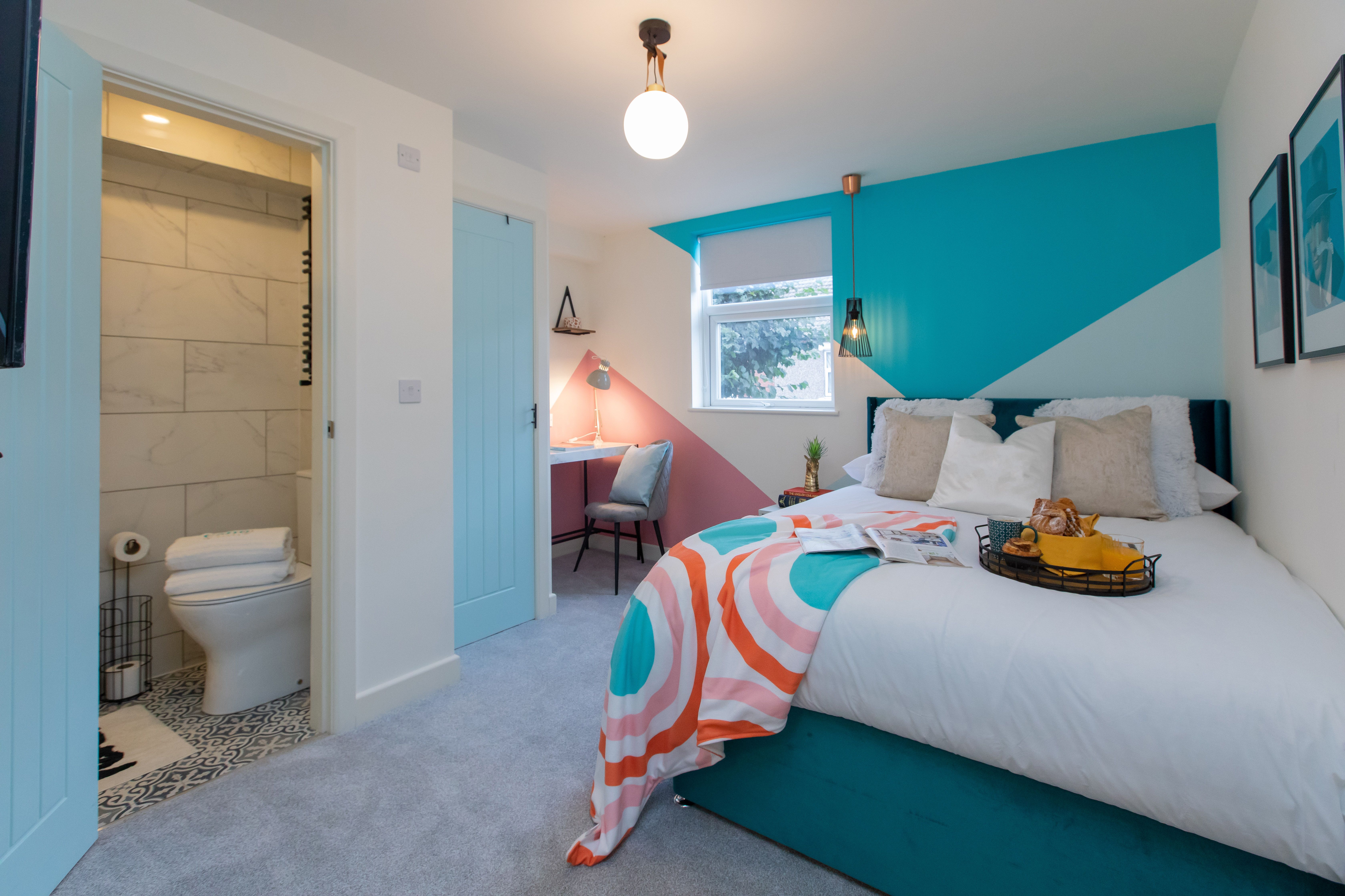 This bright and welcoming home has everything you might need for a break in Coventry. Each bedroom has an en-suite bathroom, a TV, and a desk, making it well suited to those in town for business as well as friends and family. The high-speed wi-fi makes it ideal for remote working, and the beach-hut-style garden is handy when you’re ready to unwind. The home is close to the city centre and the university, and just a twenty-minute drive from the NEC.