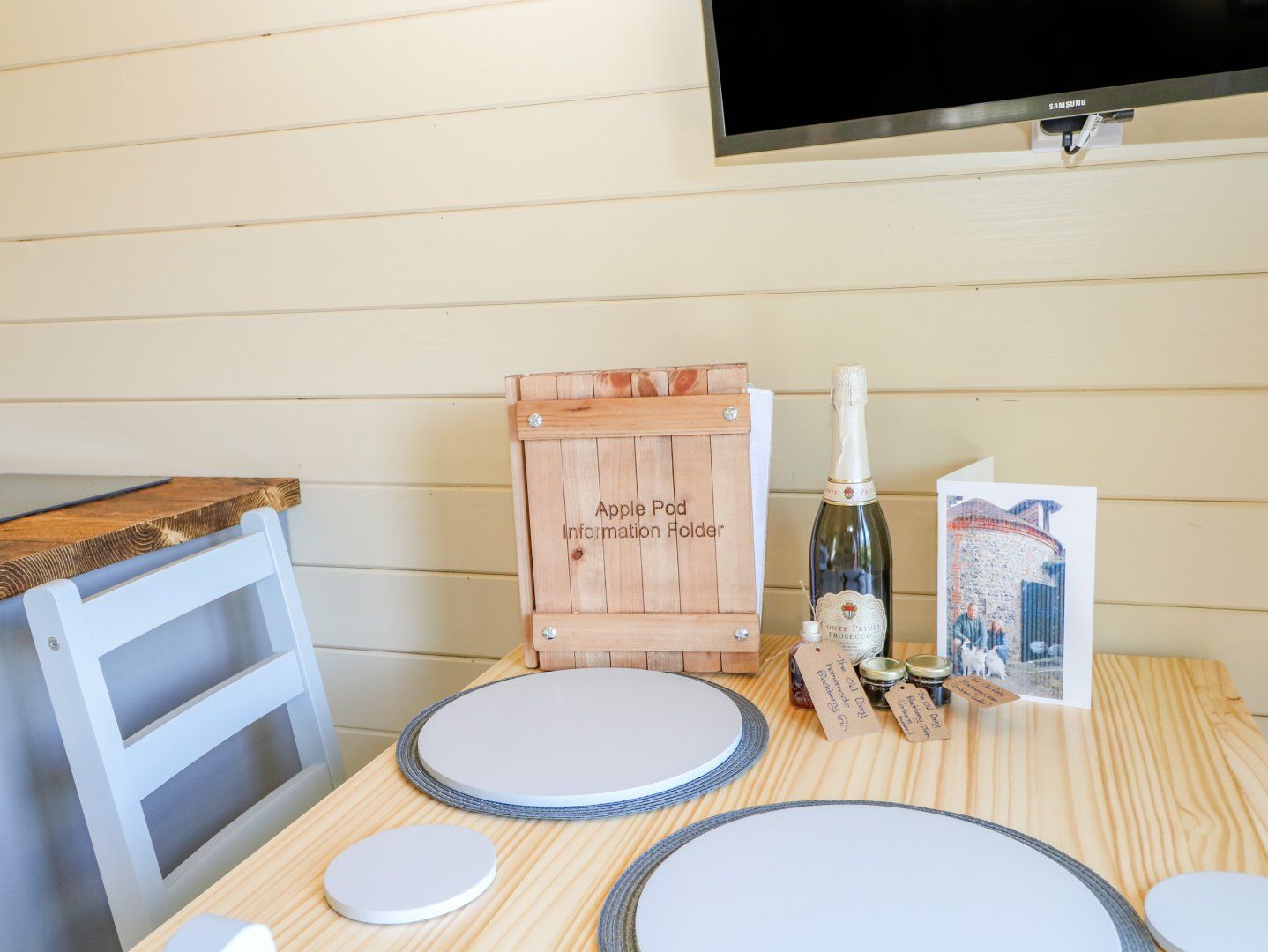 Holiday home The living areas in this studio-style pod consist of a double bed, a kitchen equipped with combi oven/microwave, induction hob and fridge with ice-box, dining area and sitting area with Smart TV, there is also a shower room. Outside there is parking available and a private garden with decking and furniture. Within 0.6 miles you will find a shop and 0.7 miles a pub. One well-behaved dog is welcome but sorry, no smoking. WiFi, fuel, power, bed linen and towels are all included in the price. Apple Pod is a beautiful location for those seeking a romantic getaway to the countryside.