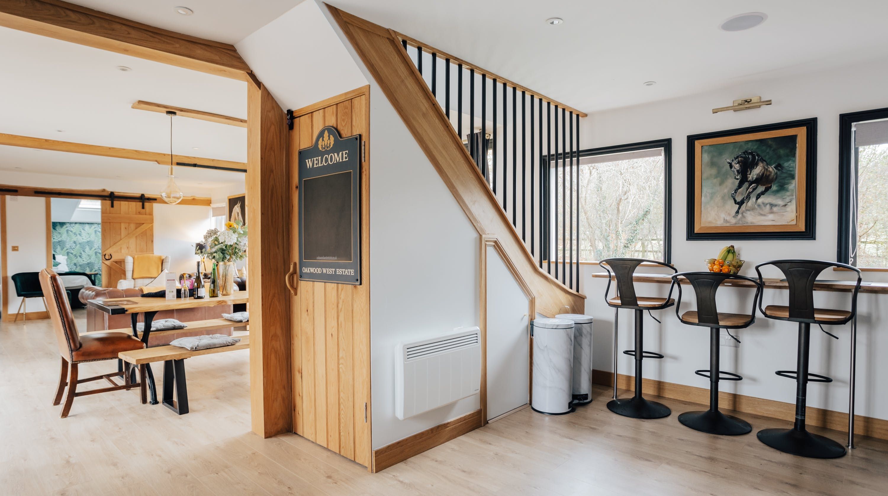 For the group that likes to spread out on the country getaways, this converted stable near the South Downs is the perfect choice. There’s two of everything: lounges with wood-burning stoves, country-style kitchens and even two separate backyards each with its own hot tub. The full outdoor kitchen under the pergola can accommodate the most elaborate of barbecues in the summer months and when the weather gets cooler you can get a fire going in the outdoor brick fireplace and huddle on the sofa. Inside, striking equestrian-themed artworks are a nod to the building’s former life as a stable and two dining tables (one in each cottage) with long benches are pure rustic country vibes. As the sun sets, it’s a choice between the circular or square hot tub, both bubbling away beneath stringed lights. Here, you’re on the edge of the South Downs National Park, and bedroom windows overlook the estate’s hay meadow for a bit of tranquillity. Yet, the shops, pubs and coffee shops of Bosham village are a fifteen-minute stroll away where you’ll find wildlife-filled walks in the Chichester Harbour Area of Natural Beauty.