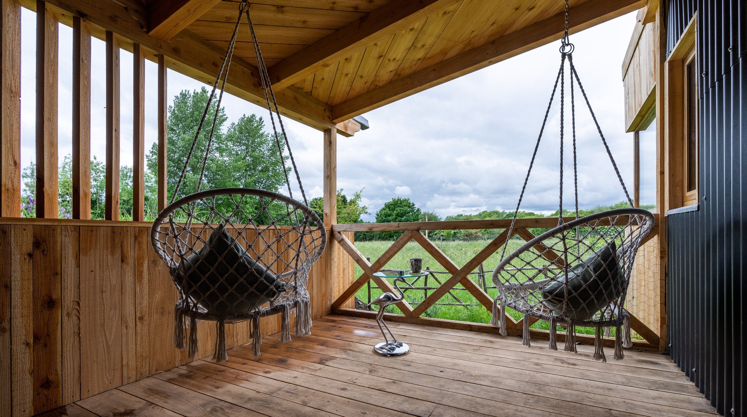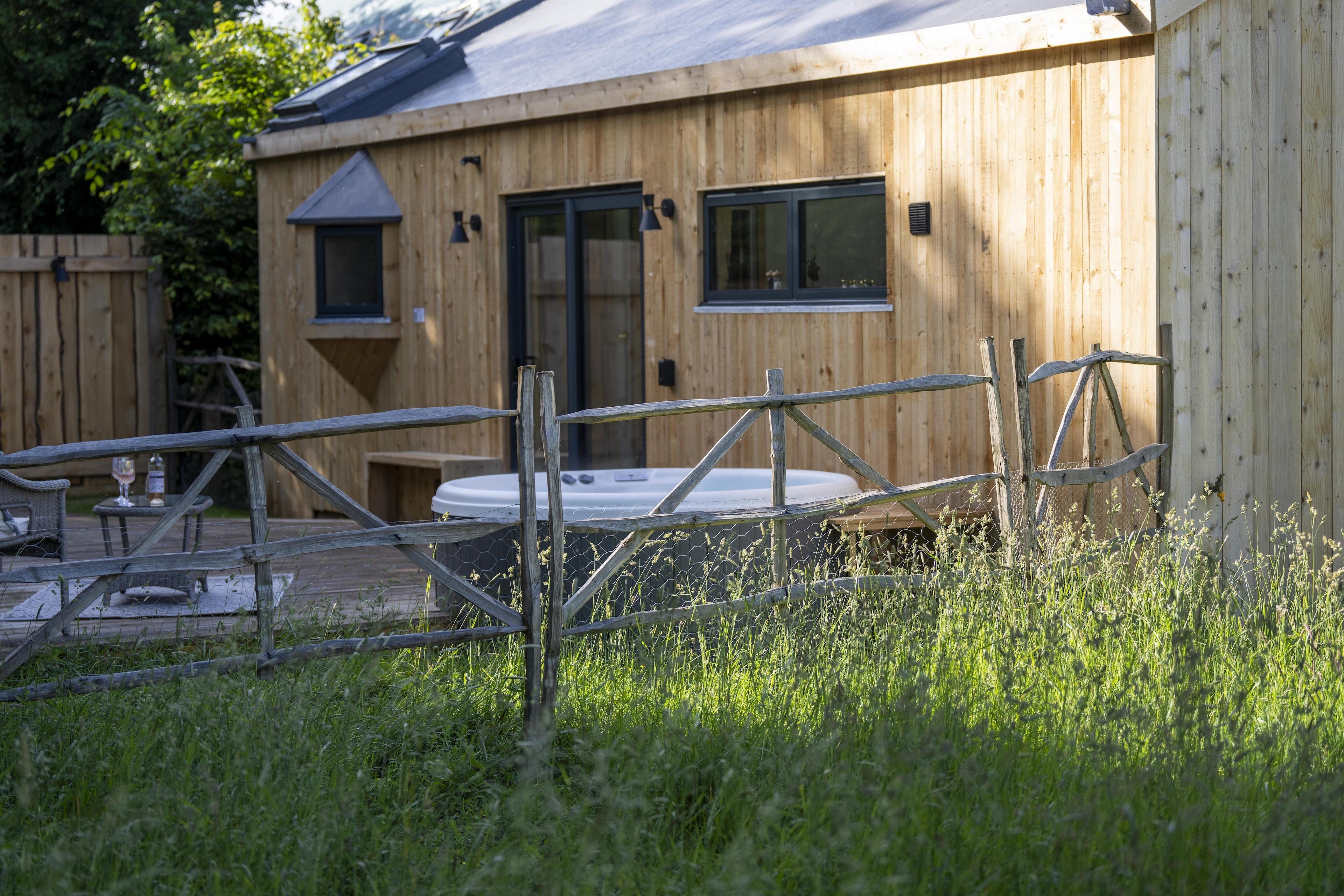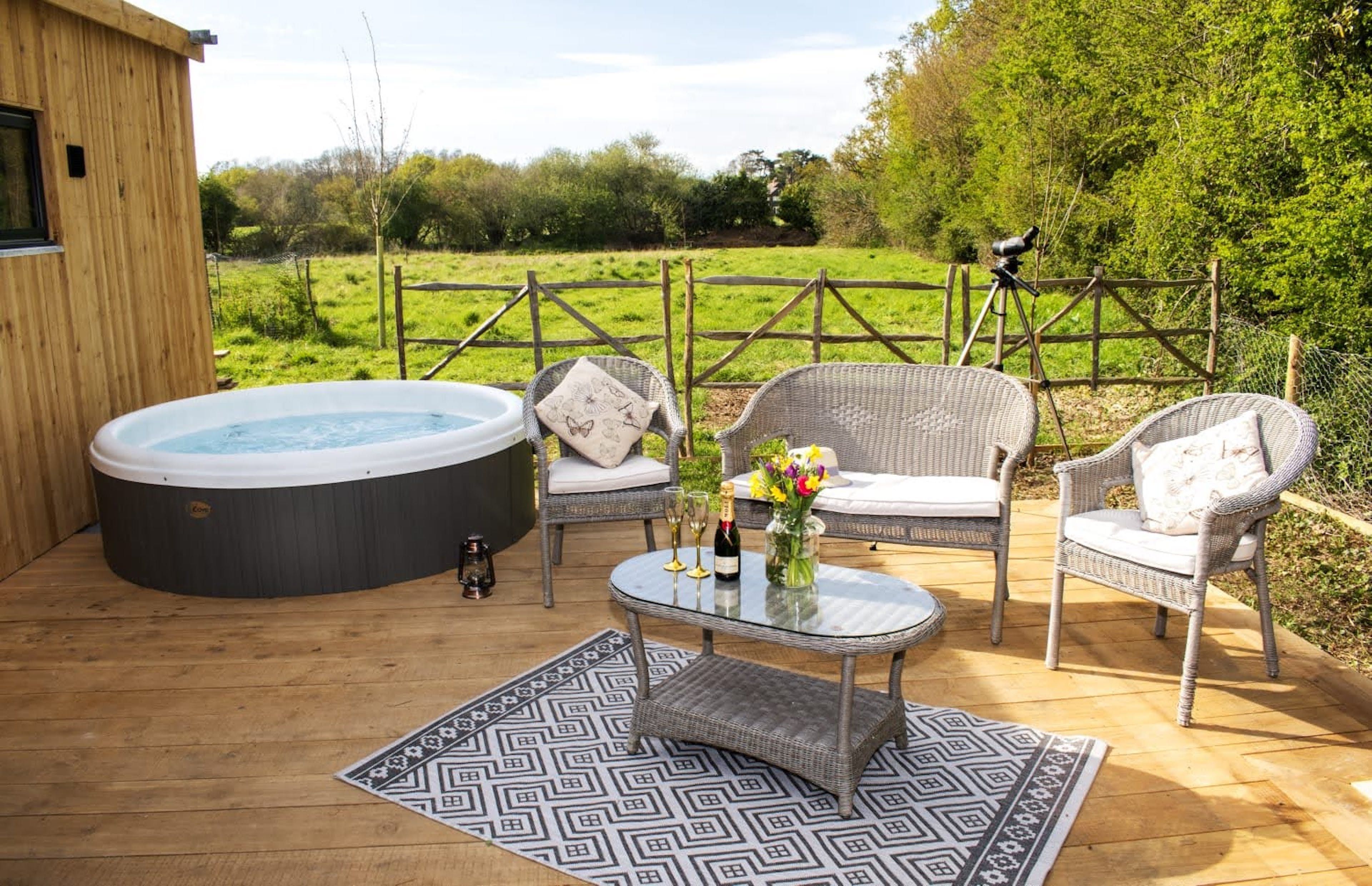 Sandwiched between the South Downs National Park and the Chichester Harbour AONB, it doesn’t get more away-from-it-all country glam than this little Sussex nook. It’s on the edge of a wildlife meadow, so sessions on the private terrace come with the soundtrack of birdsong and a gentle summer breeze. Spot wildlife from the warmth of the private hot tub on the deck, or perhaps from the swing seat, strung up on the porch.
