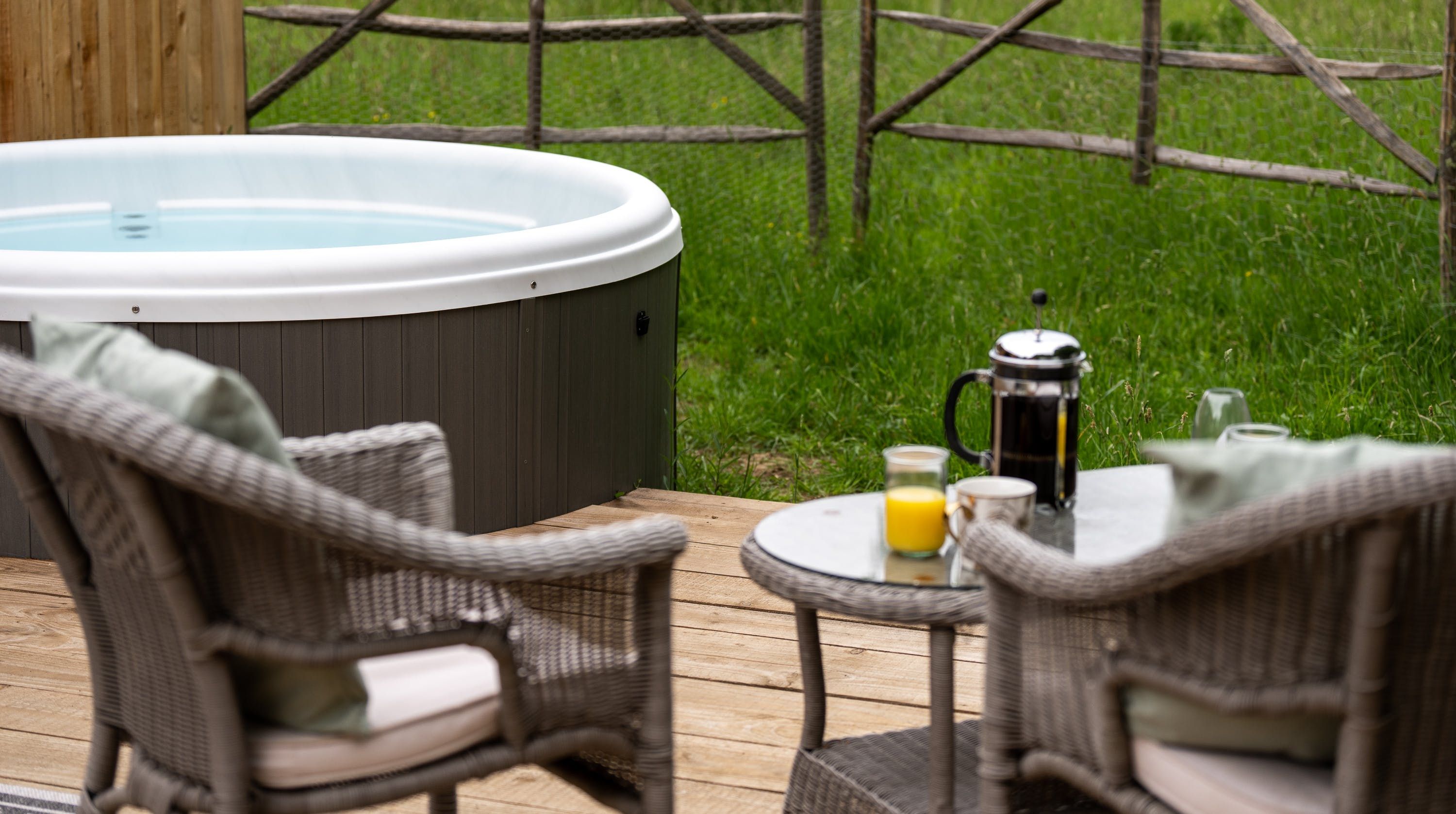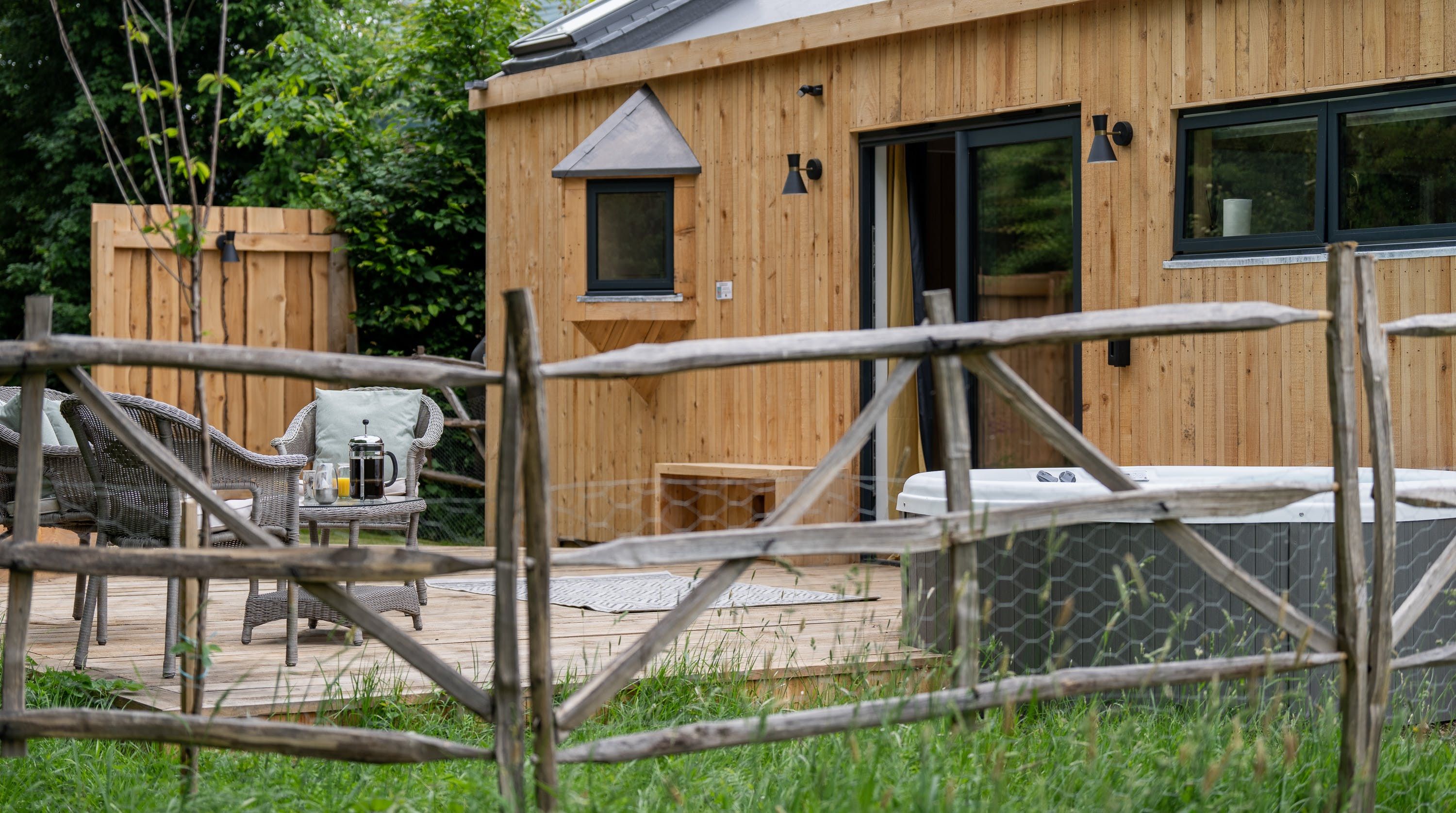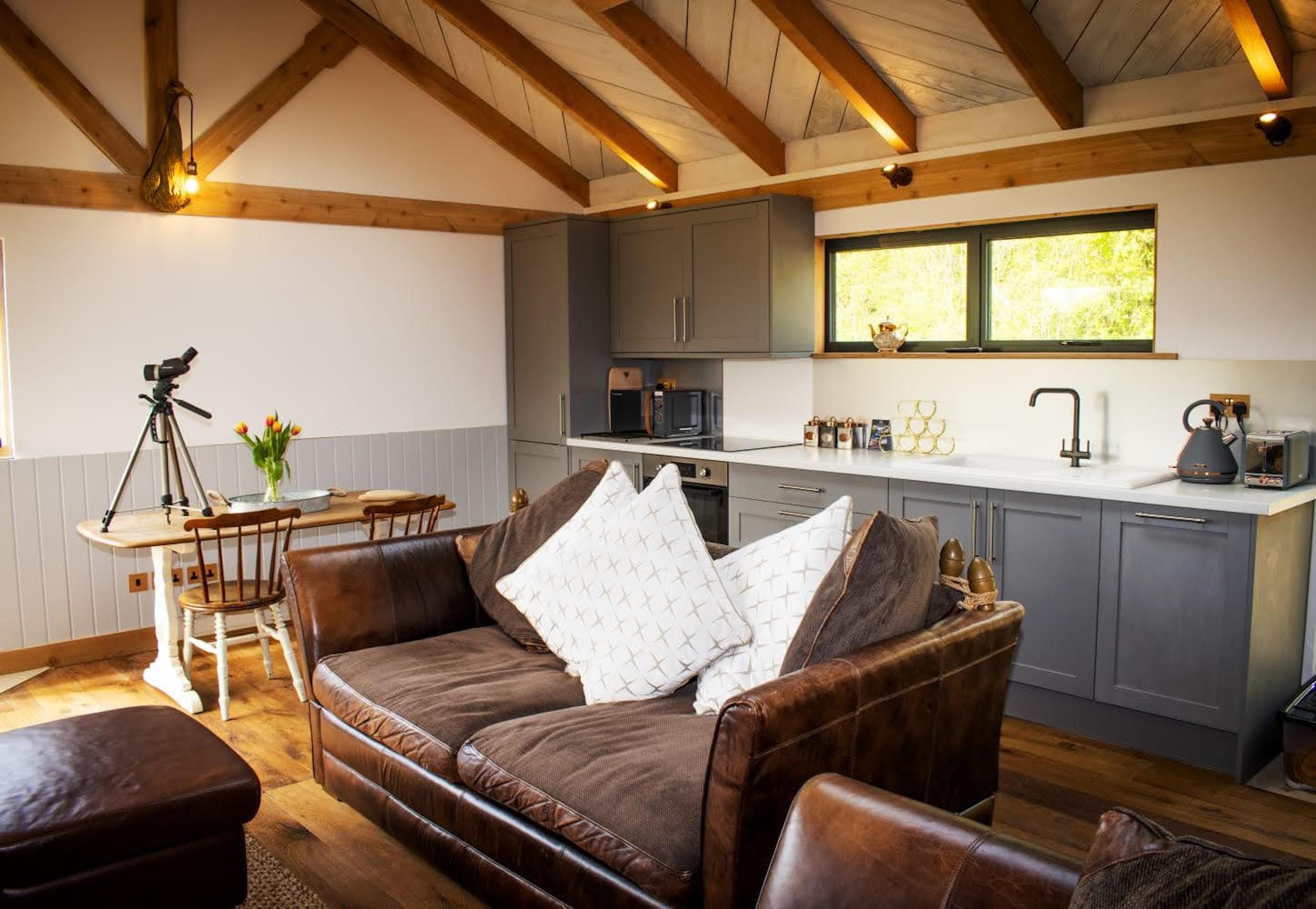 Sandwiched between the South Downs National Park and the Chichester Harbour AONB, it doesn’t get more away-from-it-all country glam than this little Sussex nook. It’s on the edge of a wildlife meadow, so sessions on the private terrace come with the soundtrack of birdsong and a gentle summer breeze. Spot wildlife from the warmth of the private hot tub on the deck, or perhaps from the swing seat, strung up on the porch.
