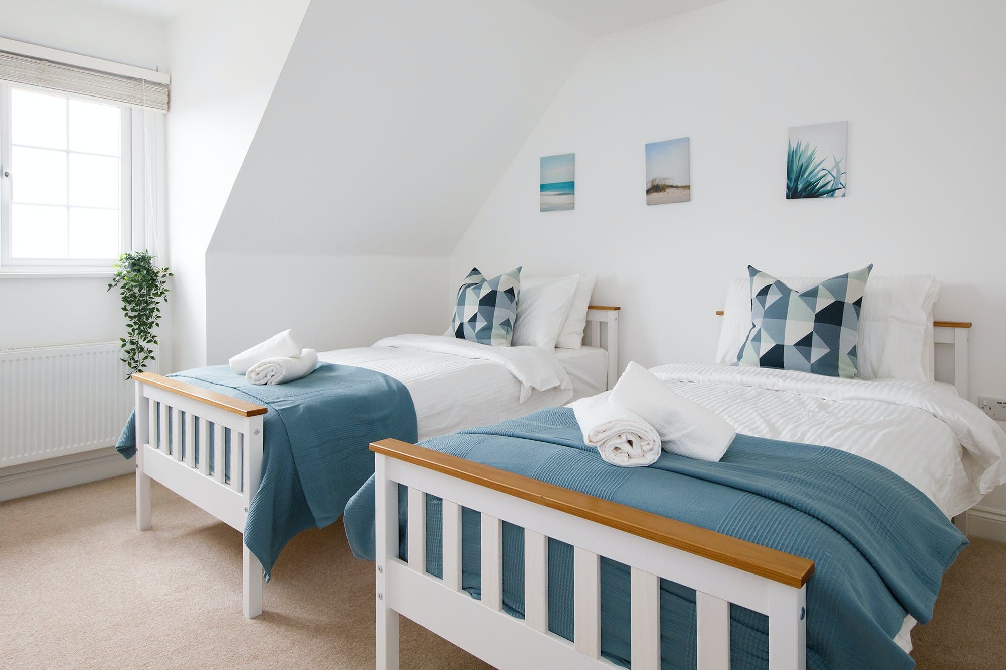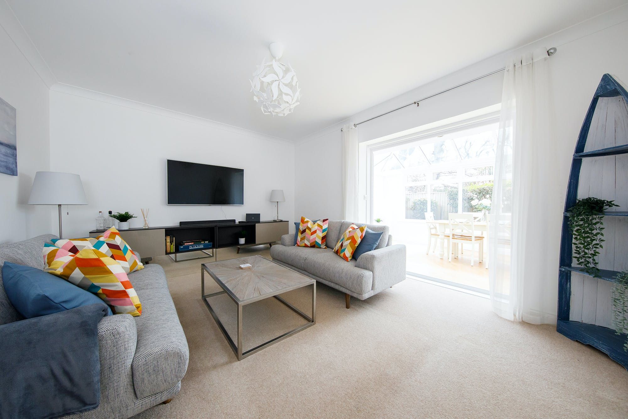 The walls are an instantly soothing shade of white, which are livened up by artwork in varying shades of blue and the odd house plant or two. This sense of brightness is also helped by the conservatory dining room, which acts as a suntrap on summer afternoons. You also have the option of heading out into the garden and enjoying balmy weather from the seating on the corner terrace — perhaps with dinner cooking away on the barbecue.