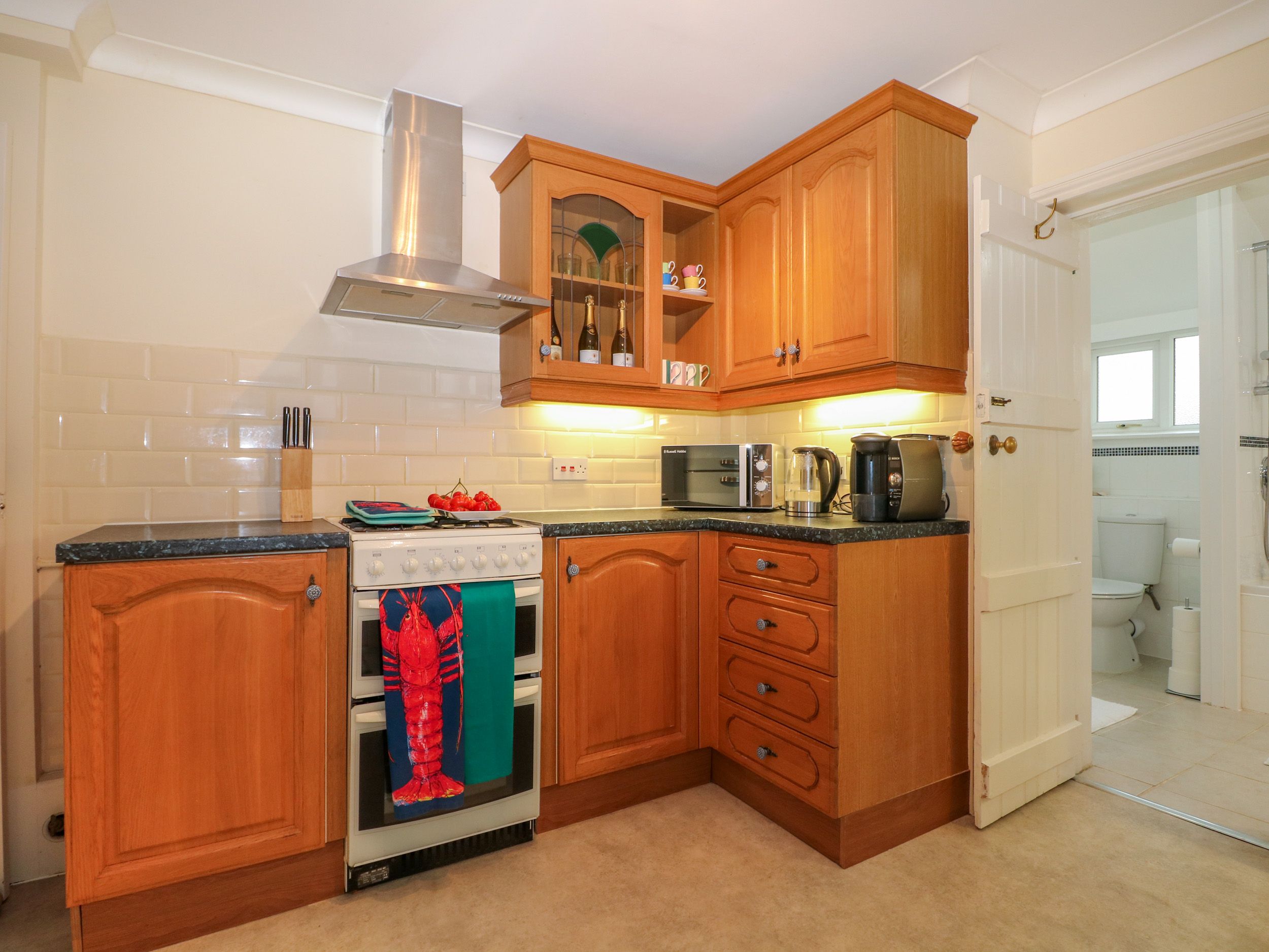 Amenities Gas central heating. Electric oven, gas hob, microwave, fridge/freezer and dishwasher. Smart TV and WiFi. Fuel and power inc. in rent. Bed linen and towels inc. in rent. Roadside parking available on a first-come-first-serve basis. Enclosed, rear garden with decking, barbecue and fire pit. One well-behaved dog welcome. Sorry, no smoking. Shop 0.6 miles, pub 0.2 miles and beach 0.8 miles. Note: There are two steps up into the garden, please take care