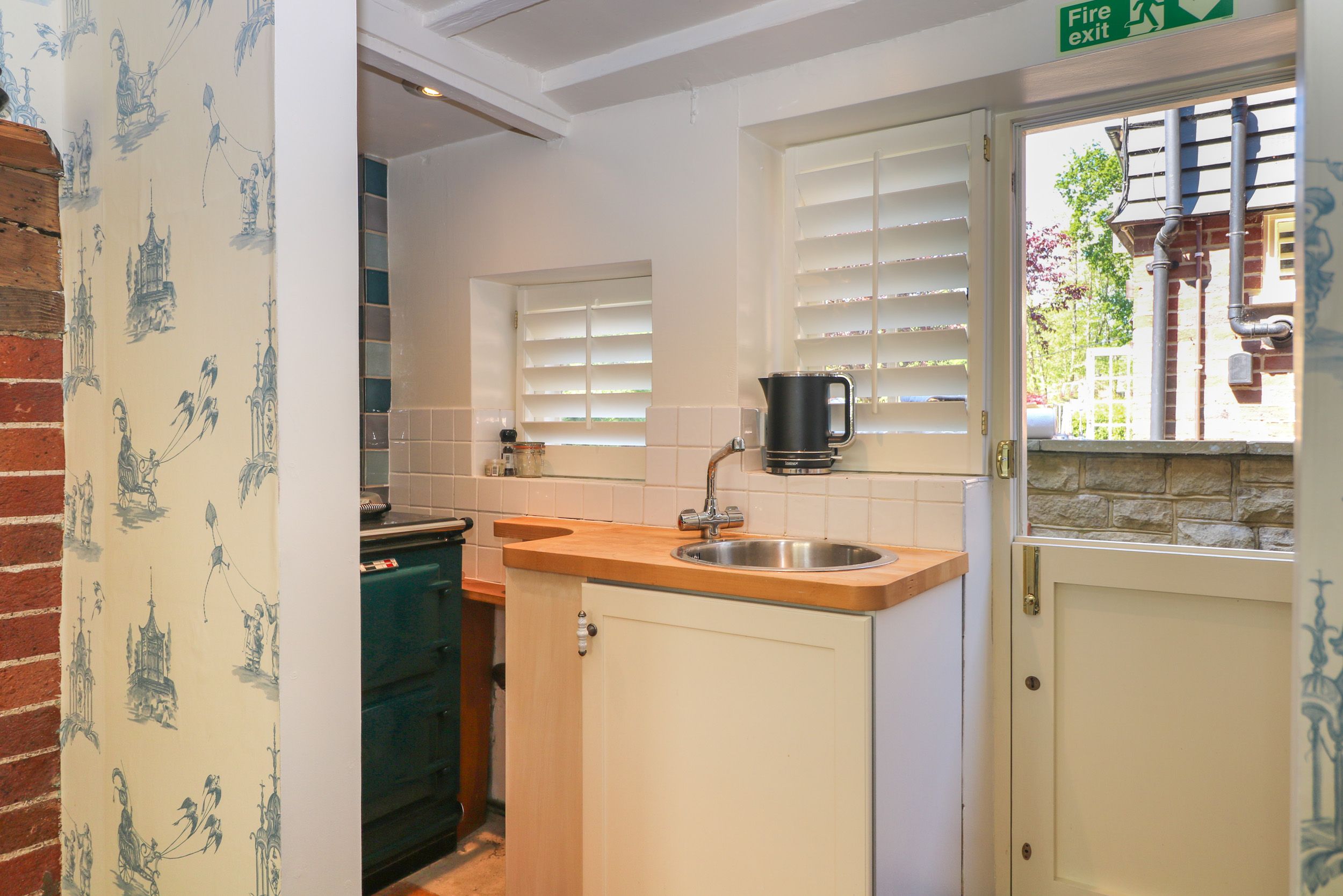 Holiday home Sandrock Springs, a cottage consists of a kitchen with Electric AGA, microwave, fridge, coffee machine, kettle, and toaster and a living room with TV and open fire. The bedroom is a king-size. There is a bathroom with bath, shower over, basin, and WC. Outside, there is a front non-enclosed patio and lawn with furniture. Off-road parking for one car. Shop and pub 0.1 miles. WiFi, fuel, power, bed linen, and towels included in the rent. Sorry, no smoking. Enjoy a memorable escape to Sussex at Sandrock Springs. Note: Steep stairs, not suitable for those with mobility issues.