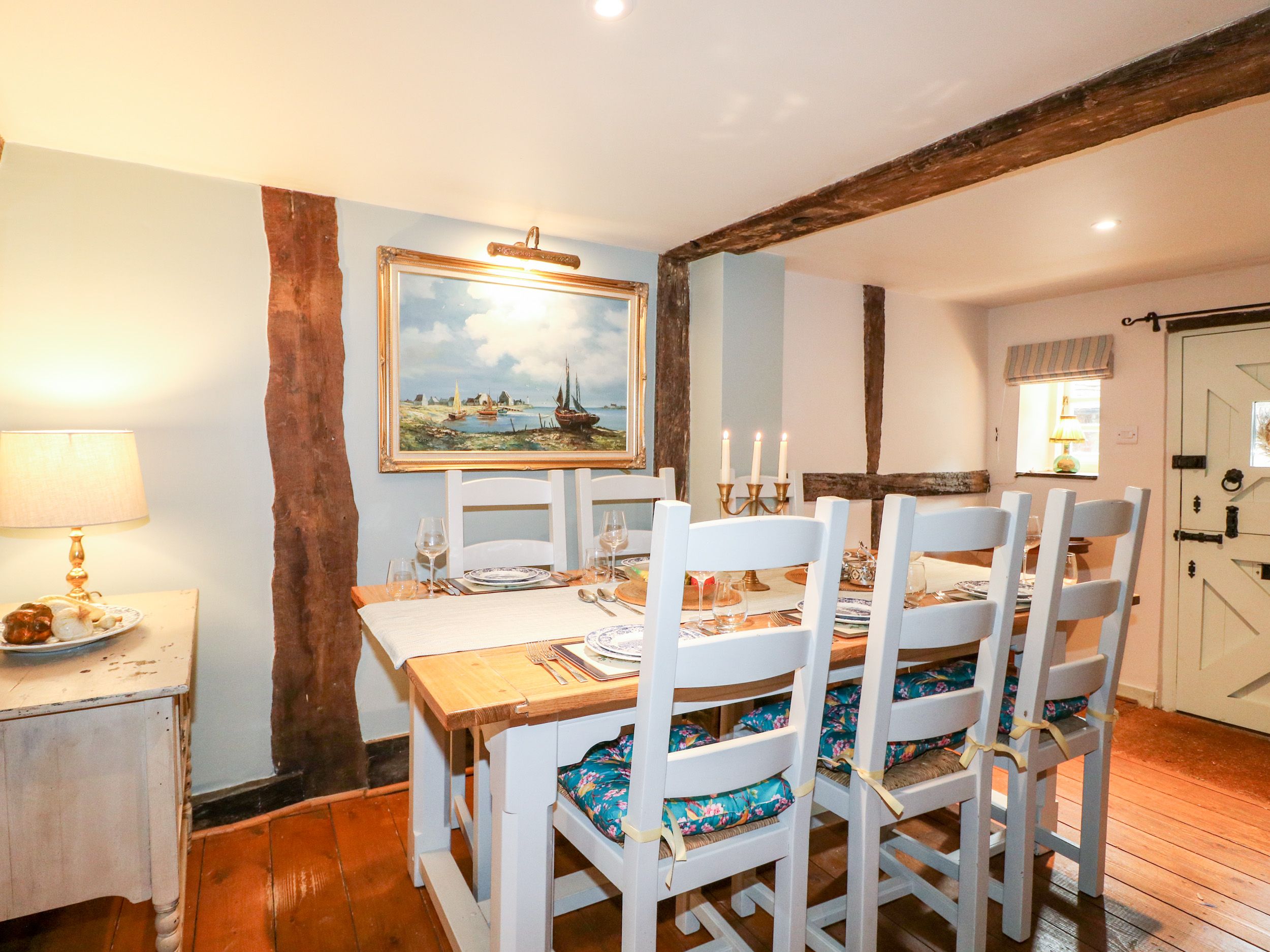 Holiday home Peppermint Cottage consists of; kitchen equipped with electric rangemaster oven and hob, microwave, fridge/freezer, washing machine and dishwasher, a dining hall with seating for six. Sitting room with 55' Sky Glass TV and AGA woodburning stove. The bedrooms consist of; king-size with en-suite shower room, a double and a bunk, along with a bathroom. There is a single trundle bed available in the bunk room, please make the owner aware if you need this making up. A cot and highchair are available. This property is; baby, child and dog friendly. Outside is a private, gated side courtyard with furniture, designated off-road parking for one. Please note, 2 well-behaved dogs welcome but sorry, no smoking. WiFi, fuel, power, linen and towels are all included. Note: There are a couple of stairs up to the sitting room. Note: There are low beams throughout, please take care. Note: The stairs are quite steep and may not be suitable for those with limited mobility