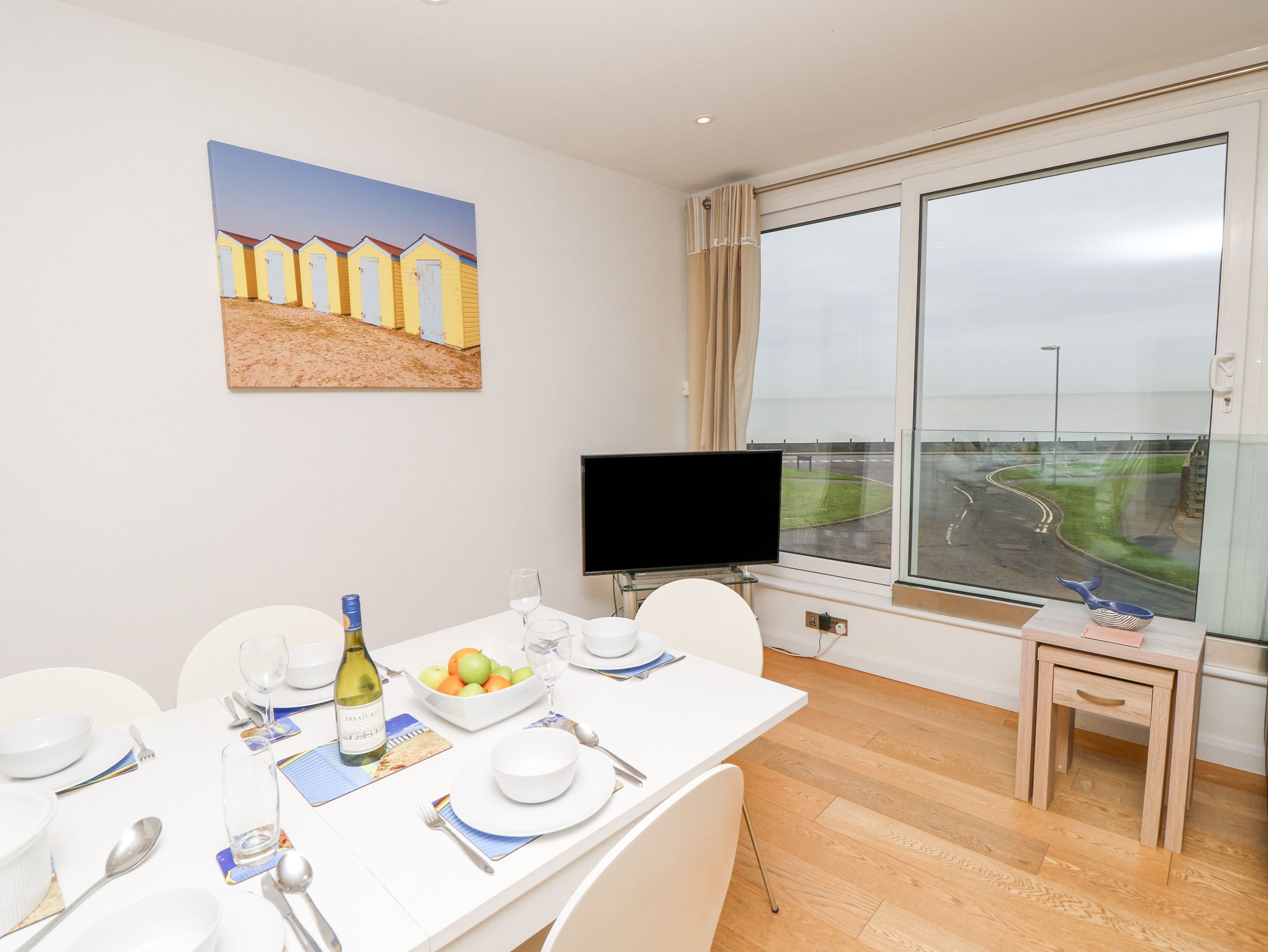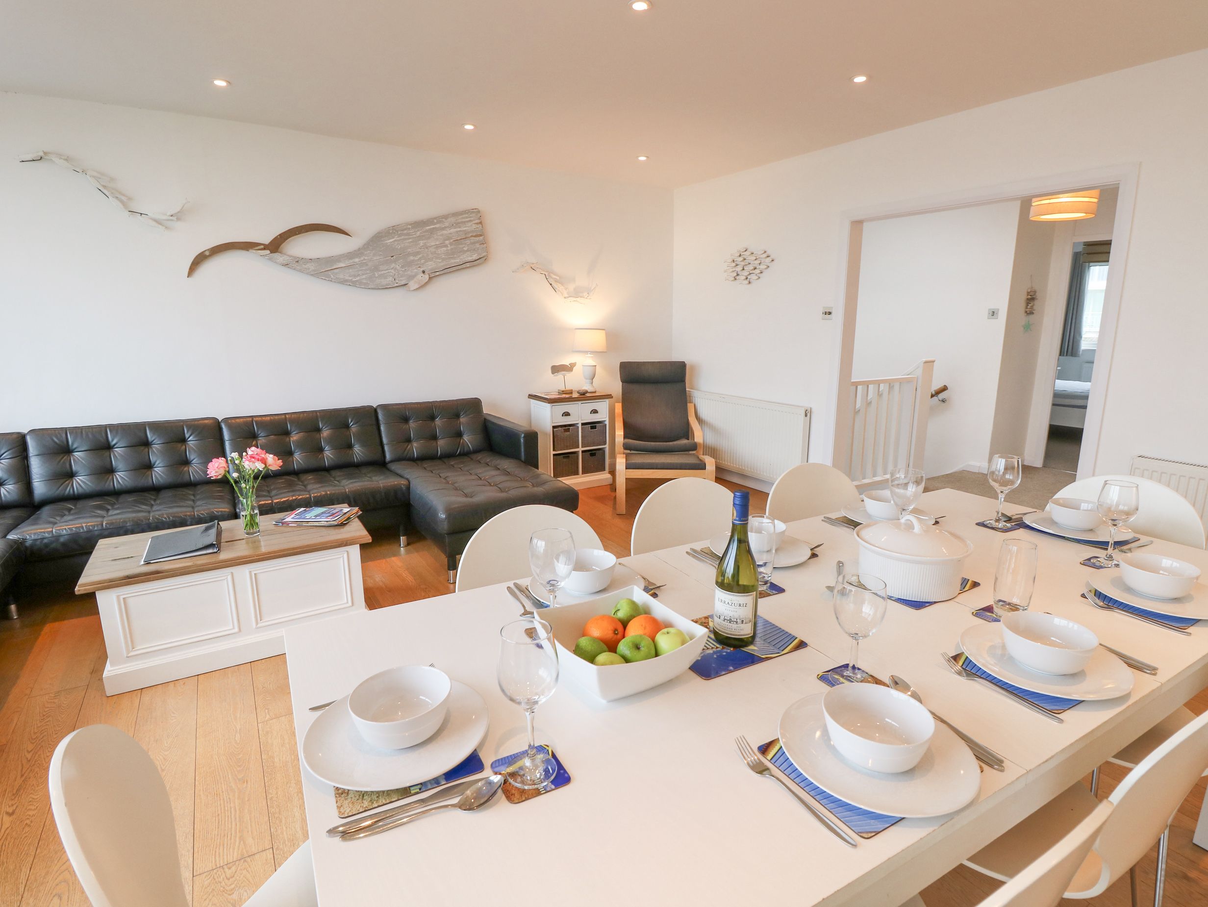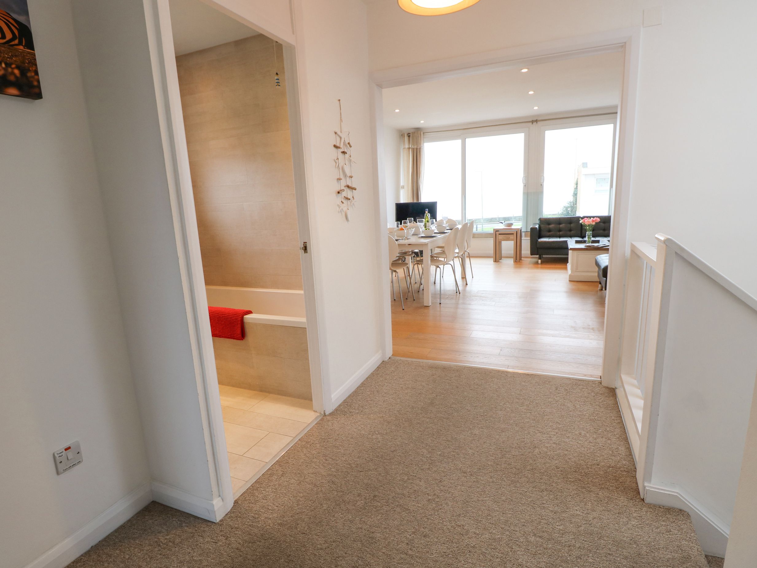 Please note: this property requires a minimum stay of 3 nights. Reverse level. Four bedrooms: 1 x king-size, 1 x ground-floor double, 1 x ground-floor twin, 1 x ground-floor bunk. Bathroom with bath, shower over, basin and WC. Ground-floor shower room with walk-in shower, basin and WC. First-floor kitchen. First-floor living/dining room