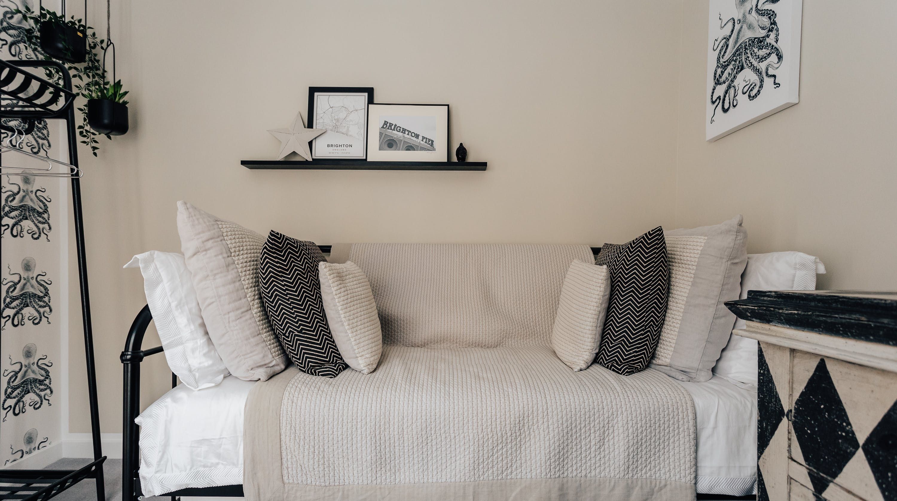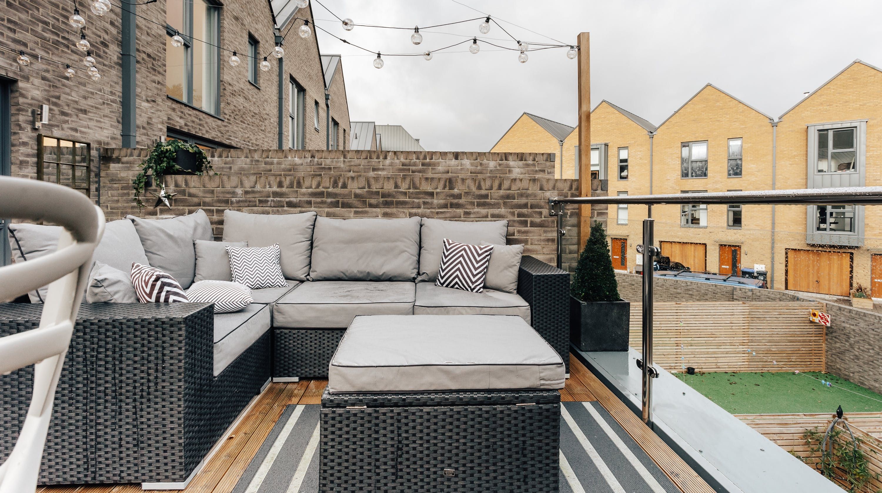 Although this three-storey home was only built in recent years, much of the interior design takes inspiration from retro trends. Many of the furnishings are mid-century in style and there are 1970s flourishes peppered about in the form of overhanging metallic lamps and swirly feature walls in the living rooms. That being said, the pristine white kitchen is as modern as they come, as are the bathrooms. Outside, guests get the benefit of not one, but two terraces, with space to cook, eat and relax. The location gives plenty of options for excursions in the great outdoors, too. It's possible to get on a footpath running alongside the River Adur in less than a minute on foot which is a great base for kayaking and paddleboarding, and leads to a 37-mile long track through the South Downs National Park. Shoreham Beach is a mere ten-minute walk via the high street which boasts an abundance of pubs, restaurants and shops, and the Brighton seaside only takes twenty-three minutes to reach in the car.