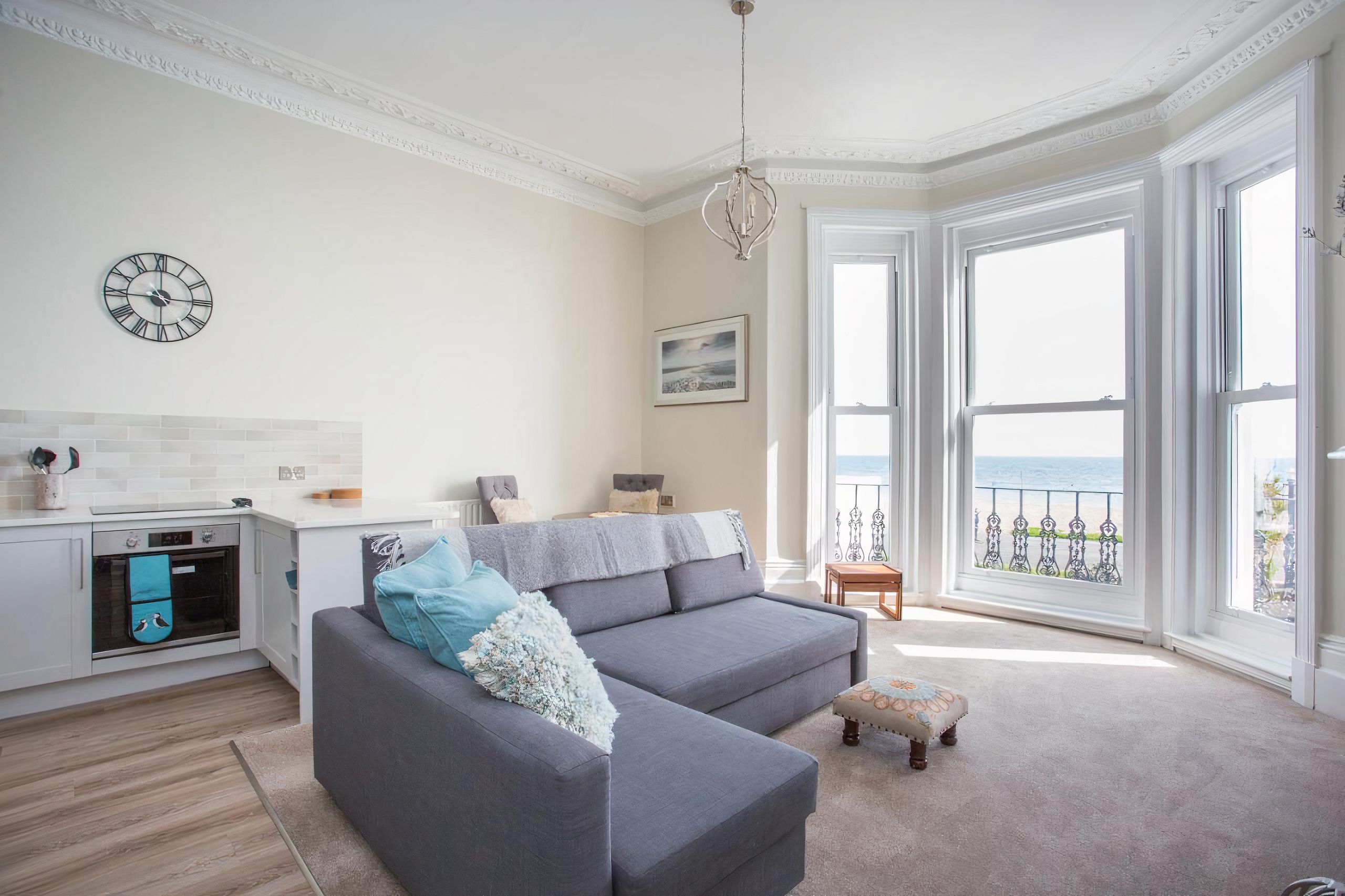 Set just opposite Worthing Beach, this period apartment certainly delivers on location. It's seafront living at its finest, and it's no surprise that the views here are second to none. The best spot to enjoy them is on the private balcony – especially when the sun rises – though the living area also boasts panoramas worth writing home about. While two guests will sleep on the sofa bed, with scenery like that to wake up to, we don't think they'll mind.