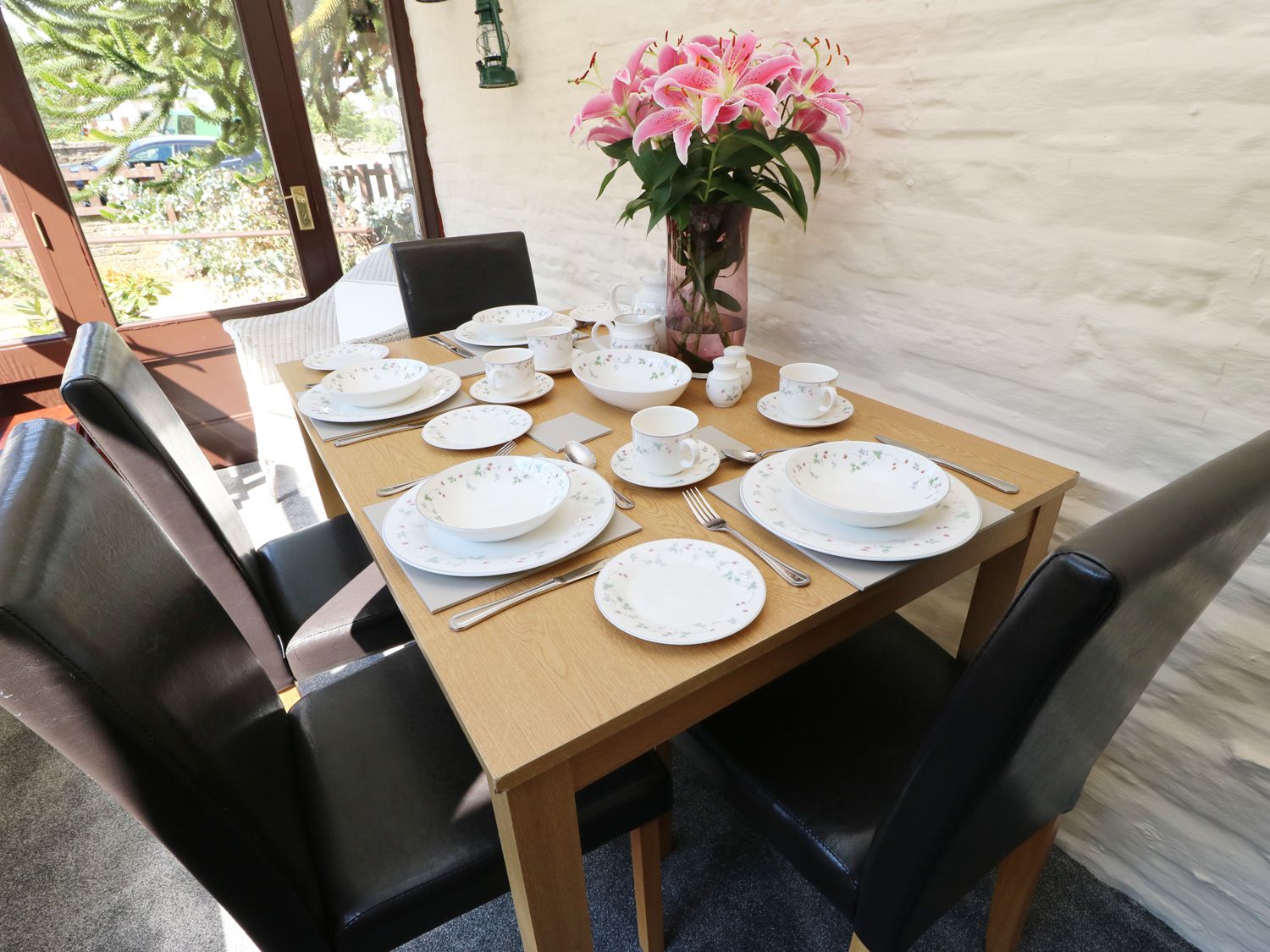 Amenities Gas central heating, open fire. Electric oven and hob, microwave, fridge/freezer, washing machine, dishwasher, 2 x TV with Freeview, DVD, WiFi. Fuel, power and starter pack inc. in rent. Bed linen and towels inc. in rent. Travel cot available. Off-road parking for one car. Enclosed garden with lawn and patio with furniture. Two well-behaved dogs welcome. Sorry, no smoking. Shop 1 mile, pub 15 minute walk. Note: Low headroom between sitting room and dining room. Note: Steps inside and outside of property.