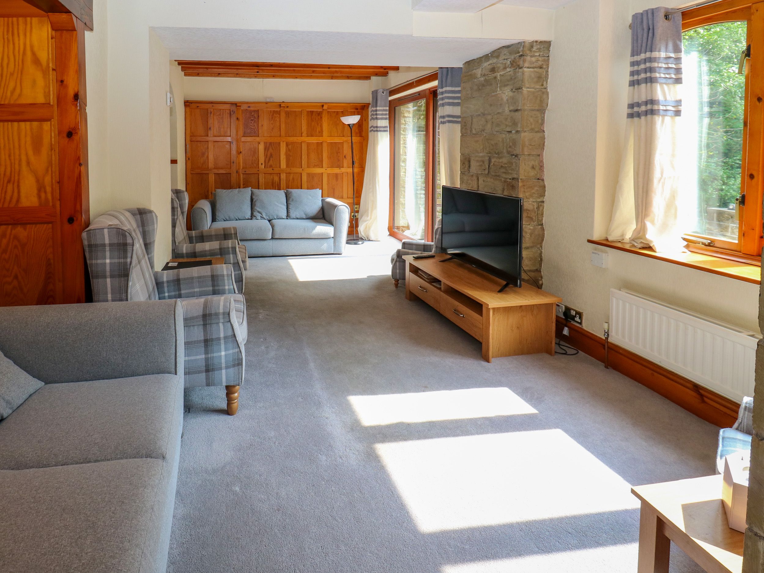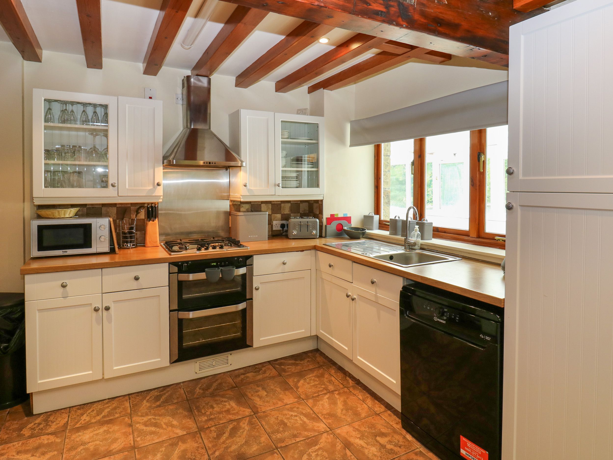 Gas central heating. Gas oven and hob, microwave, 2 x fridge, freezer, washing machine, kettle, toaster. Smart TV, WiFi, selection of books. Highchair and travel cot available. Off-road parking. Enclosed rear garden with patio, furniture and hot tub. Pets welcome. Sorry no smoking. Shop 0.6 miles, pub 0.1 mile. Note: The bunk room is only suitable for children