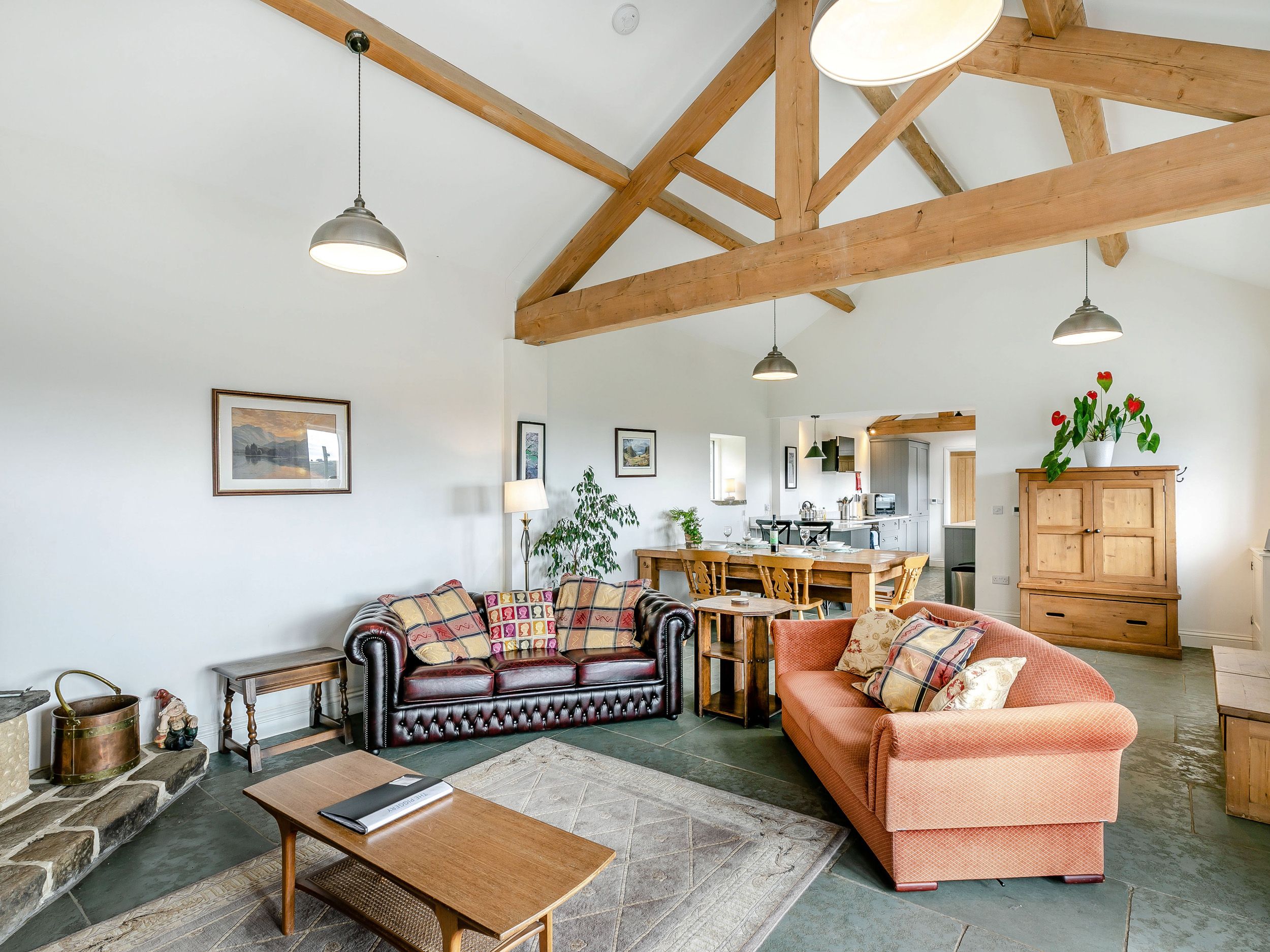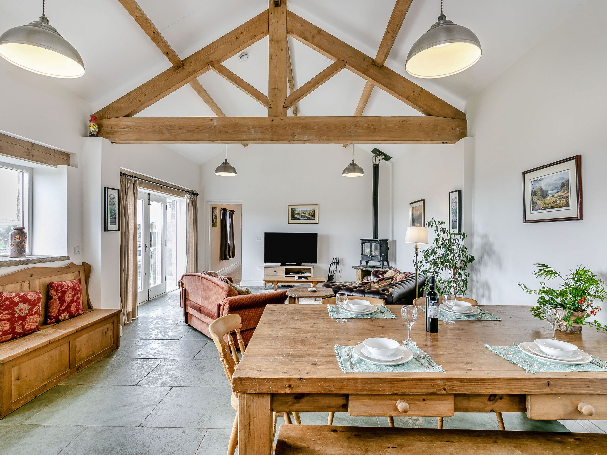 Accomodation Details All-ground-floor. One king-size double with en-suite walk-in shower, basin, heated towel rail and WC. Cloakroom with basin and WC. Open-plan living space with kitchen, dining area and sitting area with woodburning stove. Utility. Ideal as a bridal or honeymoon suite.
