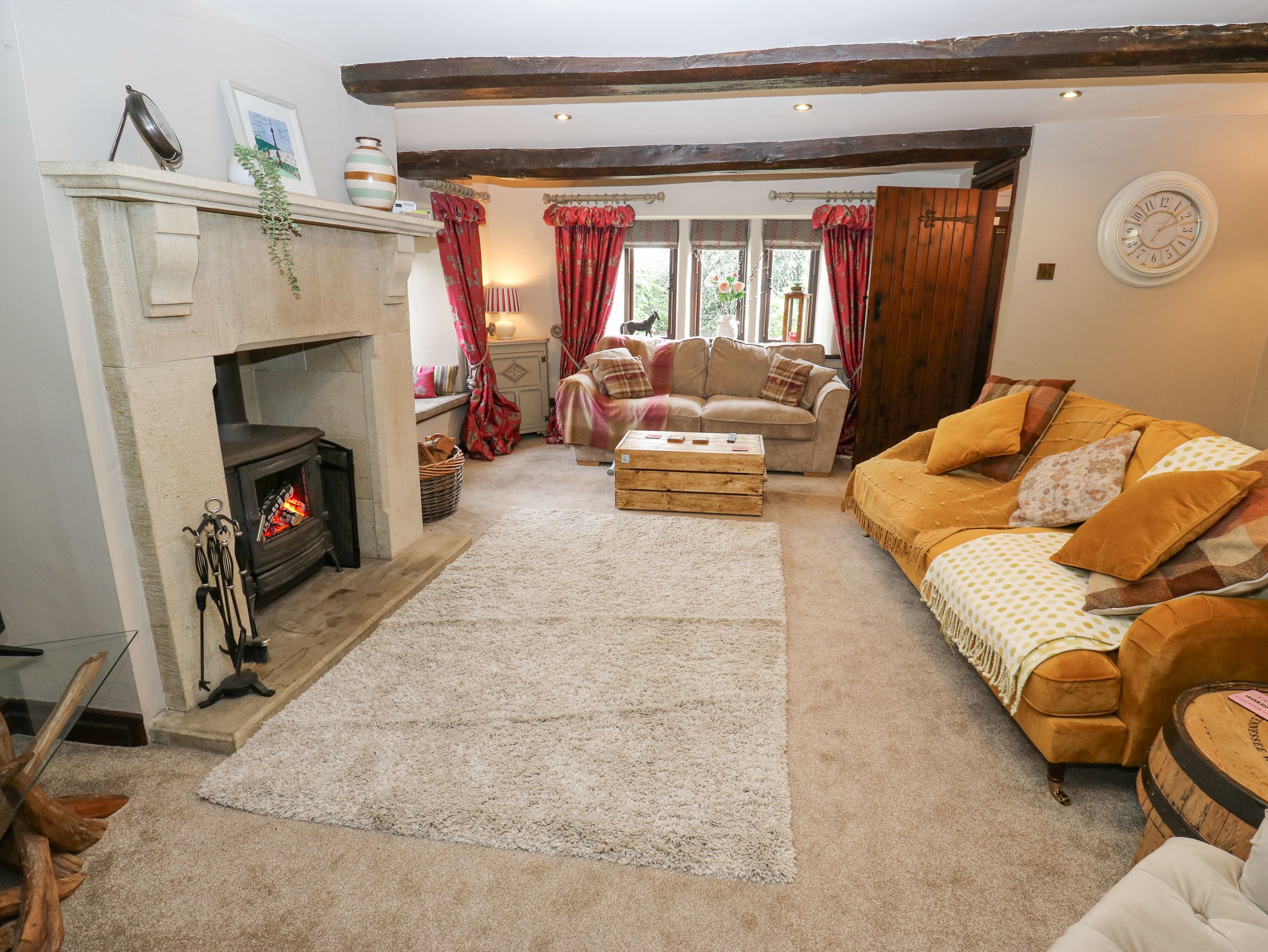 Amenities Gas central heating. AGA, microwave, fridge, washing mahcine, kettle, toaster, coffee maker. 2 x Smart TV and WiFi. Fuel, power and starter pack for woodburning stove inc. in rent. Bed linen and towels inc. in rent. Off-road parking for 3 cars. Enclosed rear garden with lawn, patio, furniture and summerhouse. Two well behaved pets welcome. No smoking. Shop and pub 0.3 miles. Note: There a low hanging exposed beams in the property, please take care.