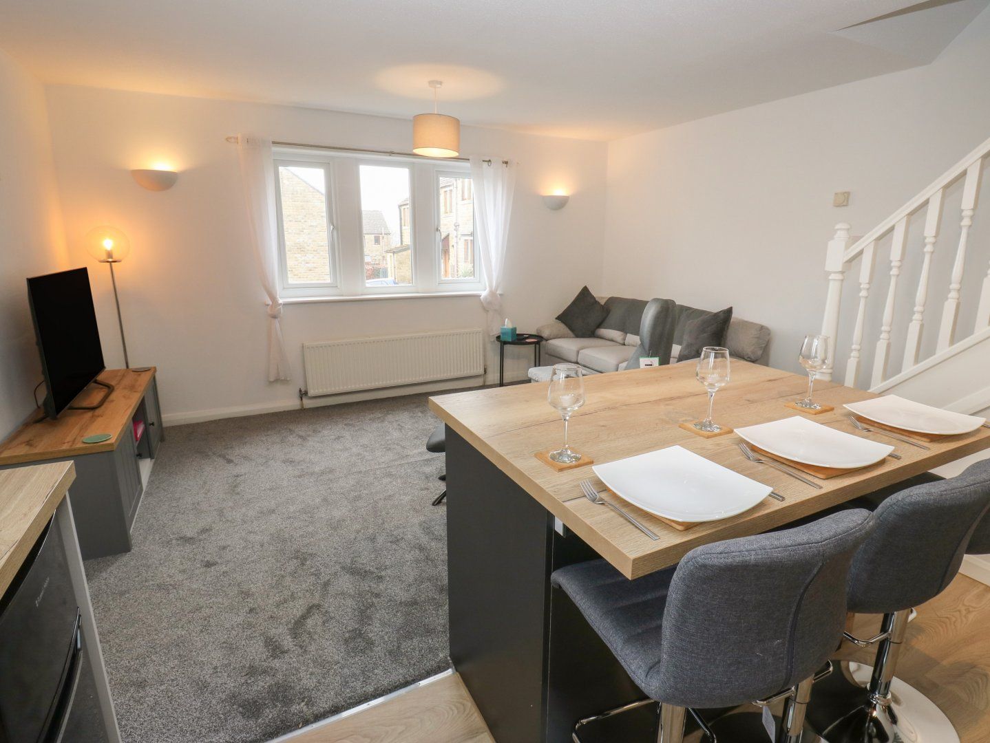 Amenities Gas central heating. Electric oven, gas hob, microwave, fridge with ice box, dishwasher, washing machine. Smart TV, WiFi. Fuel and power inc. in rent. Bed linen and towels inc. in rent. Off-road parking for 1 car. Enclosed front garden with lawn, patio, and furniture. Sorry, no pets and no smoking. Shop 0.4 miles, pub 0.2 miles, Boshaw Whams Reservoir 0.9 miles, River Ribble 1.4 miles. Note: There are steps up to the home; please take care