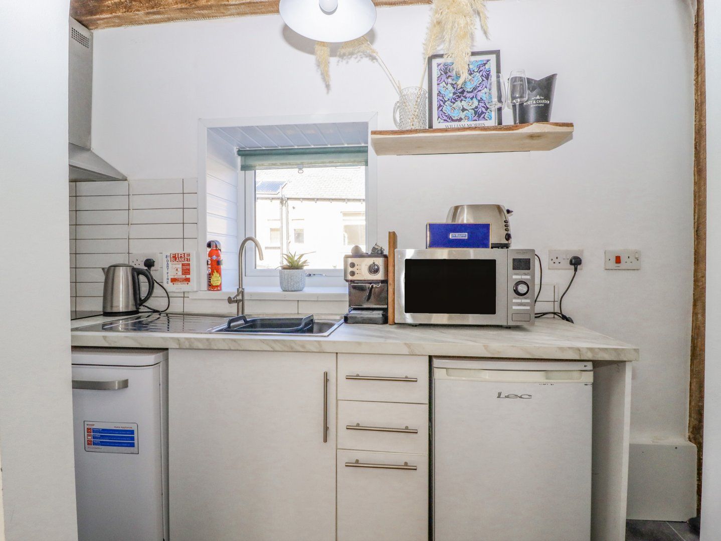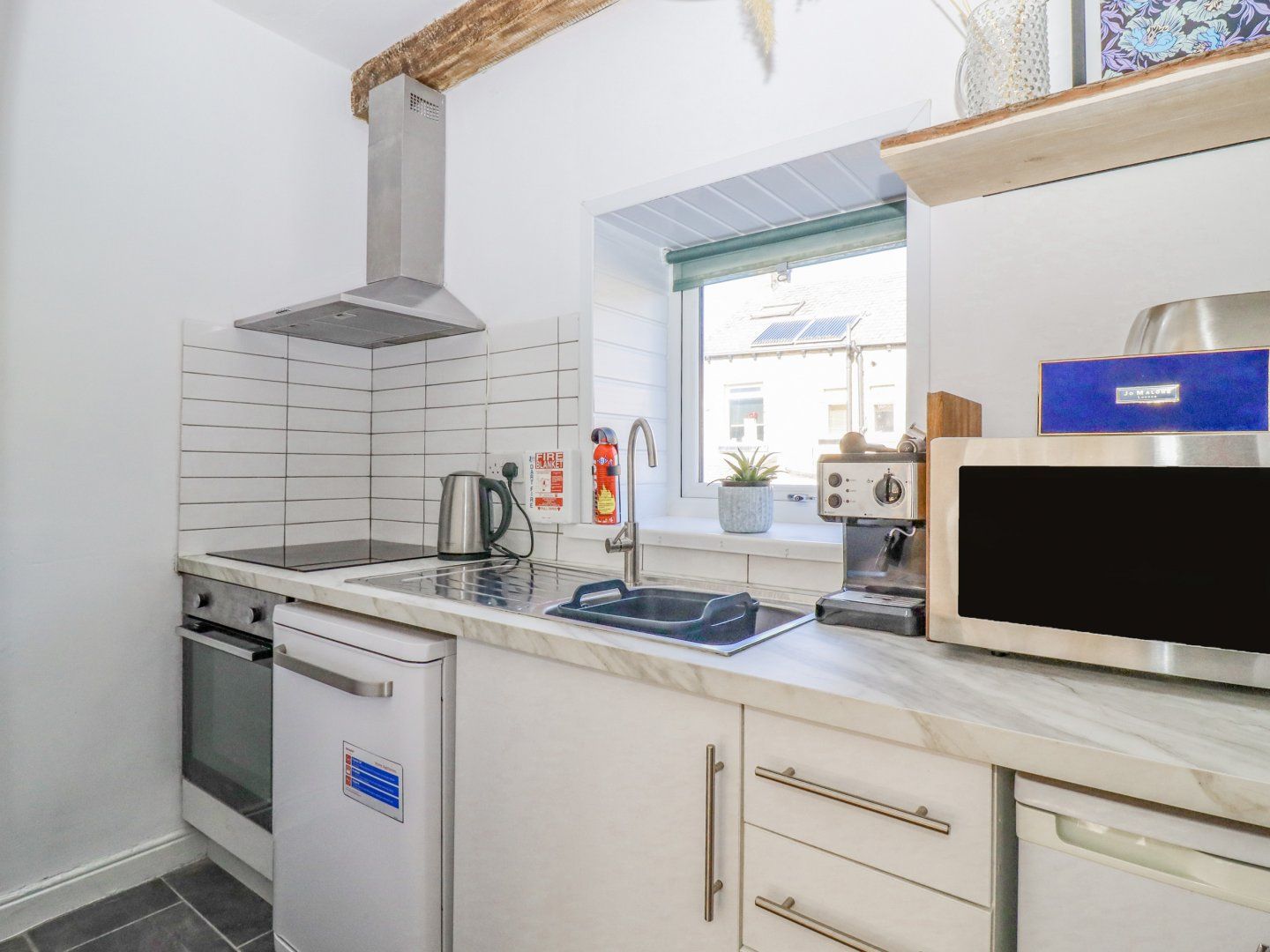 Central heating. Electric oven and hob, microwave, fridge, dishwasher. Smart TV, WiFi. Fuel, power, and starter pack for woodburning stove inc. in rent. Bed linen and towels inc. in rent. Roadside parking for 1 car. Front patio area with bistro furniture. One well behaved pet welcome. Sorry no smoking. Shop and pub 0.1 miles, River Calder 1.2 miles. Note: The patio area is not enclosed