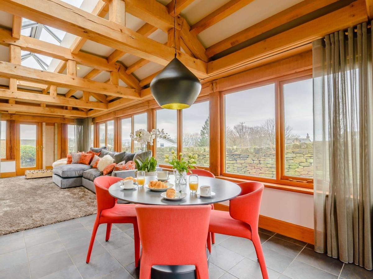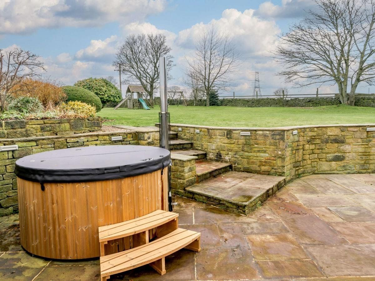 This luxurious farmhouse with a hot tub sits amidst the scenic surroundings of the West Yorkshire countryside.