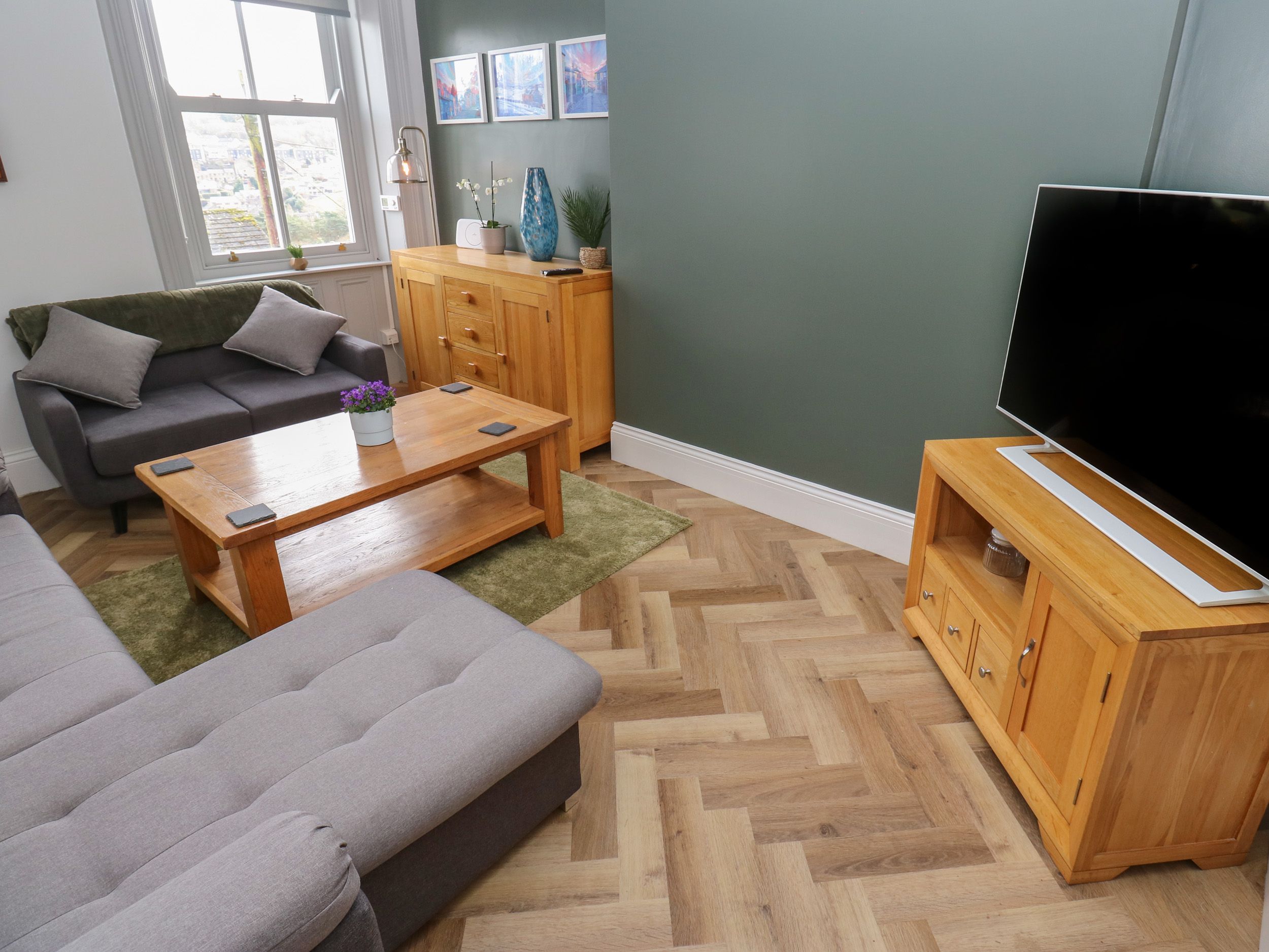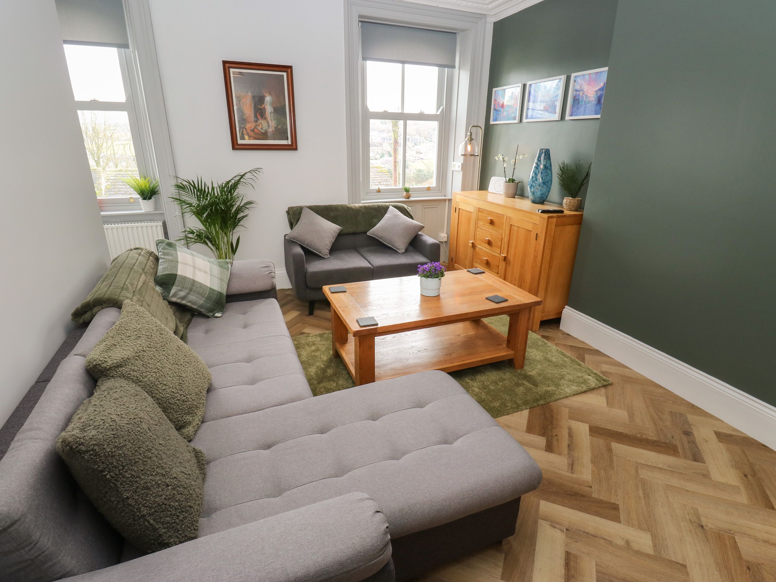 69 Main Street is a triplex apartment in central Haworth, West Yorkshire. It comprises three bedrooms: a king-size on the third floor, a double on the second floor, and a bunk bed on the second floor. There's a shower room on the second floor and a cloakroom on the first floor. The first floor also hosts a kitchen/diner and a sitting room. Amenities include electric central heating, electric oven/hob, microwave, fridge, dishwasher, and kettle. Entertainment options include three Smart TVs and WiFi. Fuel, power, bed linen and towels are all included. A highchair is available. Parking options include roadside parking and a nearby public car park (approximately 4GBP/day). The property also features an enclosed rear garden with patio and furniture. Sorry no smoking. Two well-behaved pets are welcome. Nearby amenities include a shop (0.3 miles away) and a pub (0.1 mile away). Check-in is from 3 pm, and check-out is by 10am. A stylish home in a perfect holiday location, choose 69 Main Street. Please note this property will only accept a Four night minimum booking over Christmas Day.