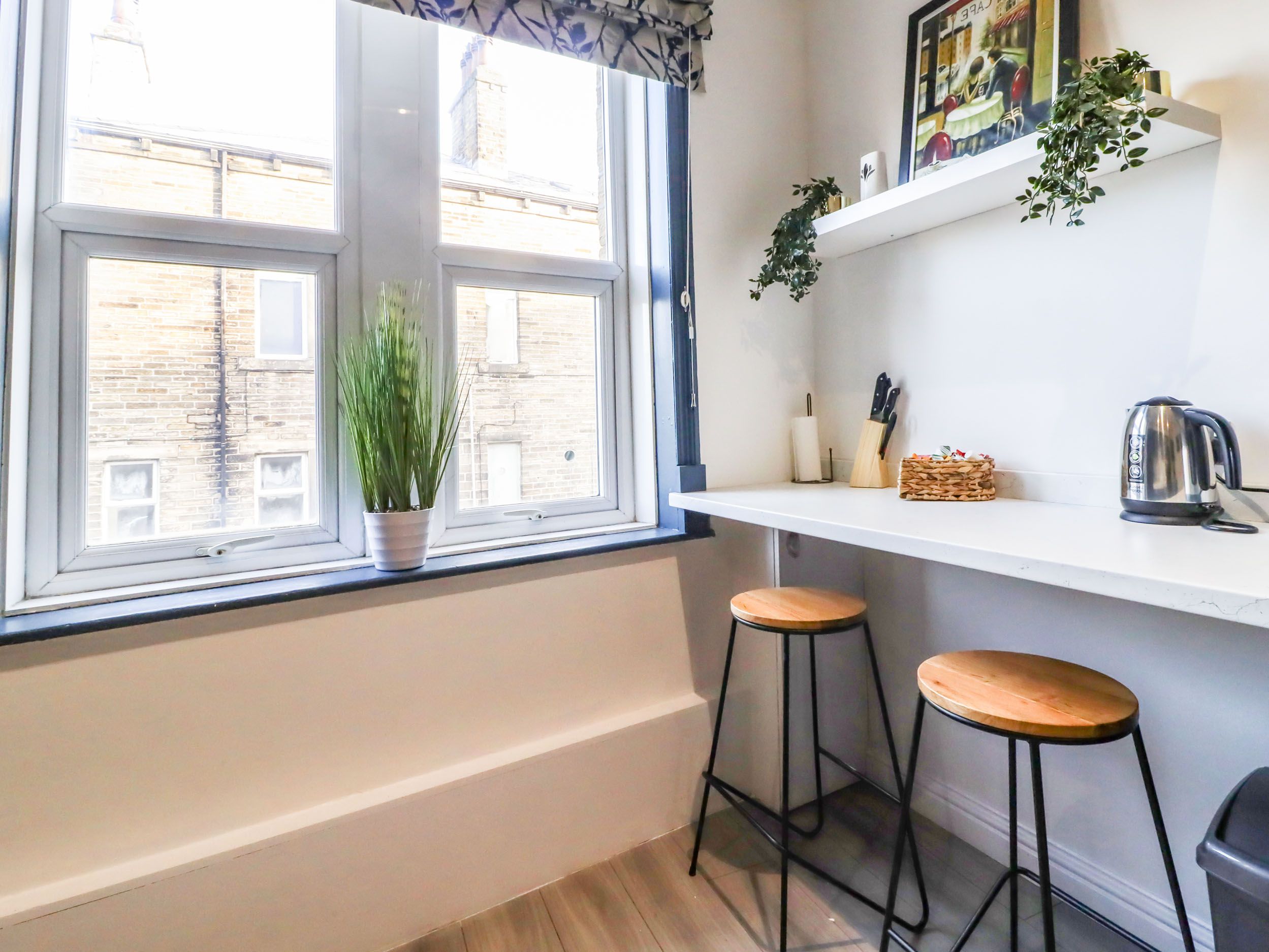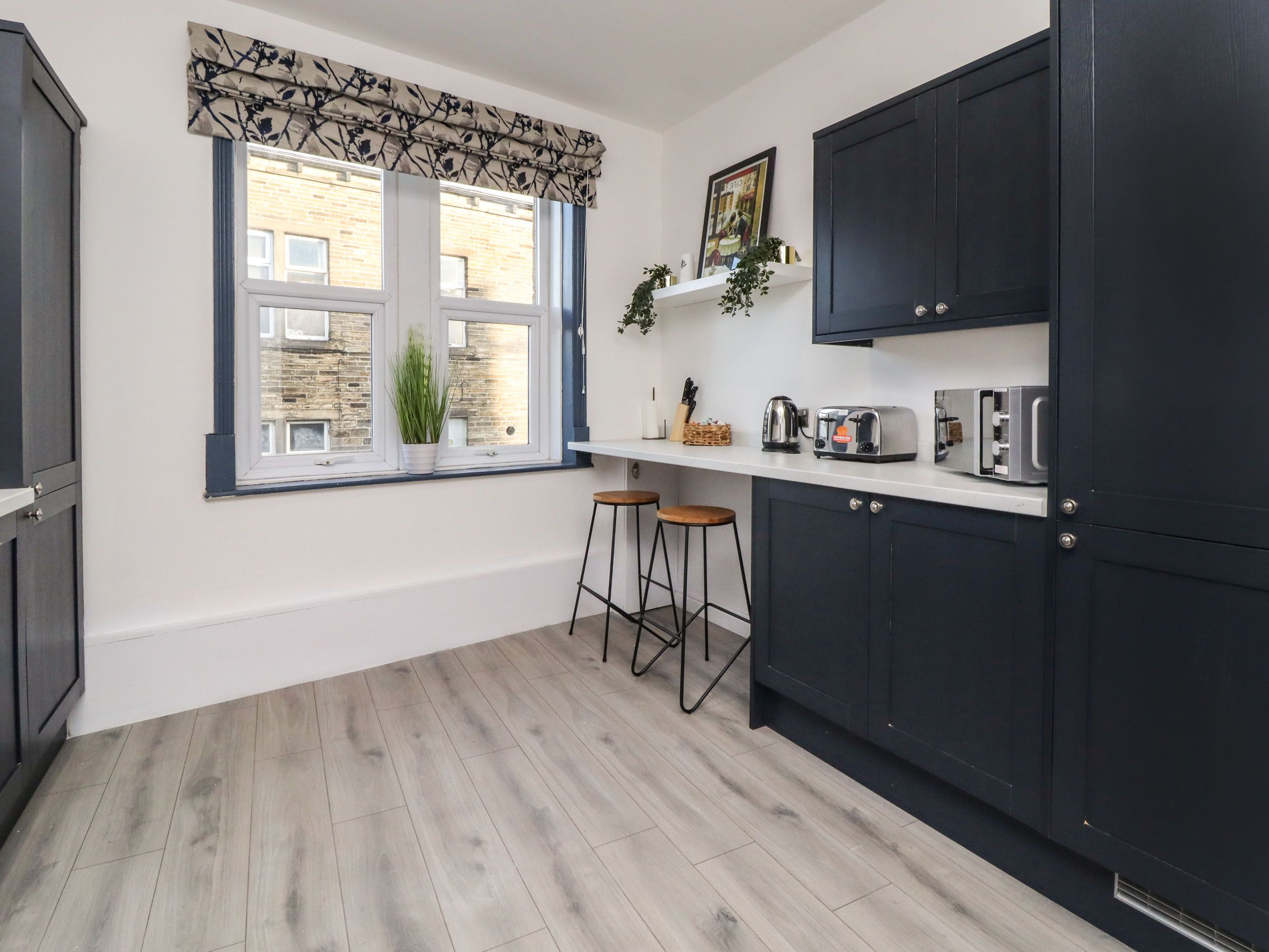 Holiday home The living areas in this first-floor duplex apartment consist of a first-floor kitchen with an electric oven, halogen hob, microwave, fridge/freezer, washing machine, and dishwasher, and a first-floor living/dining room with TV and electric fire. The bedrooms are set on the second floor and consist of a double and two singles, along with a bathroom and a sofa bed in the living room. Outside there is ample roadside parking. You'll find a shop, pub and Bridgehouse Beck in 0.1 miles. WiFi, fuel, power, bed linen and towels are all included in the price. This is a smoke-free property. Mill Hey is set centrally to enjoy a getaway to West Yorkshire. Note: There are steps to the exterior. Note: The property is accessed via a flight of stairs. Note: The property is located over a launderette. Note: The ceilings are sloped in the bedrooms.