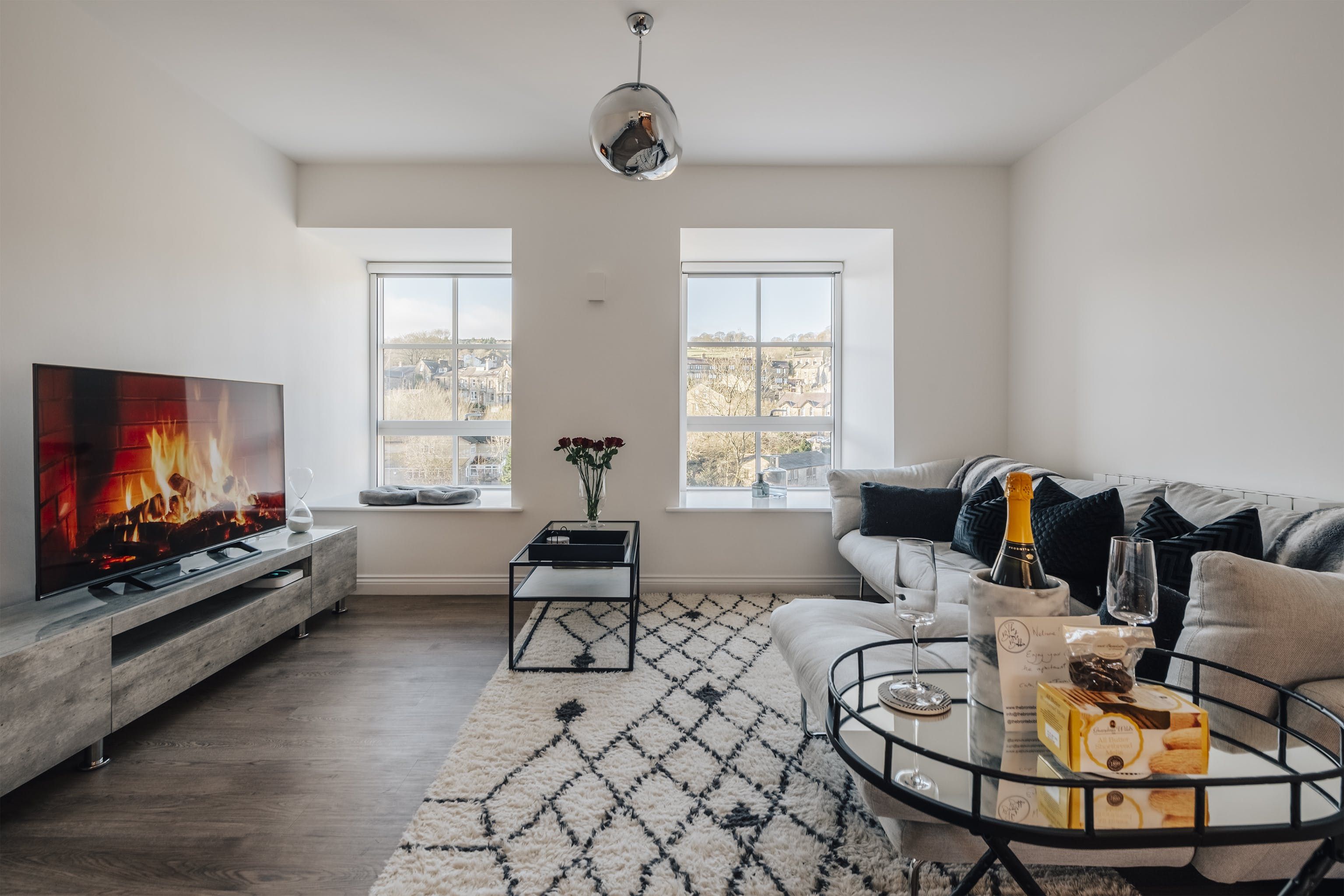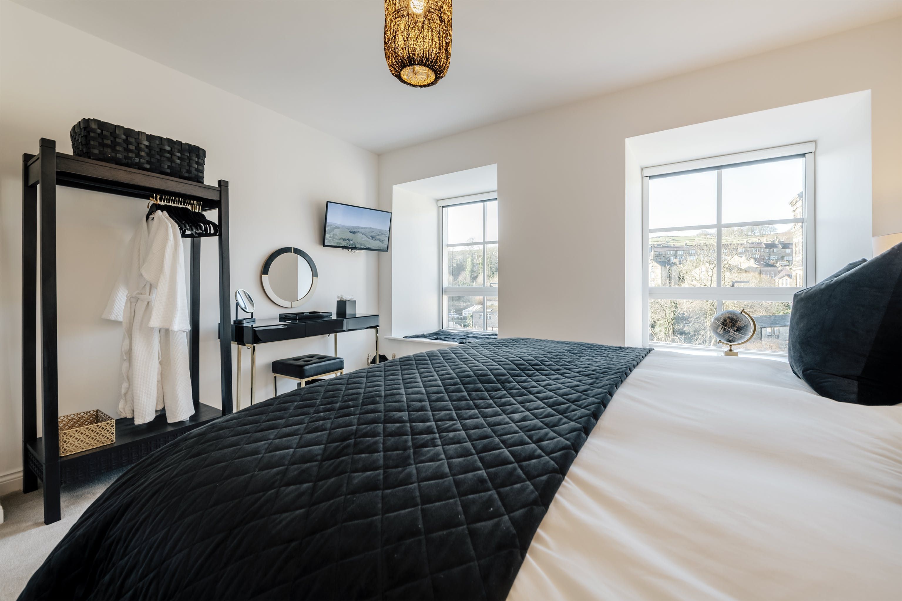 So new it sparkles, this luxurious home is on the top floor of a freshly converted textile mill. With views across Haworth and beyond, it's a stunning conversion with crisp, modern lines juxtaposing with period features. Inside, it's a warm and comfortable space – and what could be more welcoming than a complimentary bottle of bubbly and some chocolate truffles when you arrive? The living room has a huge, supremely comfortable sofa with a contemporary dining table and an open-plan kitchen with everything you could need for cooking at home. Down the hall, the bedroom is smart and serene, with a plush super-king bed to sink into. Here you'll be just by the river, a five-minute walk from the centre of the village. Jump on a vintage steam train, visit the popular Bronte Parsonage Museum or just head off for a country walk followed by lunch in one of the nearby eateries.
