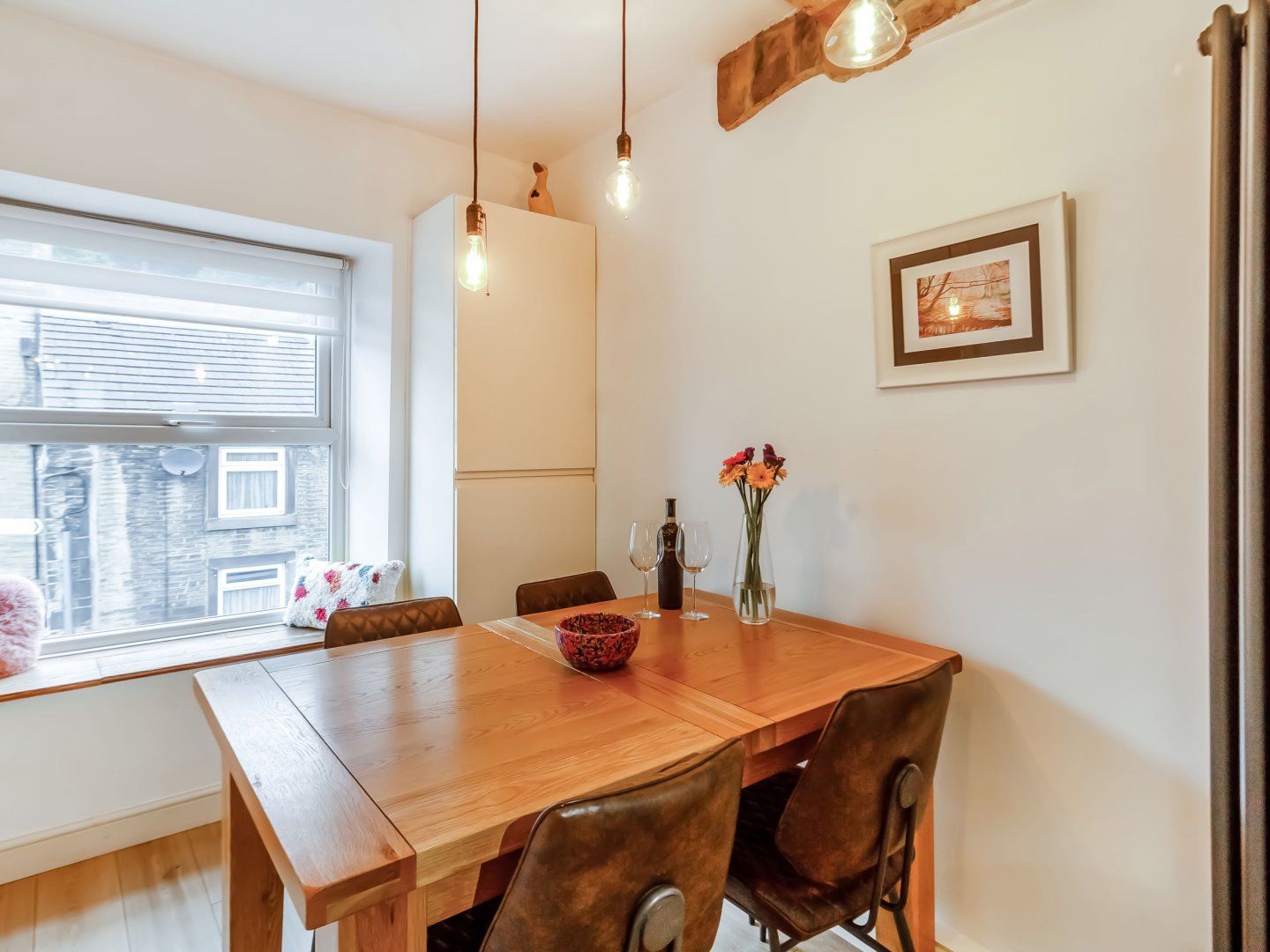 Holiday home The open-plan living space includes a kitchen with electric oven and hob, microwave, fridge freezer, Tassimo machine, dishwasher, a dining area for two and a Smart TV with Netflix. There is a king-size bedroom featuring a hand made bed and shower room. To the outside is roadside parking on a first come, first served basis. Within 0.2 miles there is a shop and within 0.1 miles there is a pub. This property does not accept pets or smoking. WiFi, fuel, power, bed linen and towels are included in price. Up Top Cottage is a splendid escape to this bustling Yorkshire town. Note: This property can be booked with Over Under Cottage, ref 1038866