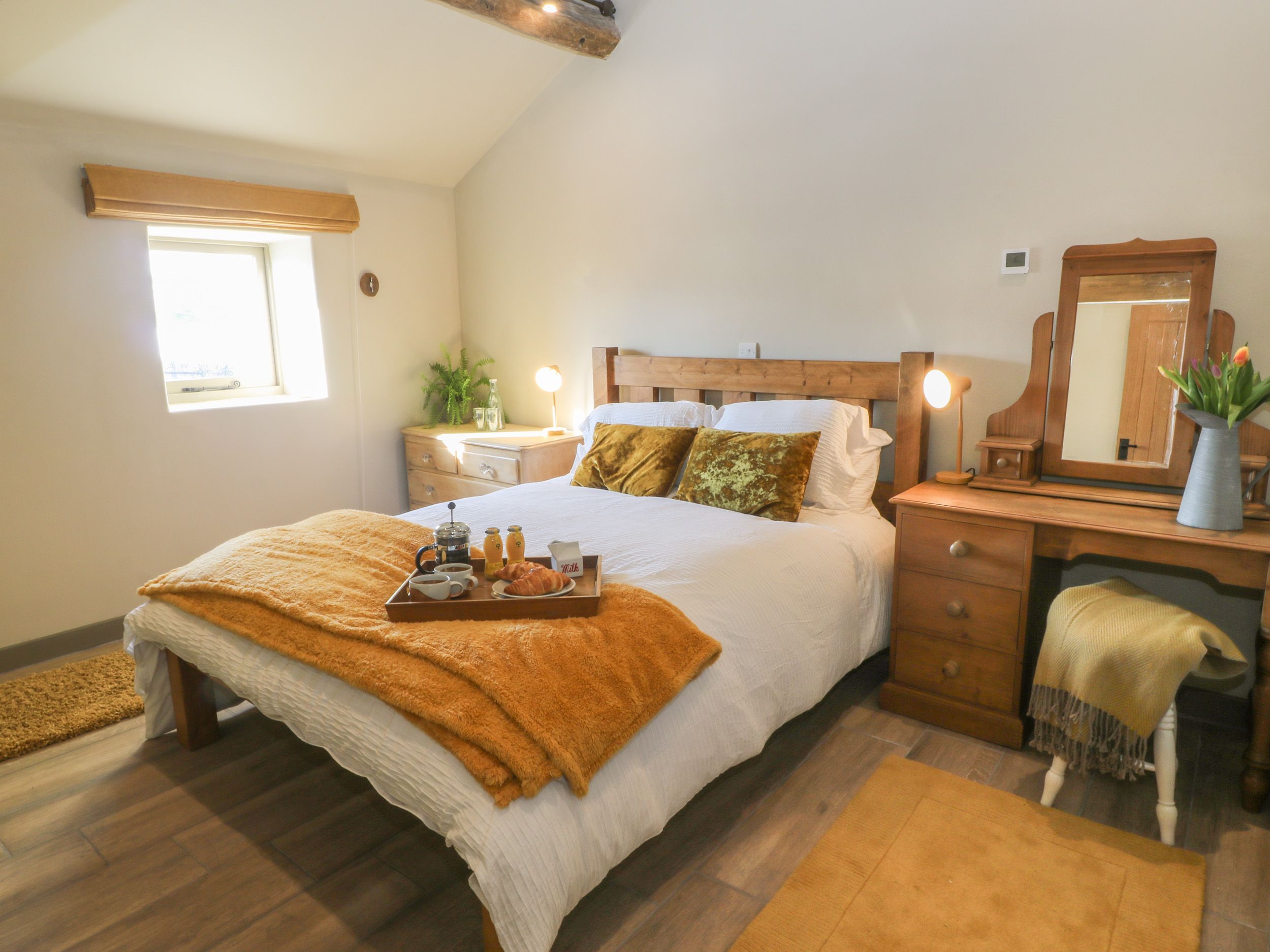 The Hayloft is a first-floor barn conversion resting in the village of Holme near Holmfirth on the fringes of the Peak District National Park. The property sleeps two in one king-size double bedroom, served by a shower room with walk-in shower, basin and WC. There is an open-plan living space with kitchen, dining and seating area with electric fire. Outside, there is a patio area with seating opposite the property, as well as off-road parking. The Hayloft is a romantic retreat for those wanting to explore the Peak District National Park. Note: There is no outside space.