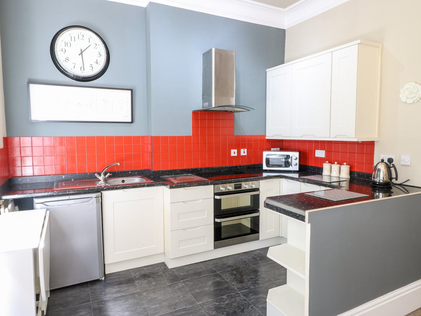 First-floor apartment. One king-size bedroom. Shower room with walk-in shower, basin and WC. Open-plan living space with kitchen, dining area and sitting area