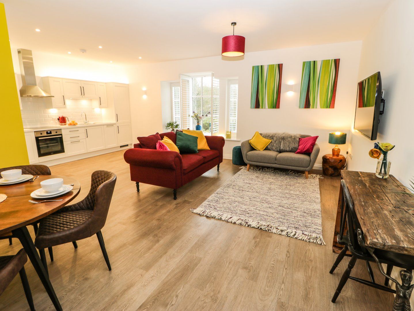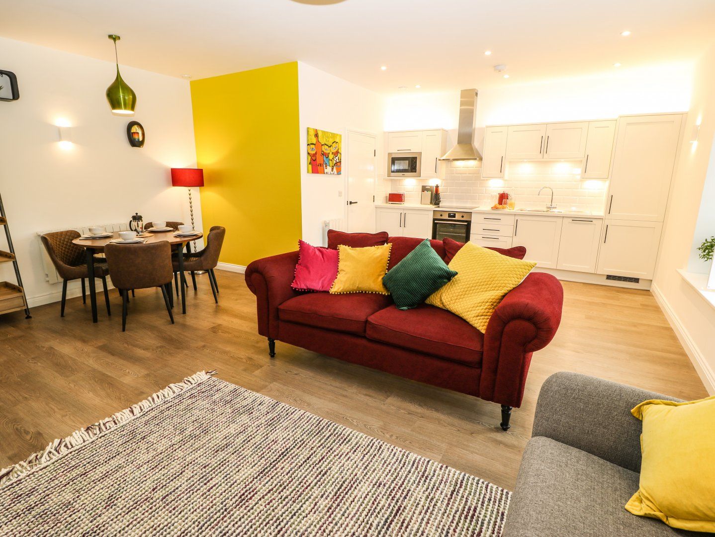 Accomodation Details This property was awarded a 2023 Sykes Star for scoring consistently perfect feedback from guests. Second-floor apartment. One king sized double bedroom with TV and en-suite walk-in shower, basin, heated towel rail and WC. Cloakroom with basin, heated towel rail and WC. Open-plan living space with kitchen, dining area and sitting area. Utility