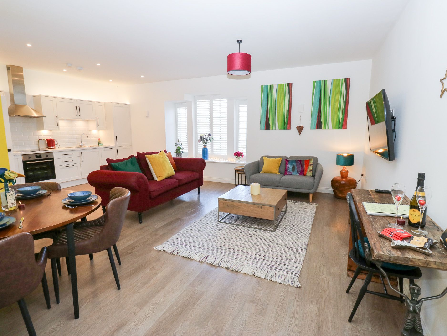 Accomodation Details This property was awarded a em 2024 Sykes Super Star /em for scoring consistently perfect feedback from guests. This property was awarded a 2023 Sykes Star for scoring consistently perfect feedback from guests. Second-floor apartment. One king sized double bedroom with TV and en-suite walk-in shower, basin, heated towel rail and WC. Cloakroom with basin, heated towel rail and WC. Open-plan living space with kitchen, dining area and sitting area. Utility