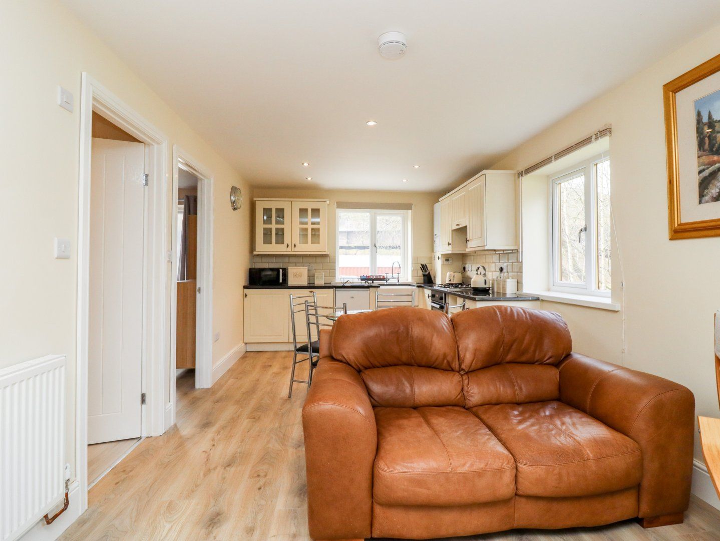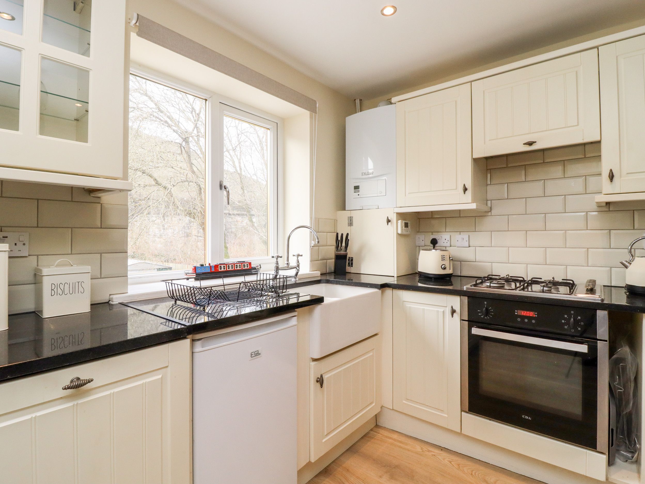 Amenities Central heating. Electric oven, gas hob, microwave, fridge/freezer, washing machine, dishwasher. TV, WiFi. Fuel and power inc. in rent. Bed linen and towels inc. in rent. Private parking. Side garden. One well-behaved pet is welcome. Sorry, no smoking. Shop 0.5 miles, pub 0.3 miles. Note: This property is attached to the owner's home. Note: The property overlooks a canal and trainline. Please Note: This property only accepts ONE dog.
