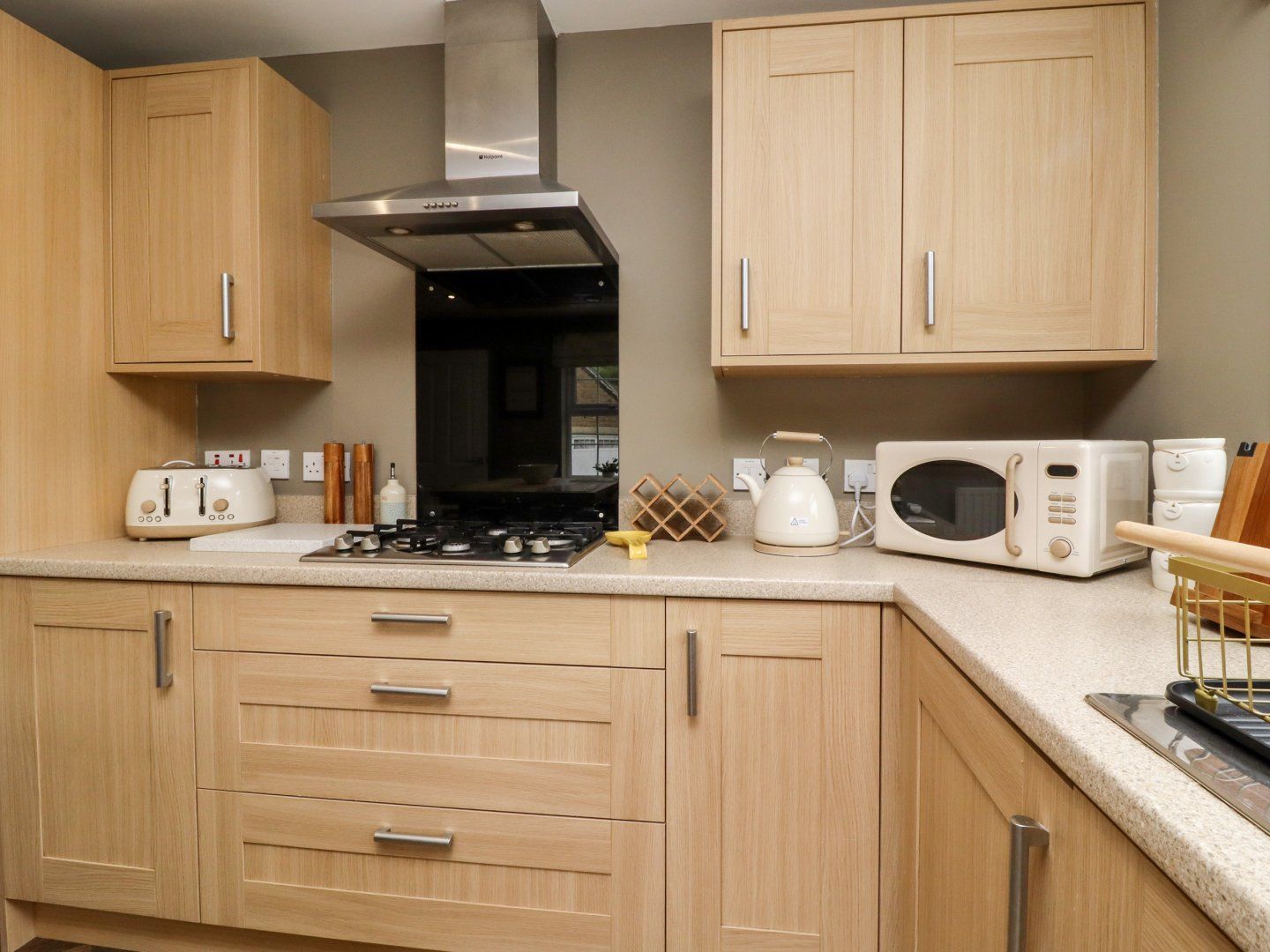 Holiday home The living areas in this three-storey home consist of a kitchen/diner with an electric double oven, gas hob, microwave, fridge/freezer, washing machine and dishwasher, a dining room, and a first-floor sitting room with Smart TV and Juliet balcony. The bedrooms consist of a second-floor king-size with en-suite, a second-floor twin, and a twin, serviced by a second-floor bathroom and a cloakroom. Outside there is a front lawned garden, an enclosed rear garden with lawn and furniture, and off-road parking. Two well-behaved dogs are welcome (downstairs only) and this is a smoke-free home. WiFi, fuel, power, bed linen and towels are all included in the price, along with a highchair and travel cot. You'll find a shop and a pub in 0.2 miles. For a contemporary base in West Yorkshire, book The Milne. Note: The front garden is not enclosed; please be aware. Note: There are retractable stairgates to help manage pets (not children). Strictly no singles, hen or stag groups.